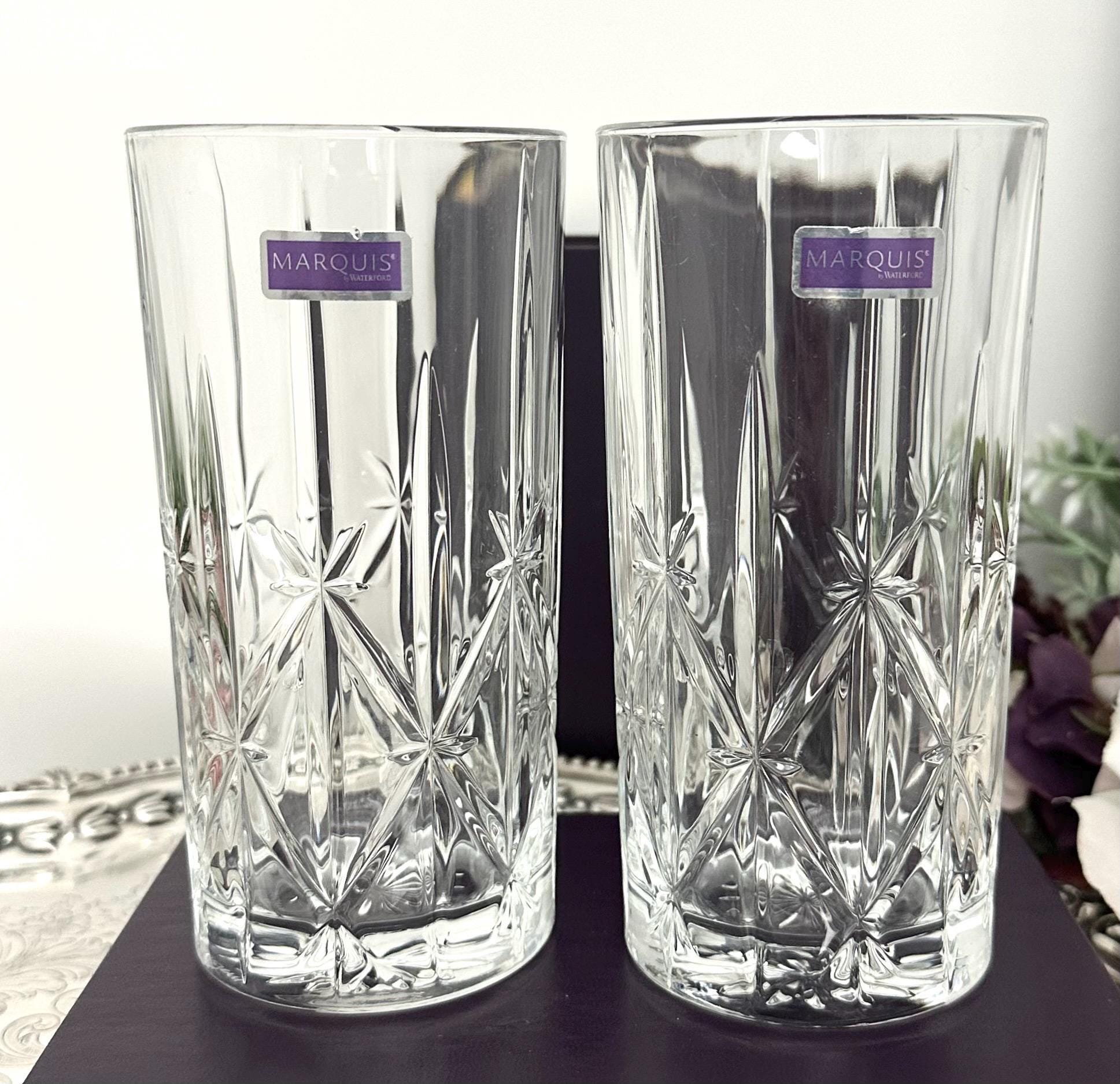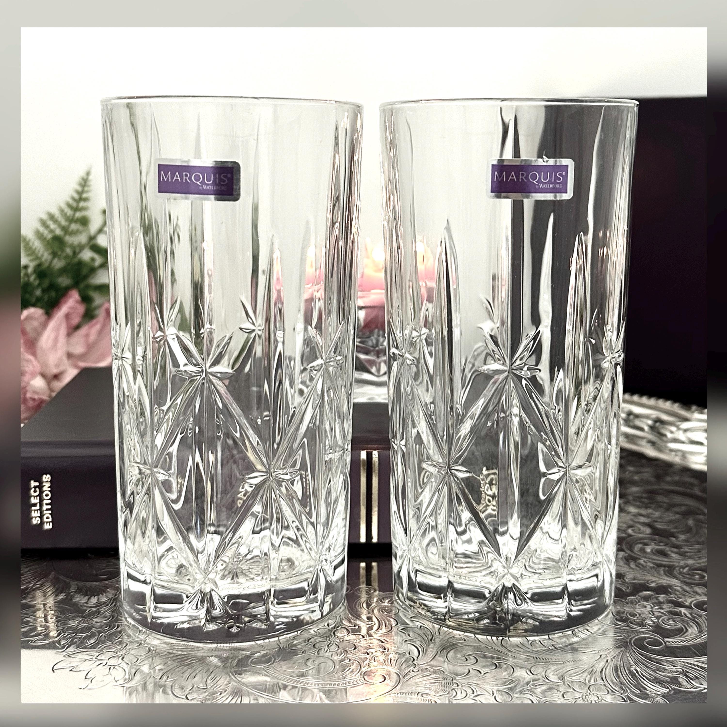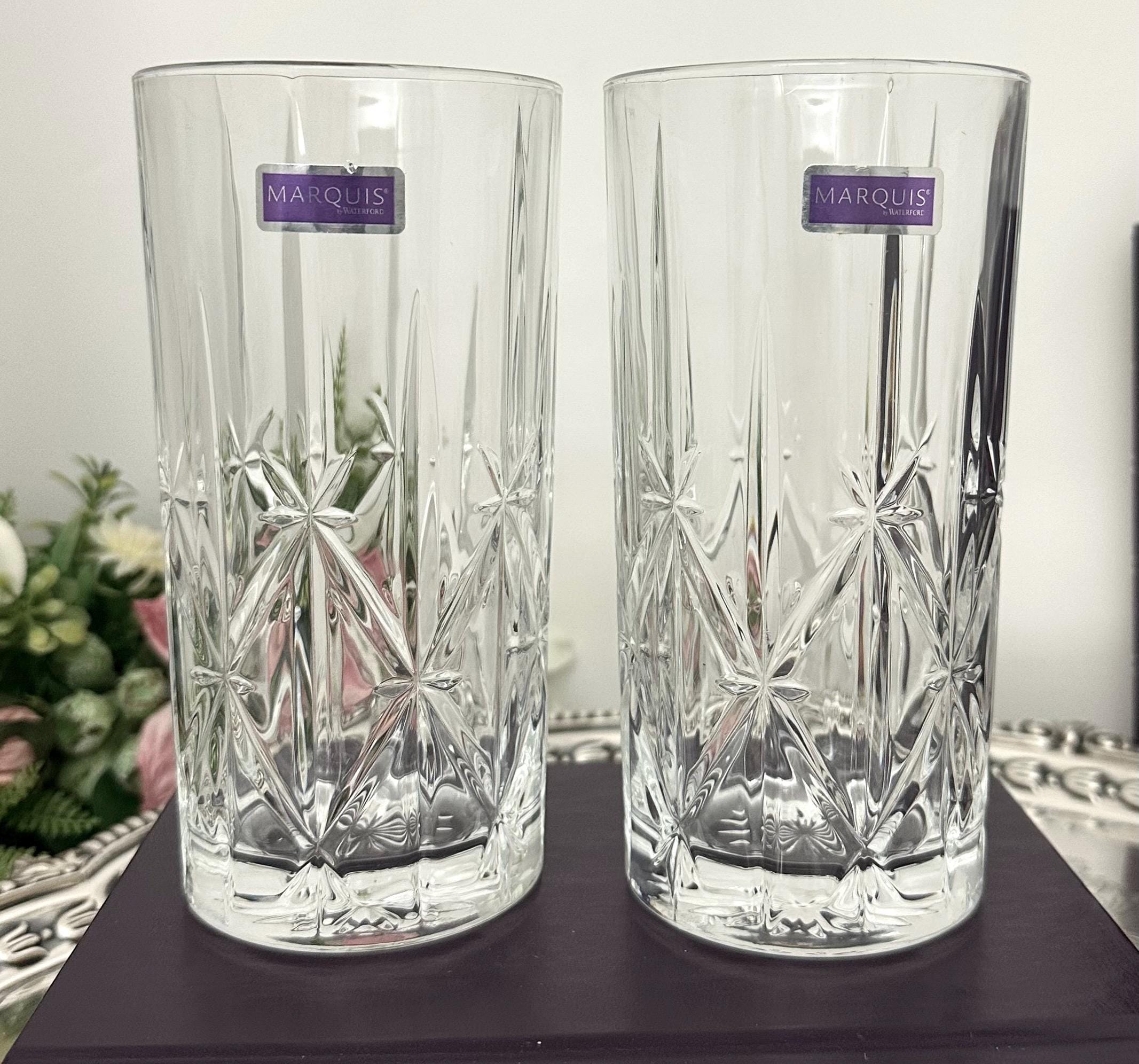 This is for a pair of Waterford Sparkle Highball Glasses. These lovely glasses measure: 6 1/4 inches tall with a diameter of 3 1/8 inches. These are blown glass and were crafted in either of Italy or Portugal. They are very light reflective glasses and a very nice weight to hold.