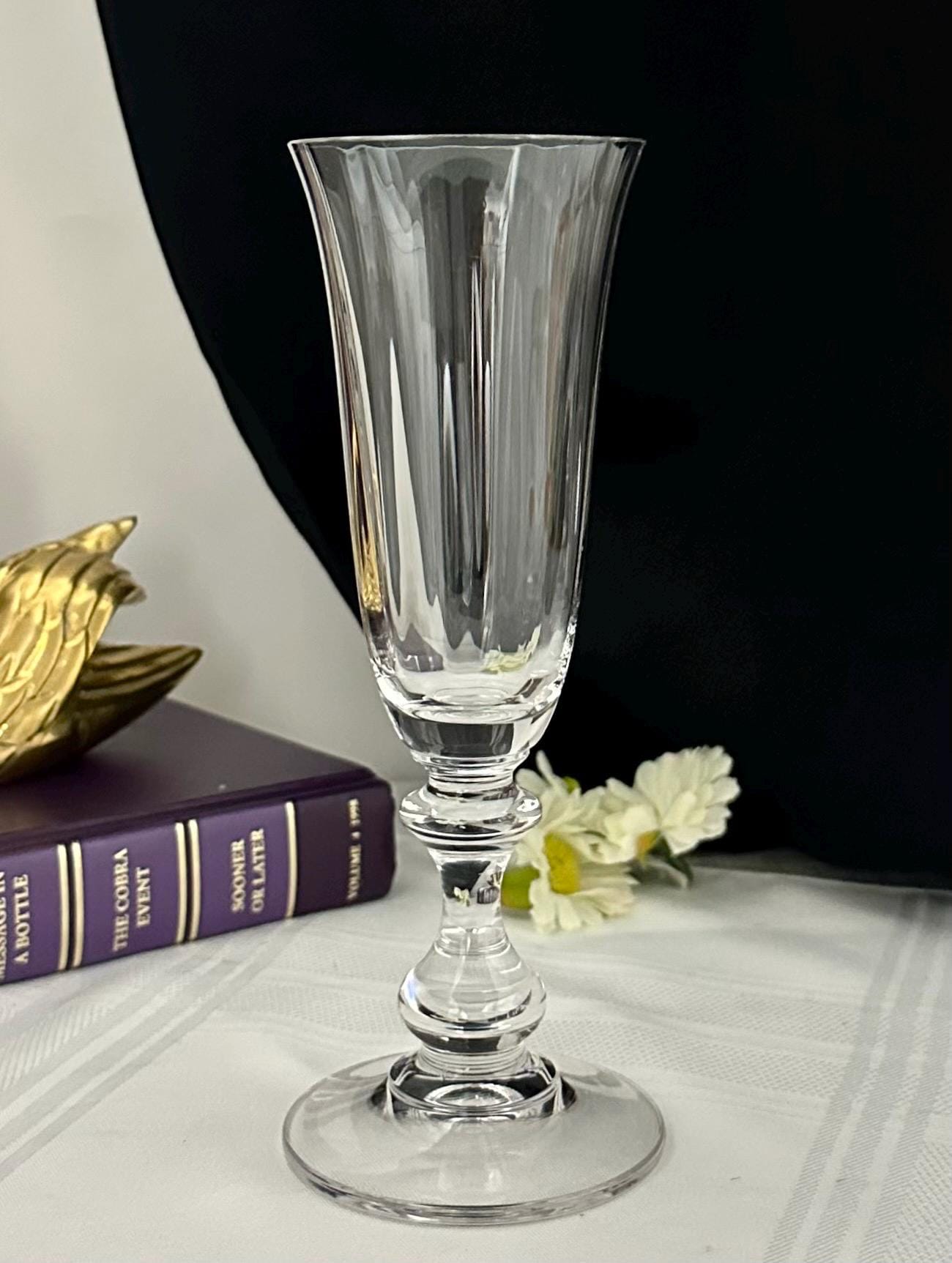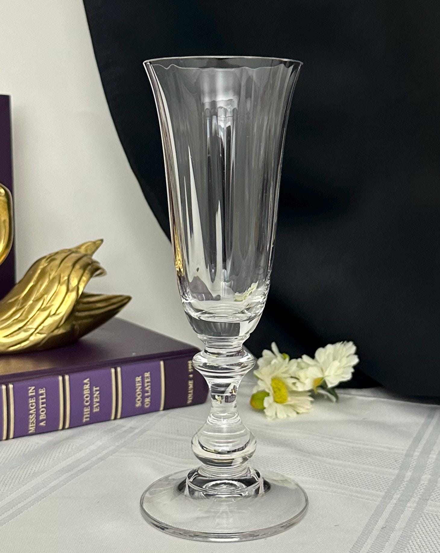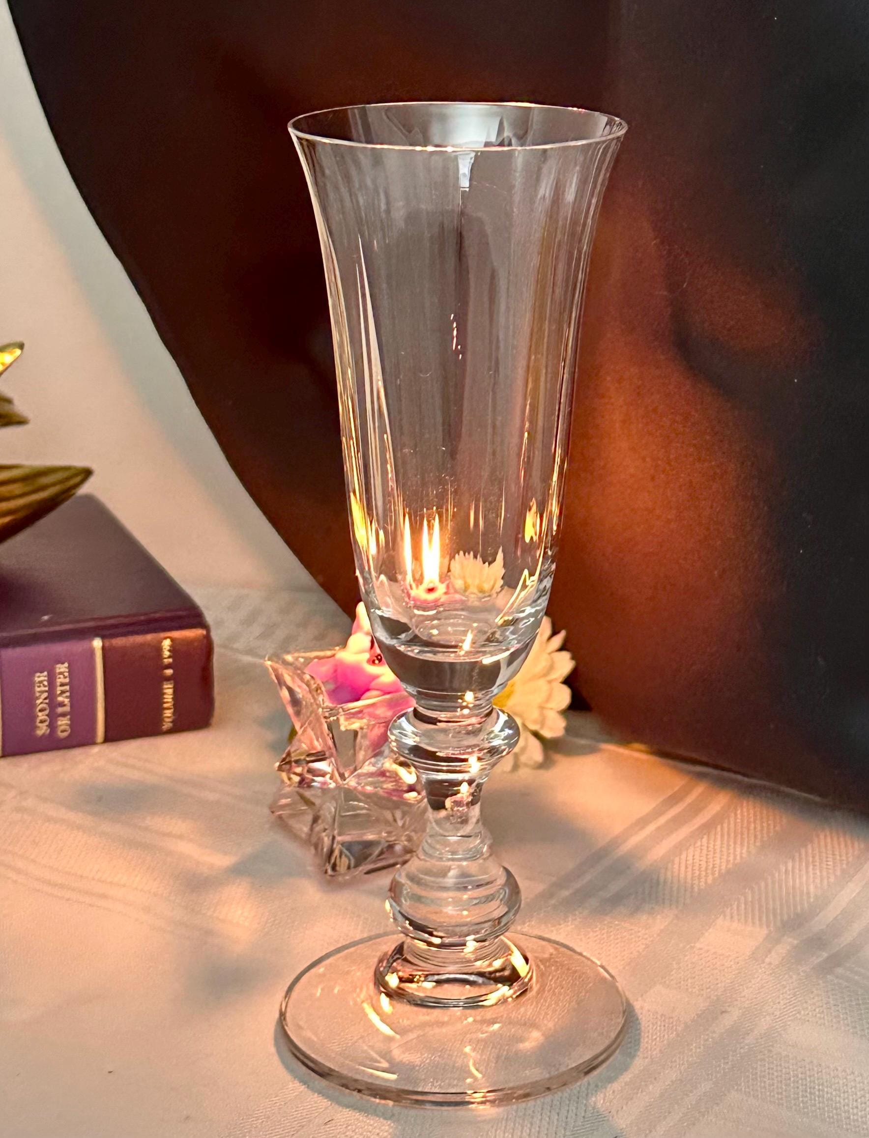 This if for 1 Vintage Champagne Flute in the French Countryside pattern. The bowl is Clear with a decorated knobed stem and is blown glass. This was produced from 1990 - 2016. The champagne glass measures: 7 5/8 inches tall x 2 5/8 inches in diameter. This is the perfect glass to toast for any special occasion such as a Wedding to anniversary. This is in wonderful condition and would make for perfect replacement glasses or to start a new set.