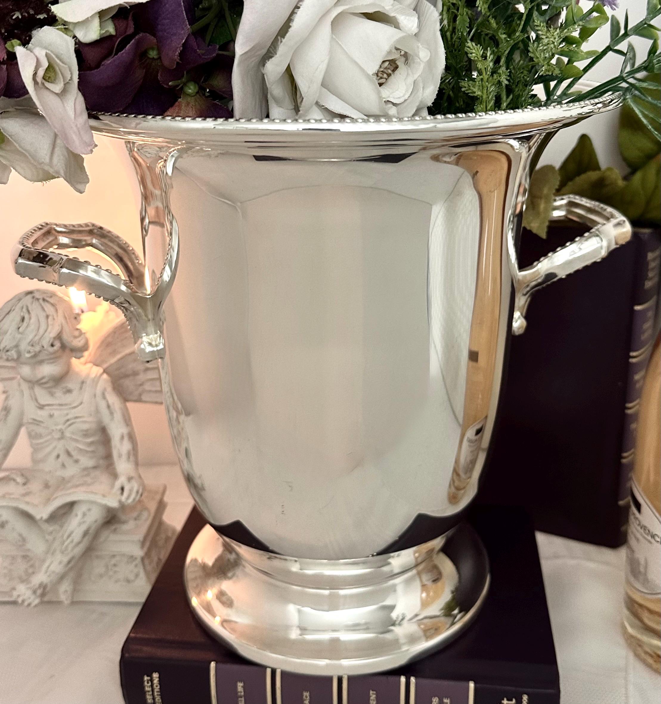 This is for a wonderful vintage silver plated trophy urn / vase / that doubles as a champagne bucket, adding a touch of elegance to any occasion.