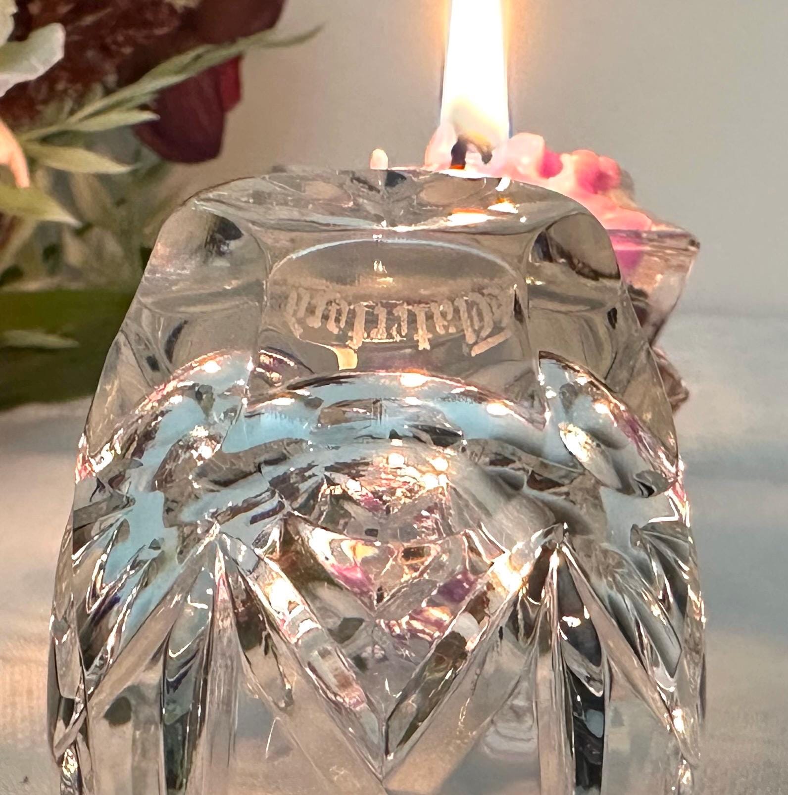 Made of clear very light reflective crystal, this has a diameter of 1 5/8 inches and stands at 2.25 inches tall. The Waterford brand ensures high quality, and hand wash only care instructions make them easy to maintain.