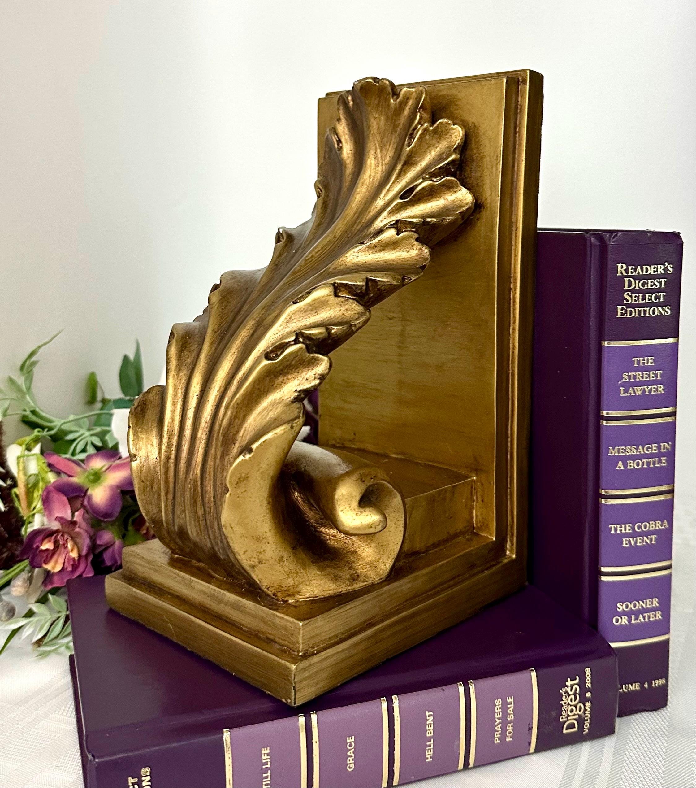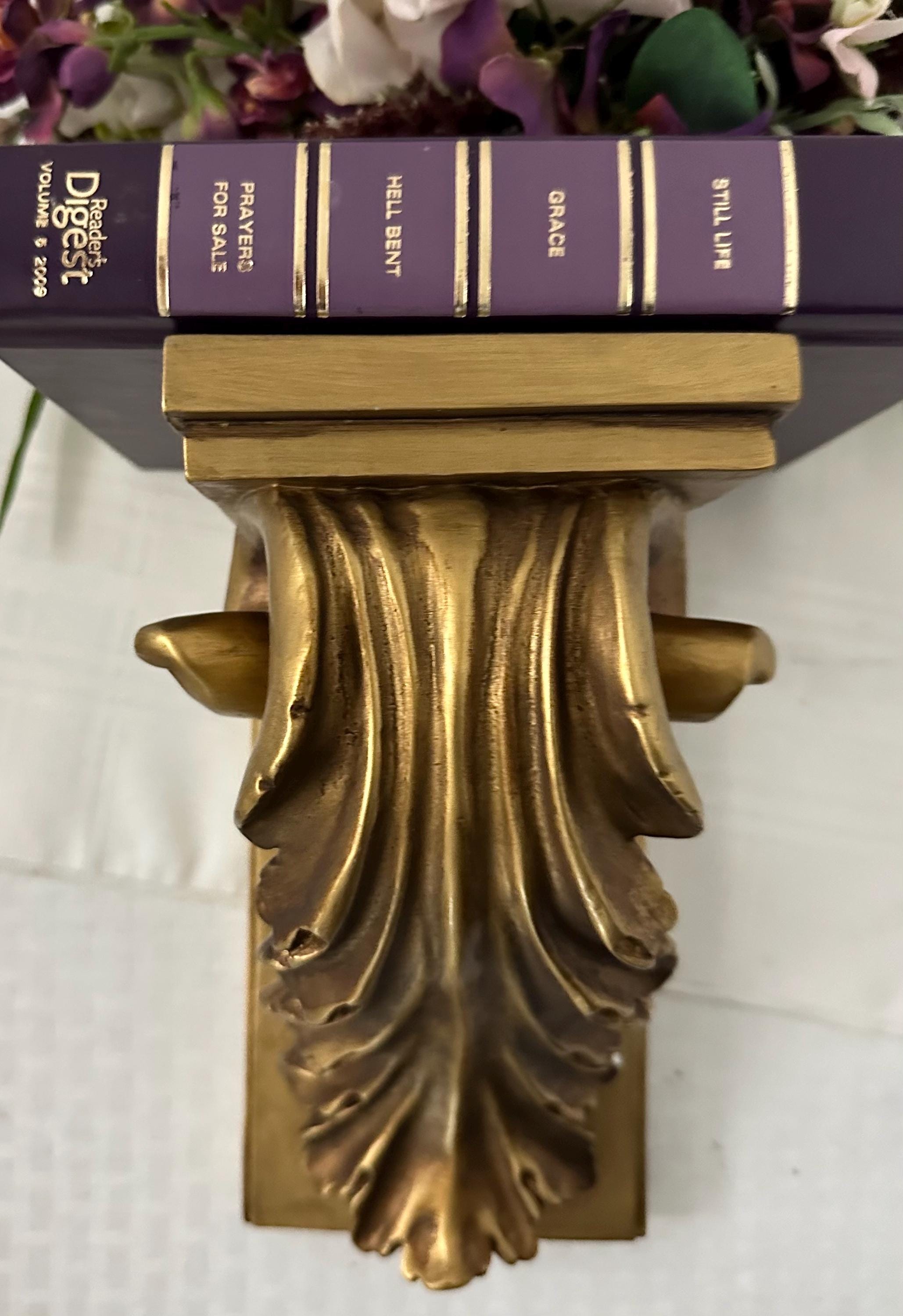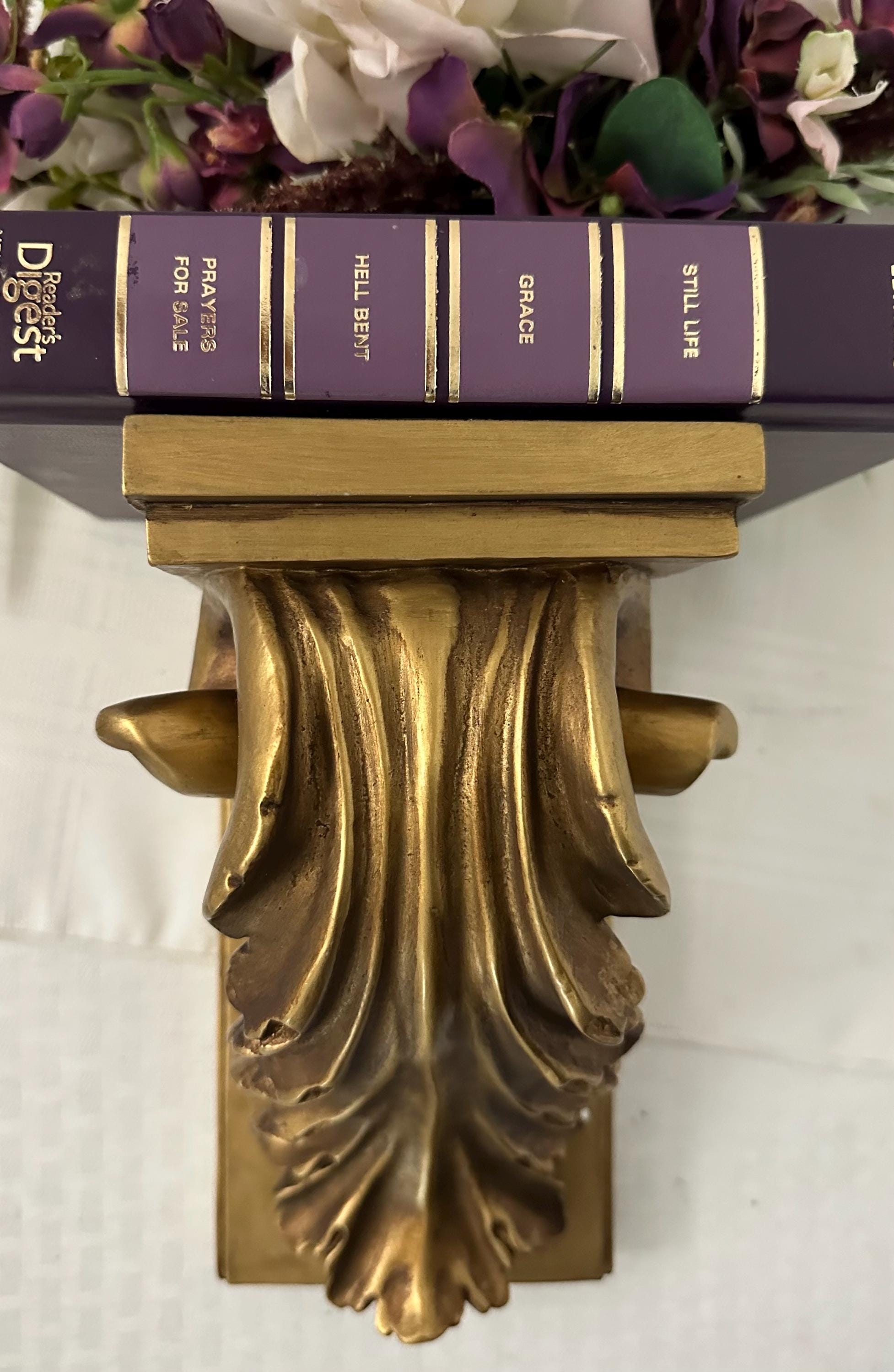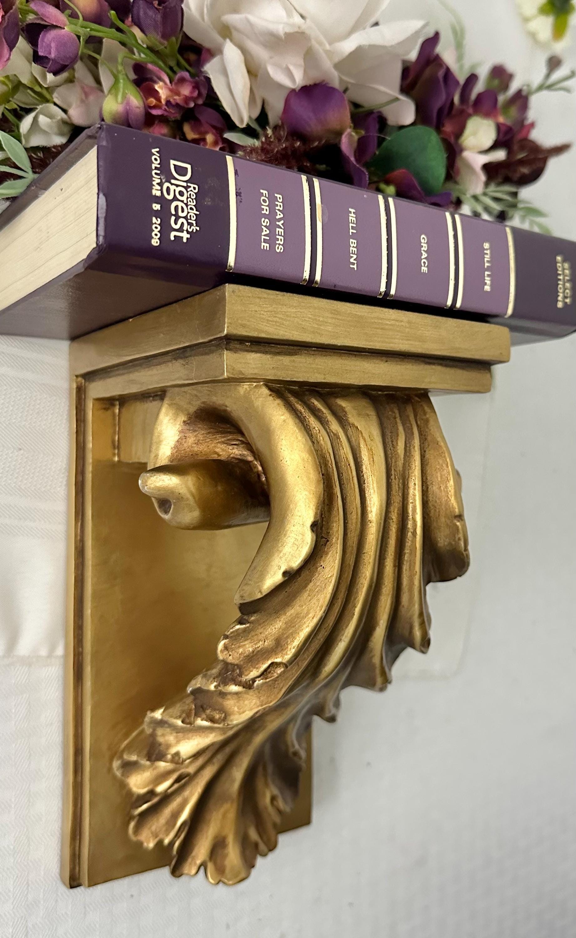This is for 1 beautiful vintage gold wall shelf. This is in a swirled / scrolled acanthus leaf in a style that would go with many styles such as : Victorian, English, Neoclassical, French or Hollywood Regency. This is a beautiful rich deep gold.
