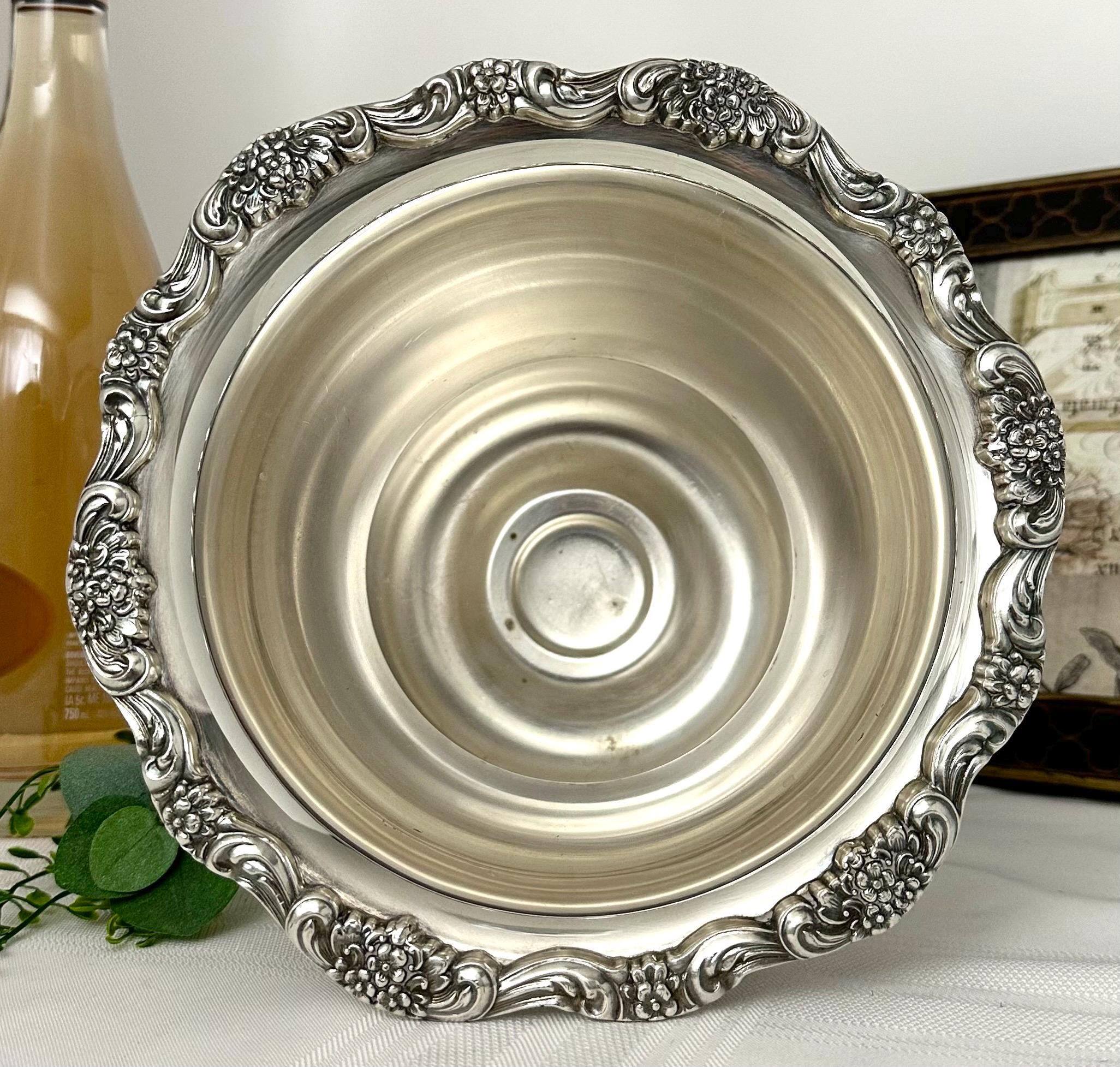 The base is decorated with flowers along with the fancy floral rim. Please note how clean the inside of this piece is which is not always the case in these vintage champagne buckets, drying after use will keep it looking wonderful for years to come. This is in very condition and surely will be enjoyed for years to come!