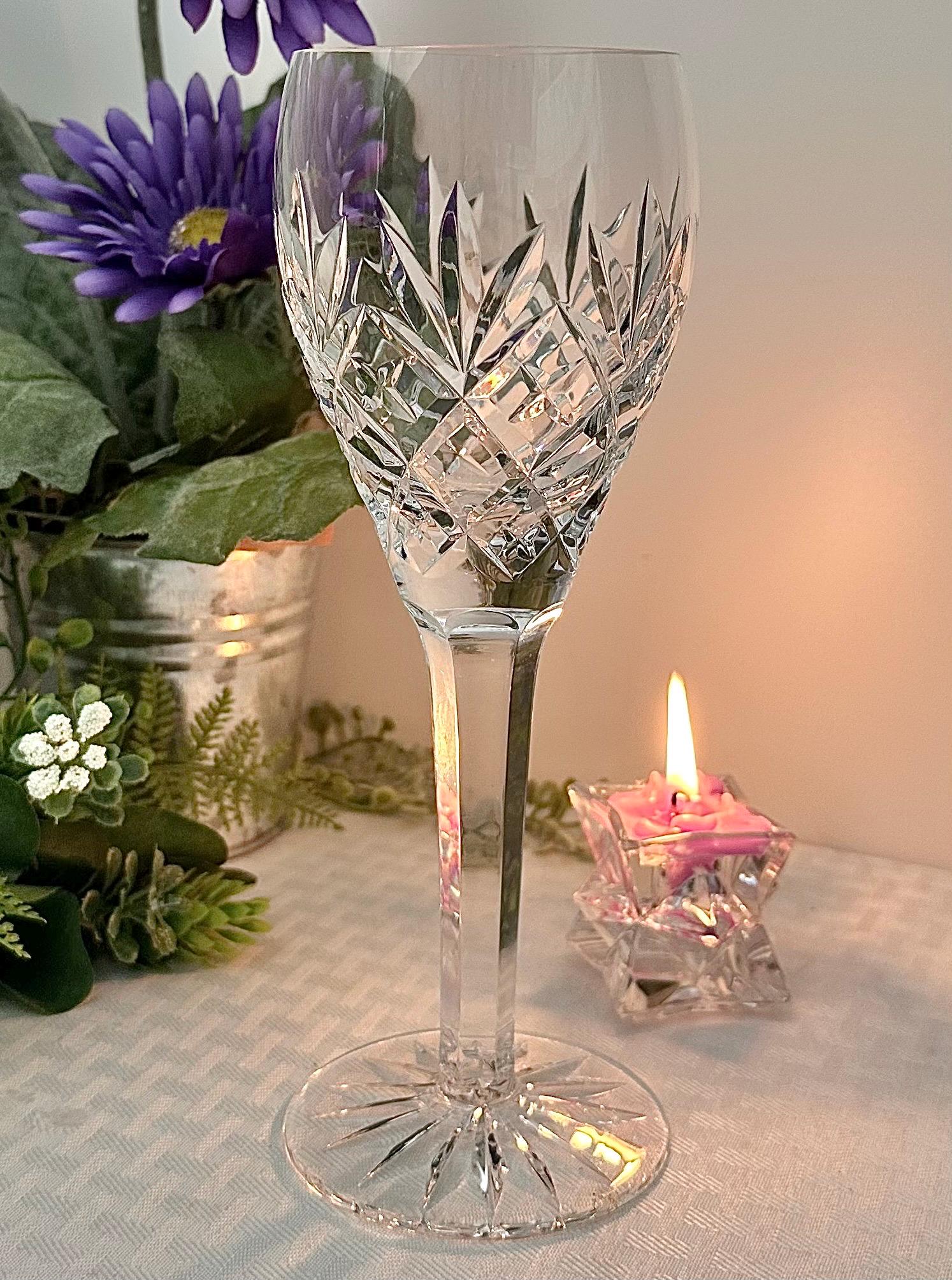 This is for 1 Vintage Ceska Tradition Water Glass. This beautiful water goblet features a classic round shape with a diameter of 3 inches and a height of 9 inches. The multi sided stemmed design adds an elegant touch to this traditional crystal glassware.