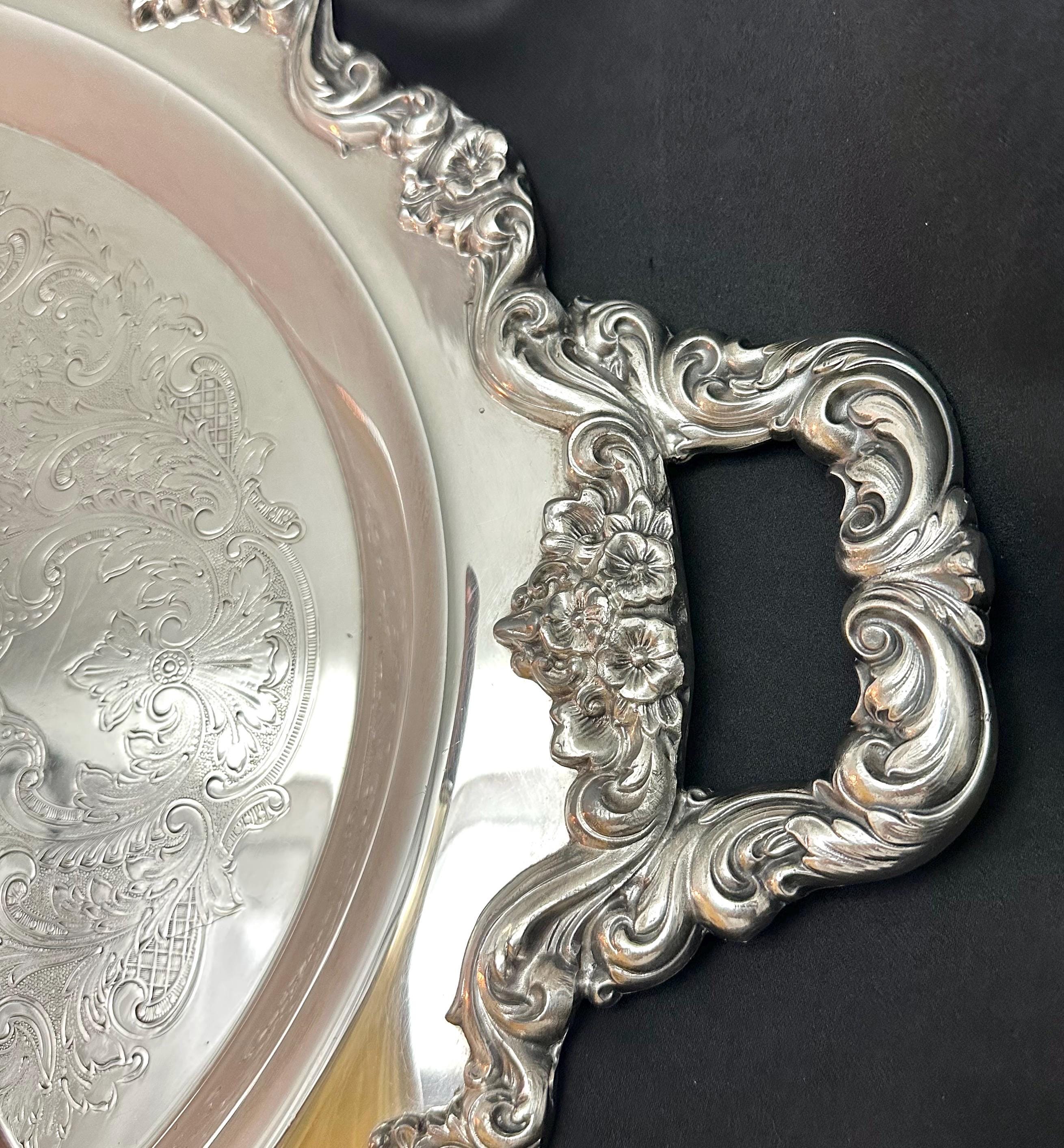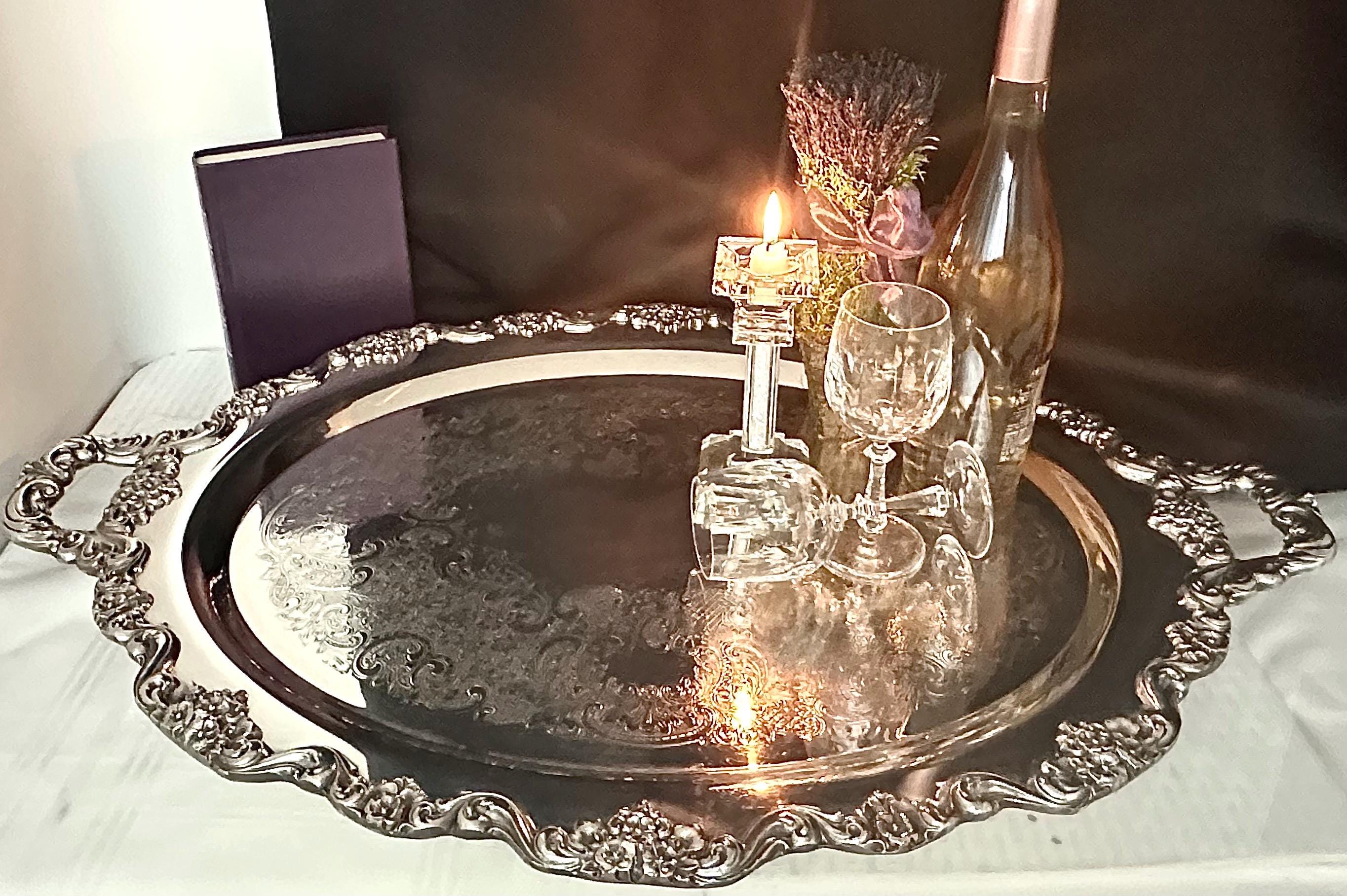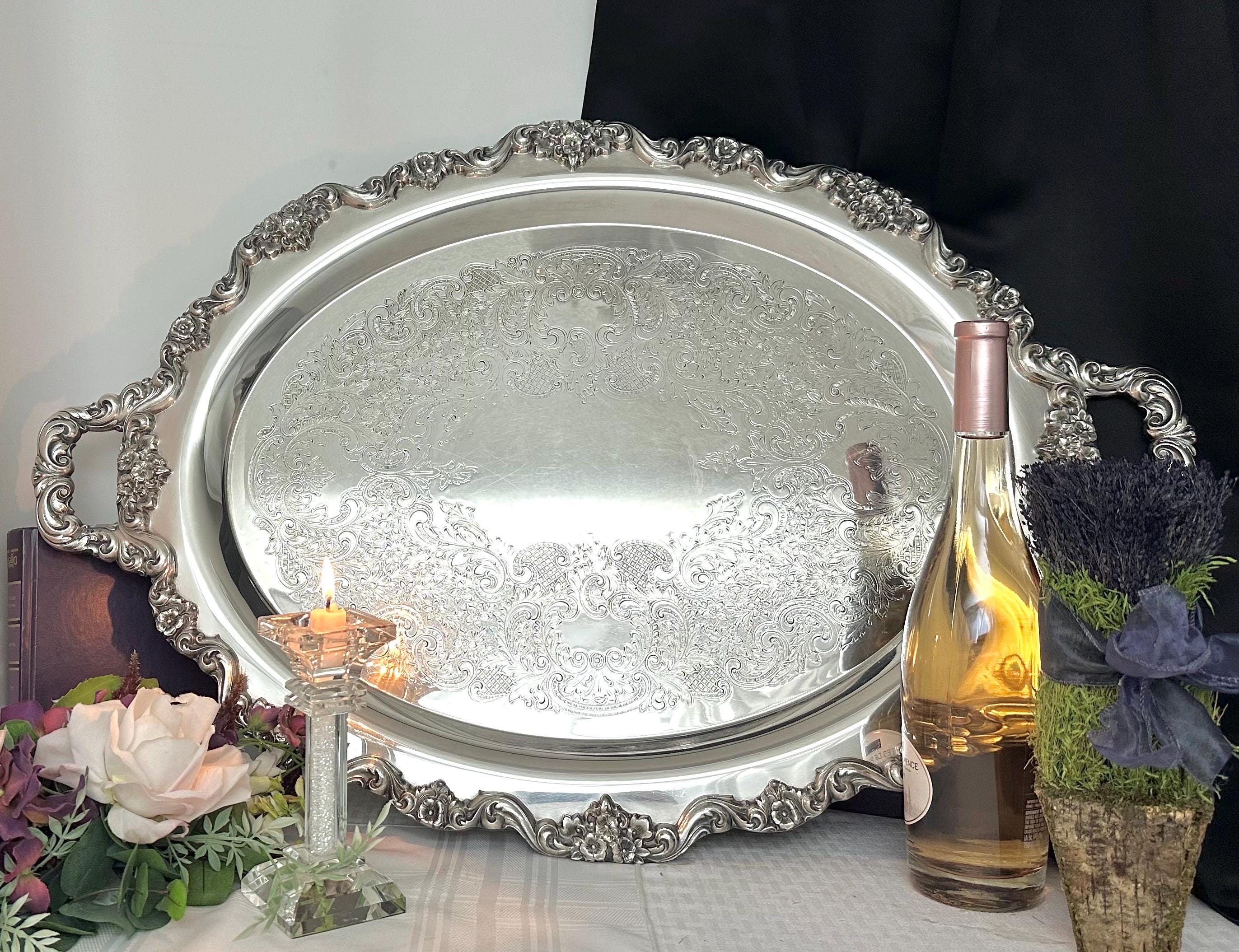 Whether used to serve lavish spreads or simply as a decorative centerpiece, the tray's intricate details and classic style will impress your guests and add a refined touch to your home.