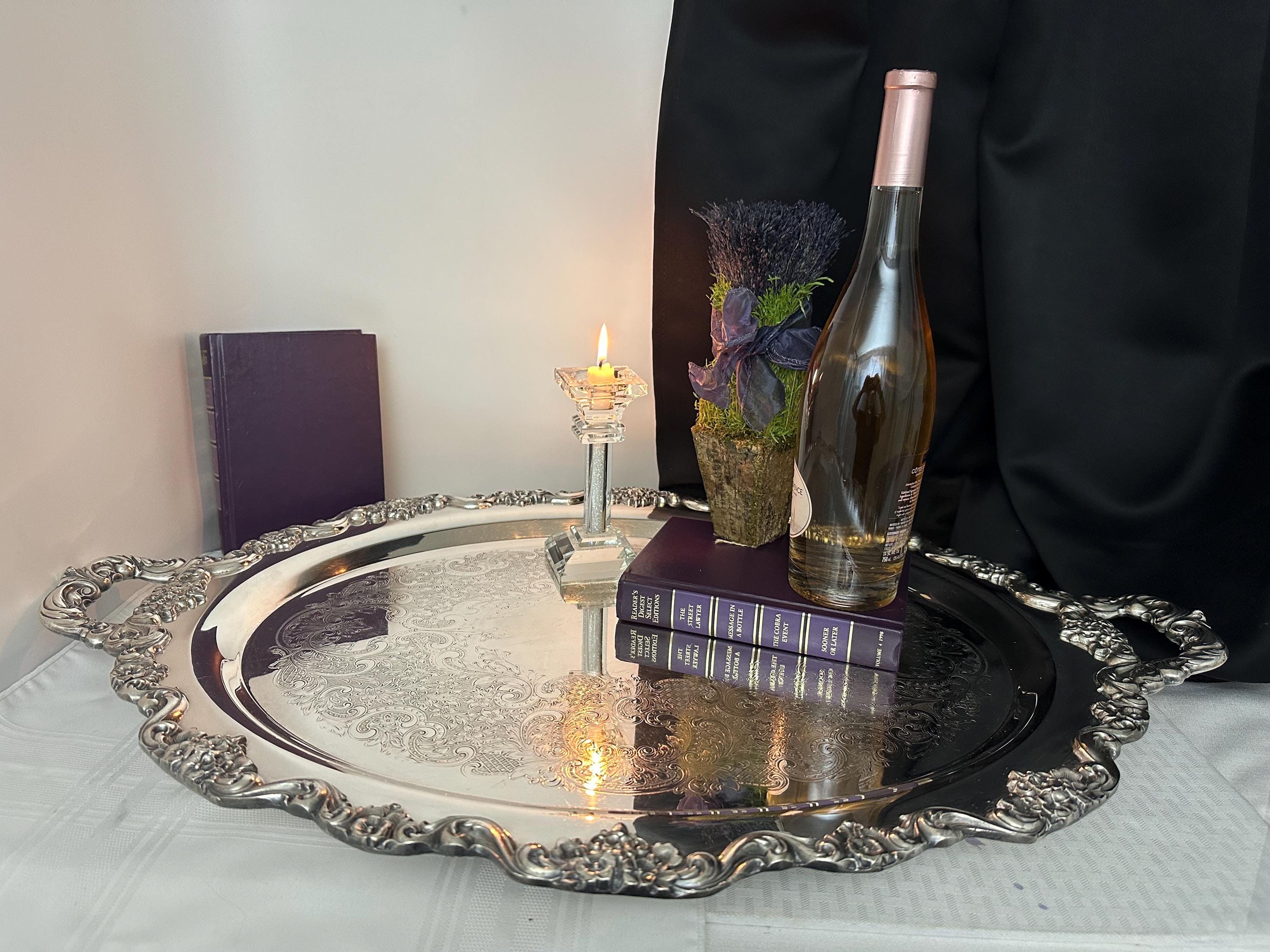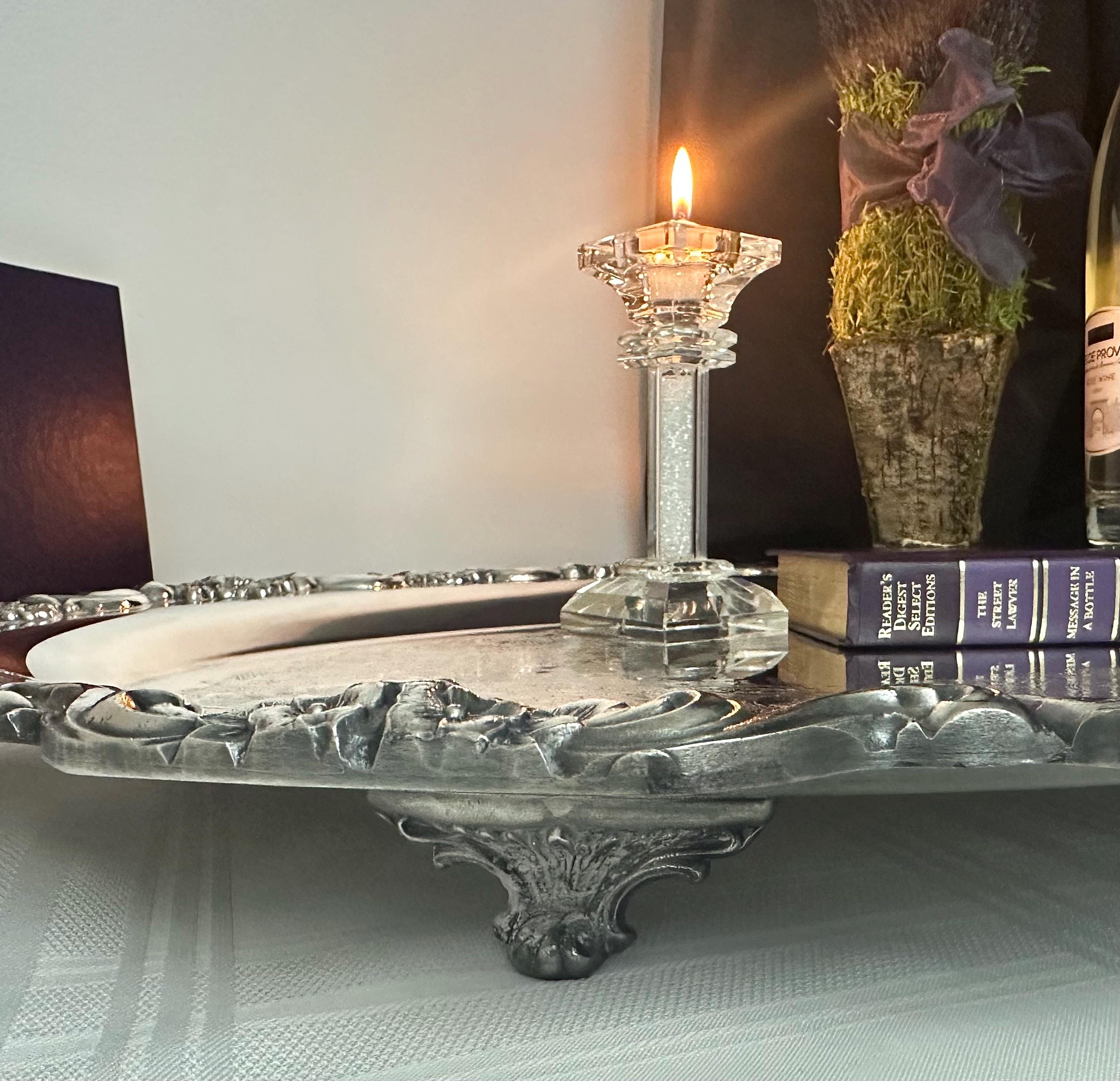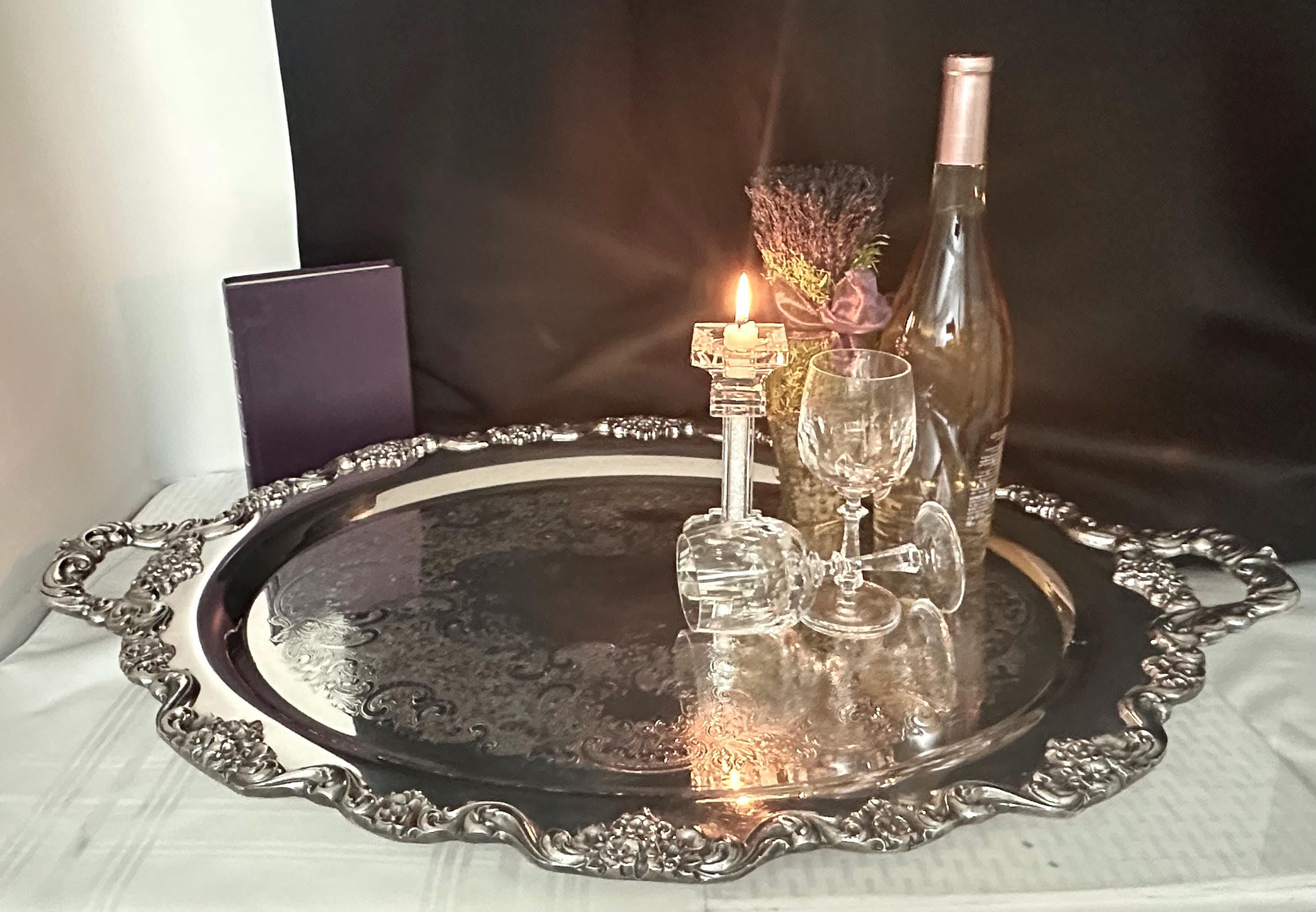 Whether used to serve lavish spreads or simply as a decorative centerpiece, the tray's intricate details and classic style will impress your guests and add a refined touch to your home.