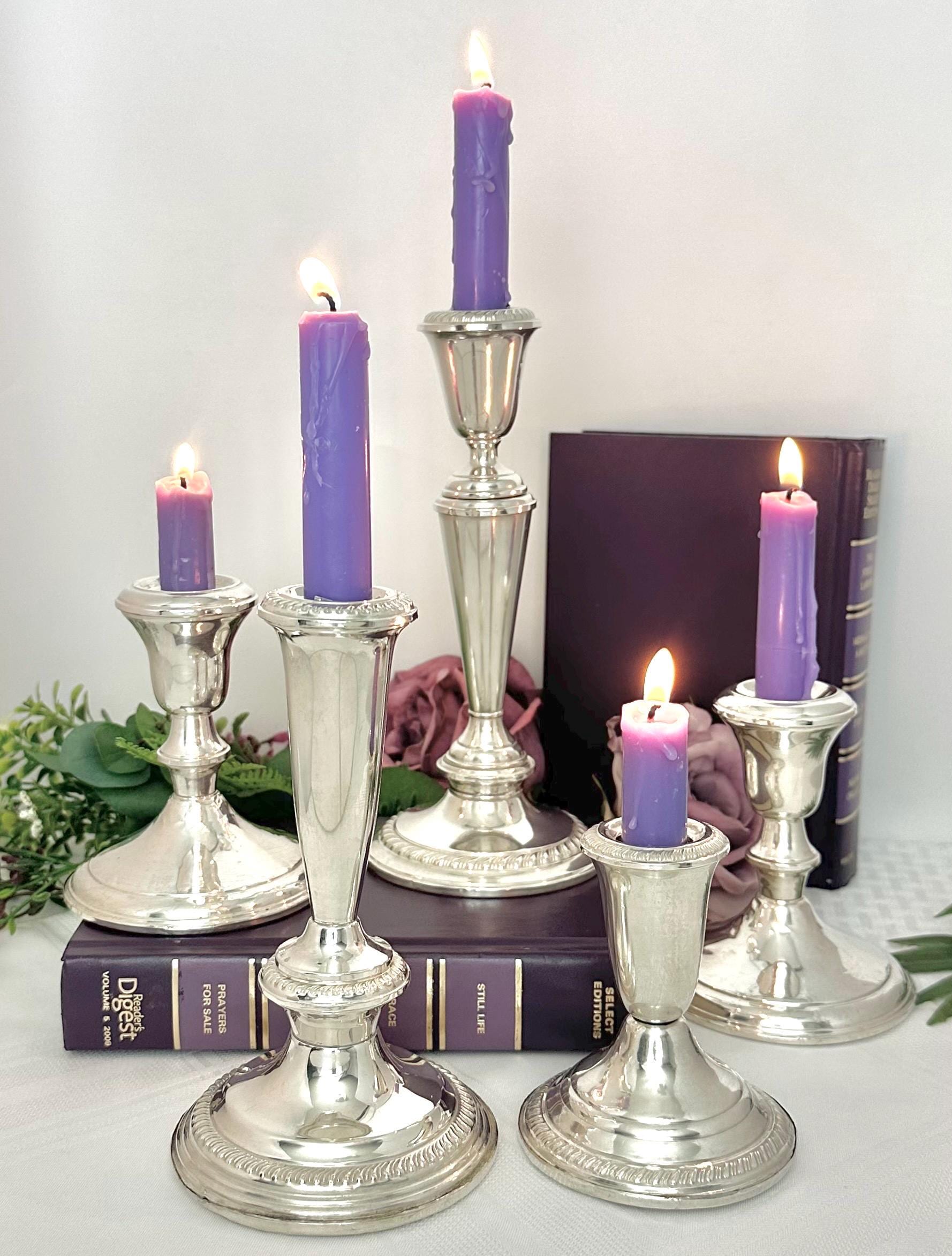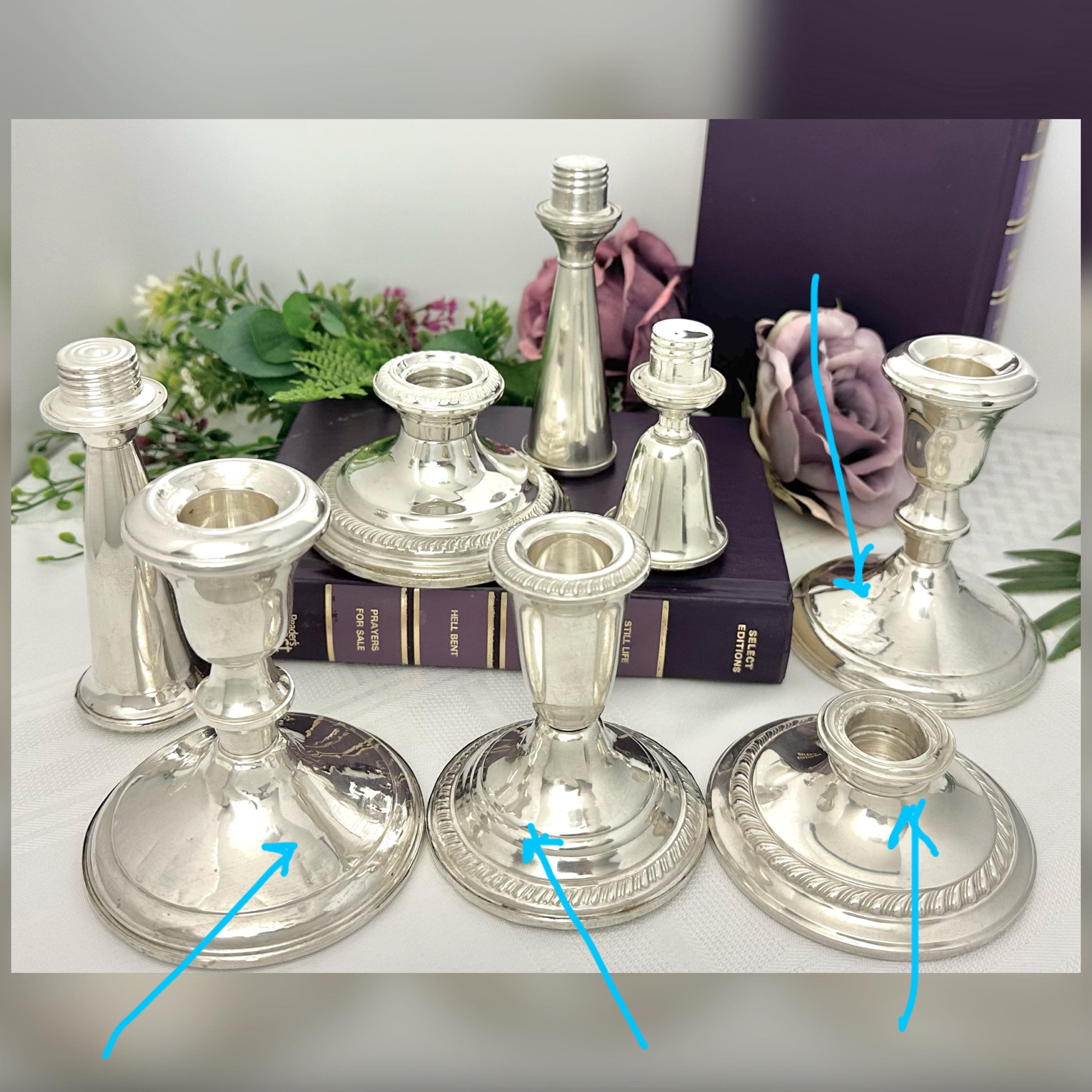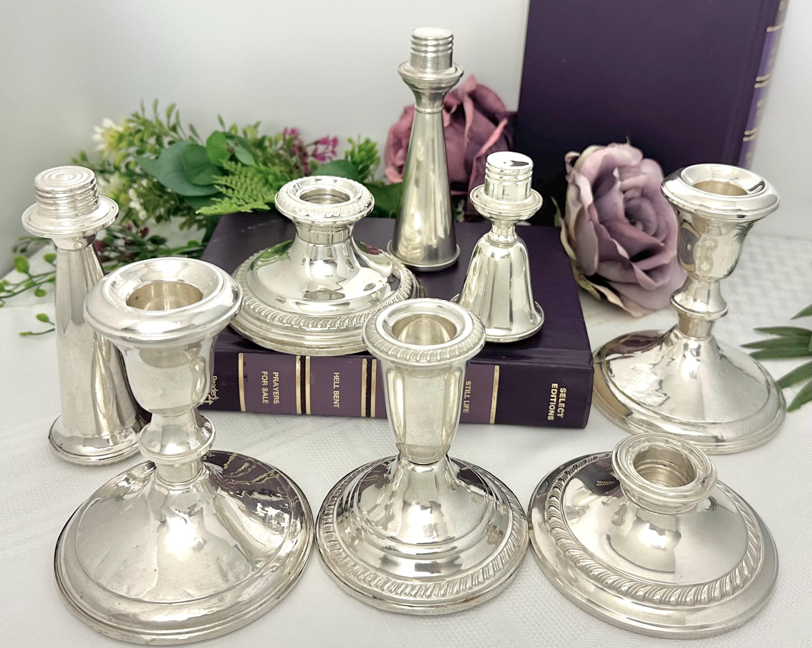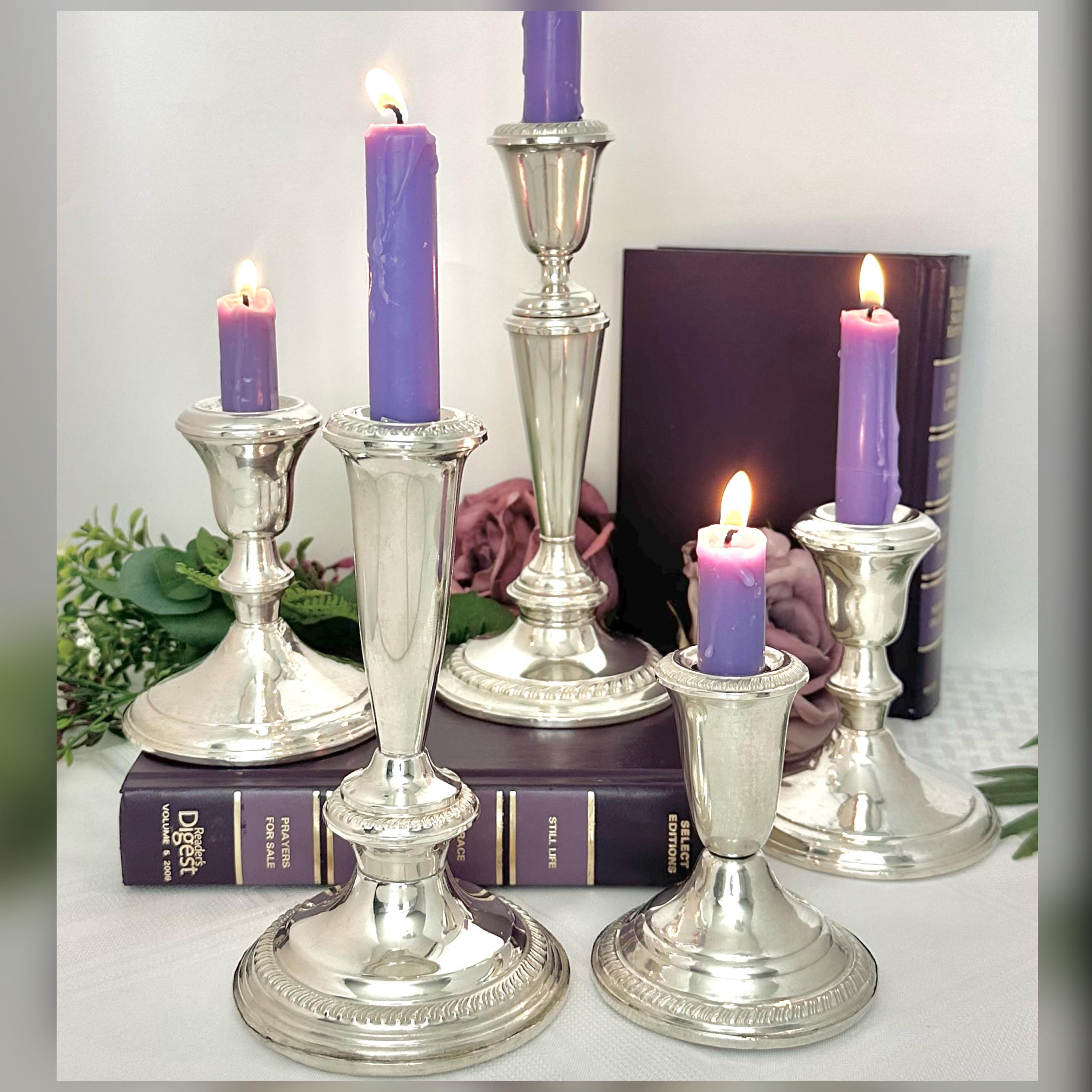 This is for a set of 5 sterling silver candle holders made by various makers, offering a variety of sizes to accommodate different needs. Each candle holder is crafted from high-quality .925 sterling silver, giving them a timeless and elegant look that can enhance any space.
