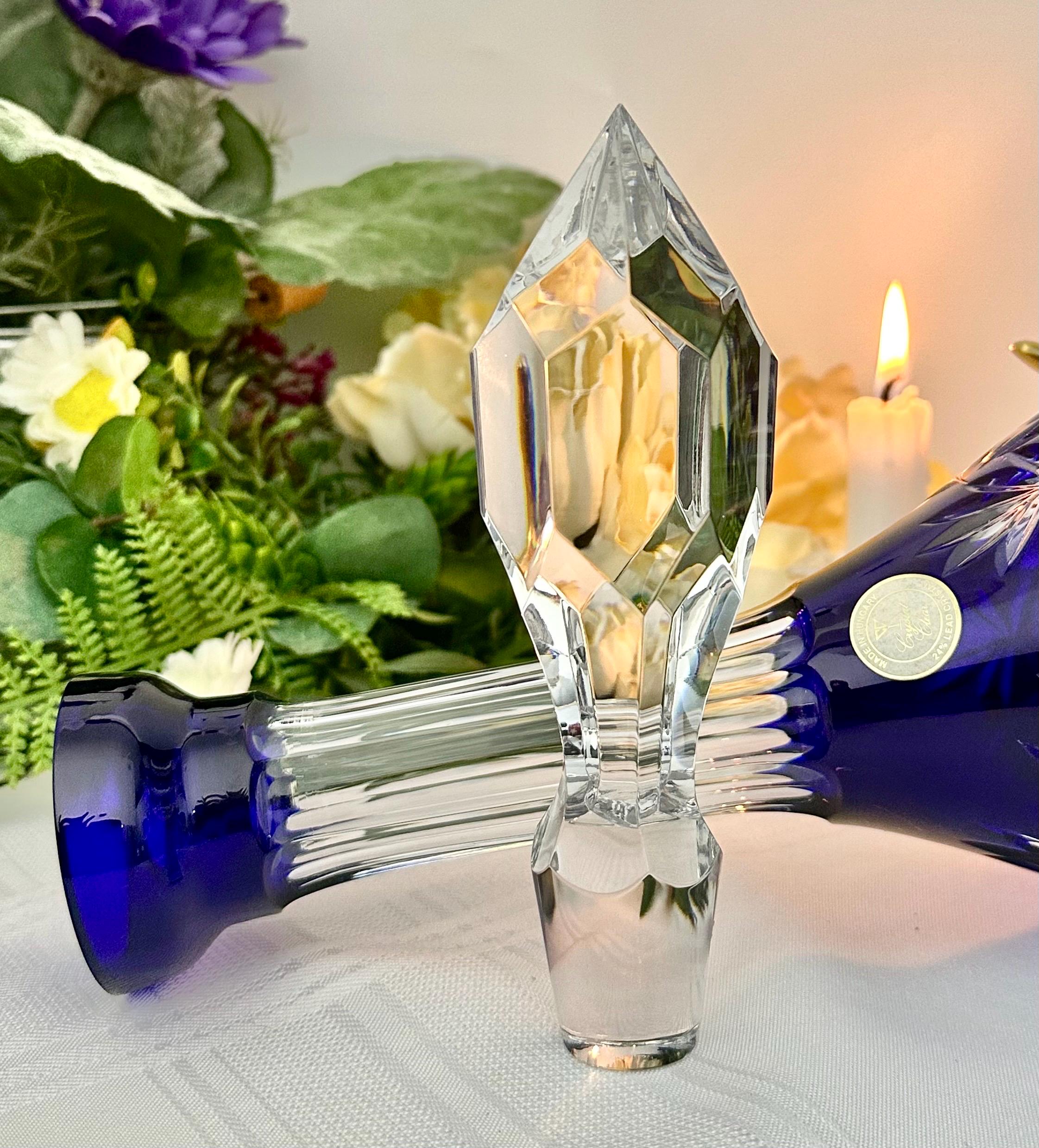 Crafted by the brand Cristal Clear Industries in Hungary, this original decanter set includes a lid/stopper and is sure to be a stunning addition to any collection of barware or kitchen decor.