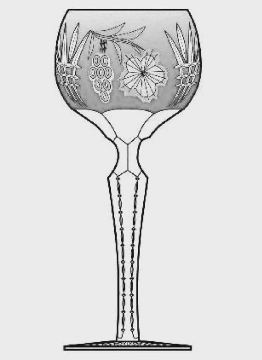 The wine goblet is perfect for serving a cold beverage and would make a stylish choice for any occasion. The grape, leaf and hatch pattern add to the charm of the collectible piece, making this a must-have for wine enthusiasts.