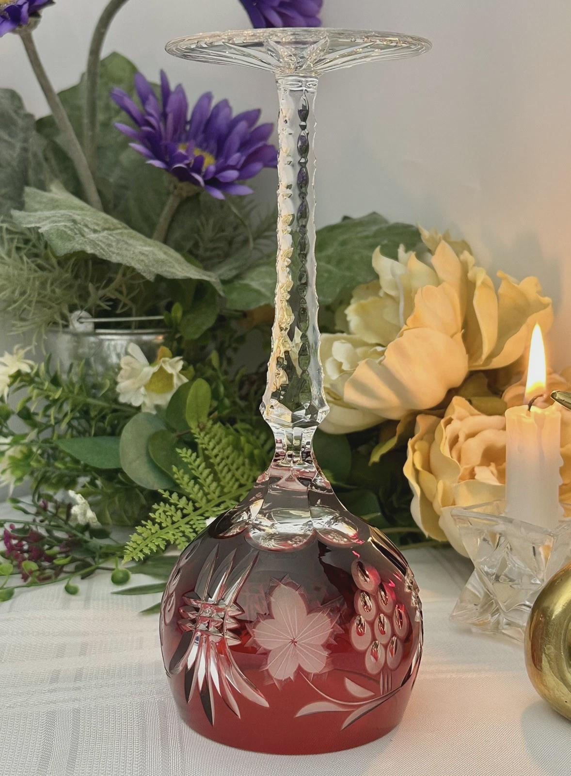 This is in wonderful condition and makes for a truly collectible glass to enjoy for years to come. The Vintage Red and Clear Wine Glass has no chips, cracks or water stains.