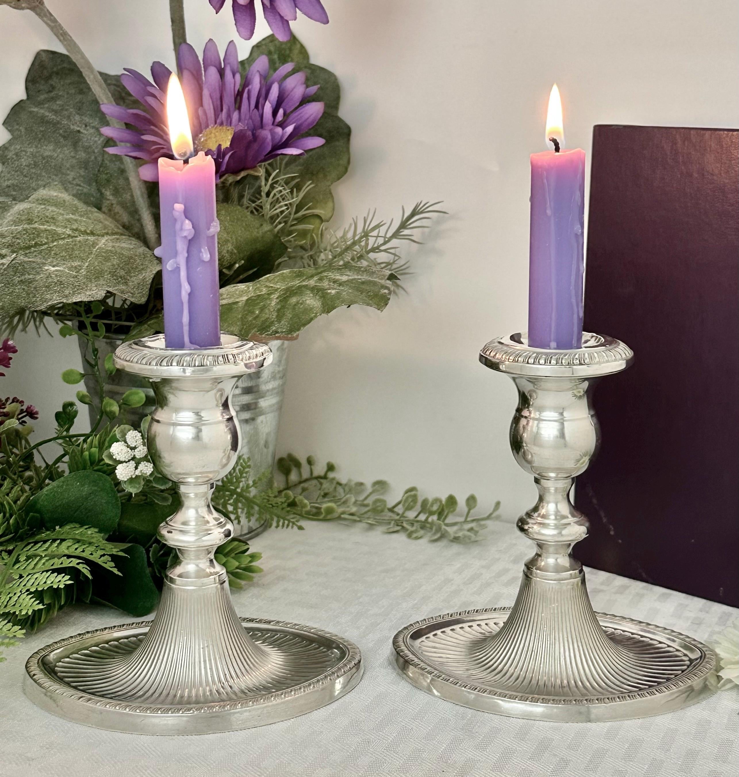 These will add a touch of sophistication to your decor with these exquisite sterling silver candle holders. These are in nice condition with some noted dents on the top of the candle cup. These are marked with makers name, weighted and