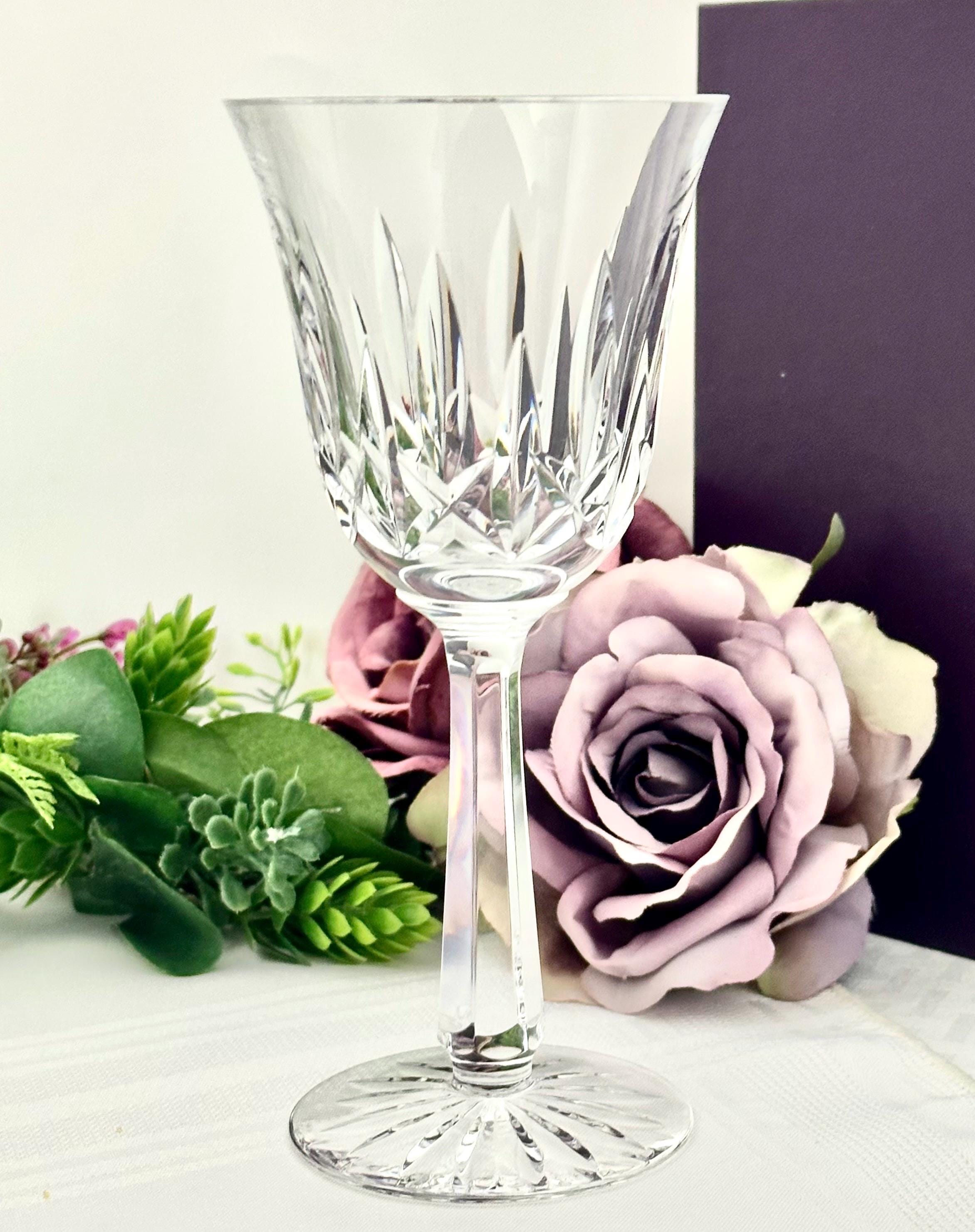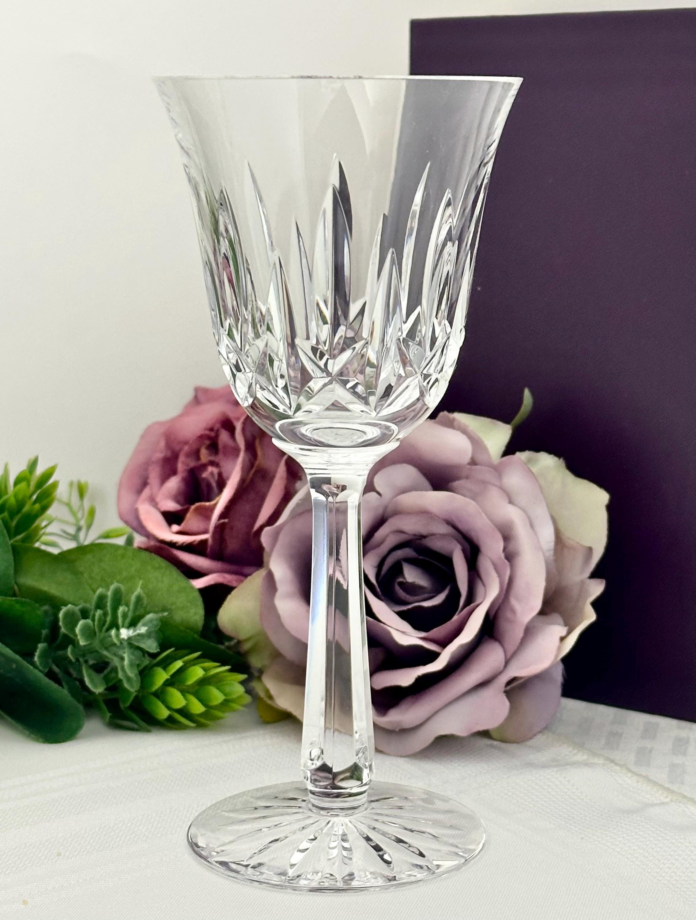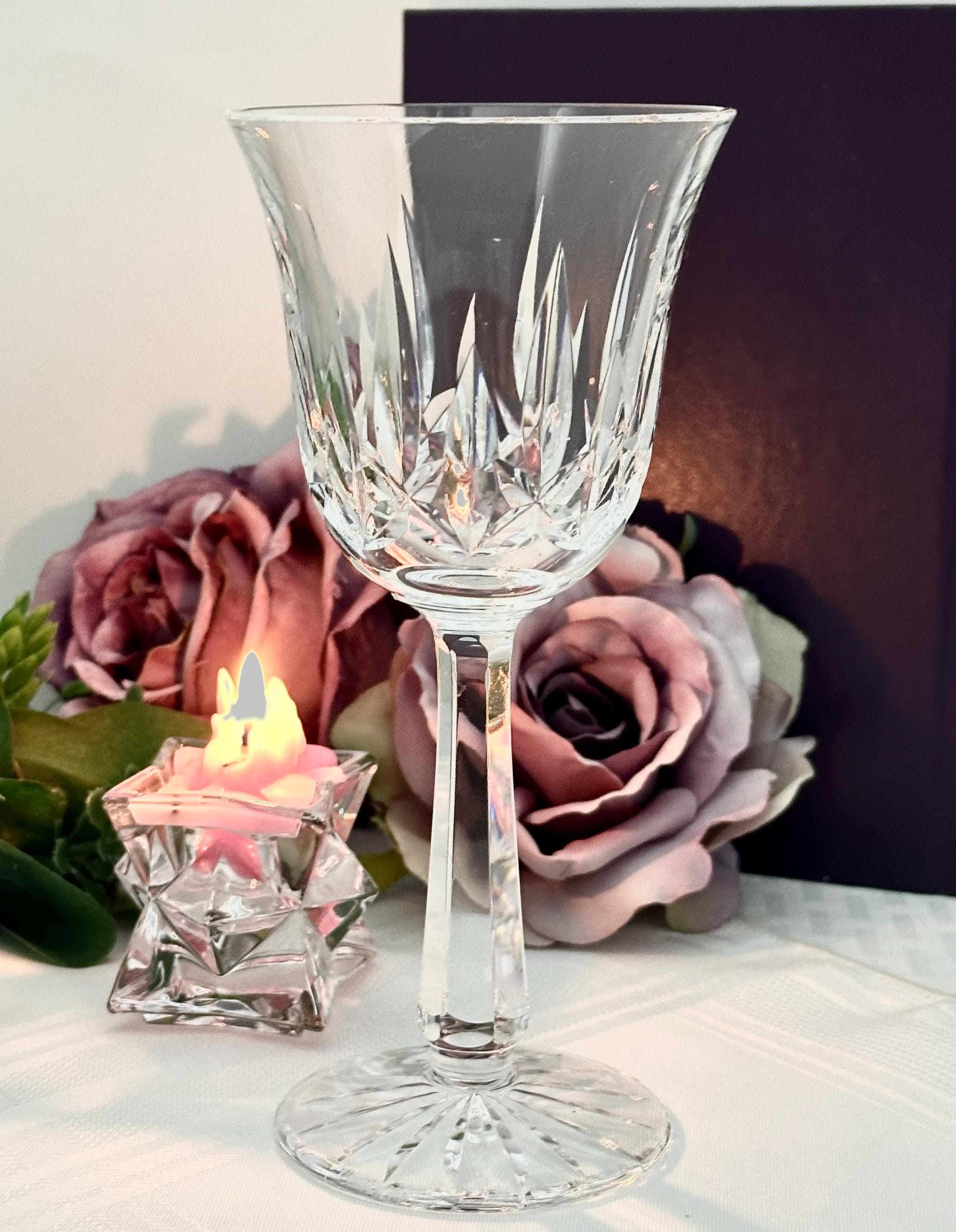 Handmade by the renowned Waterford brand, this traditional styled Claret Wine glass stands at 7 5/8 inches tall, making it a unique and exquisite piece of barware for collectors and wine enthusiasts alike. These have a ledge and the pattern came with and without this. If matching please make sure you are buying the same style.