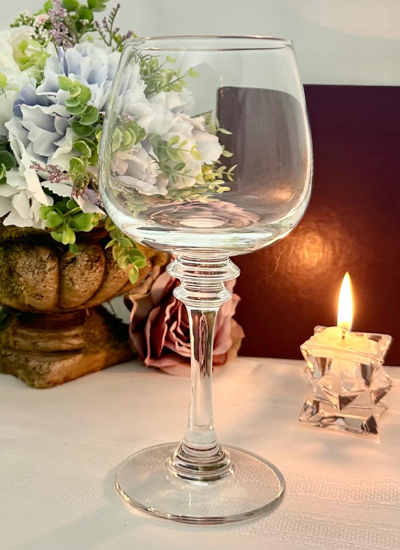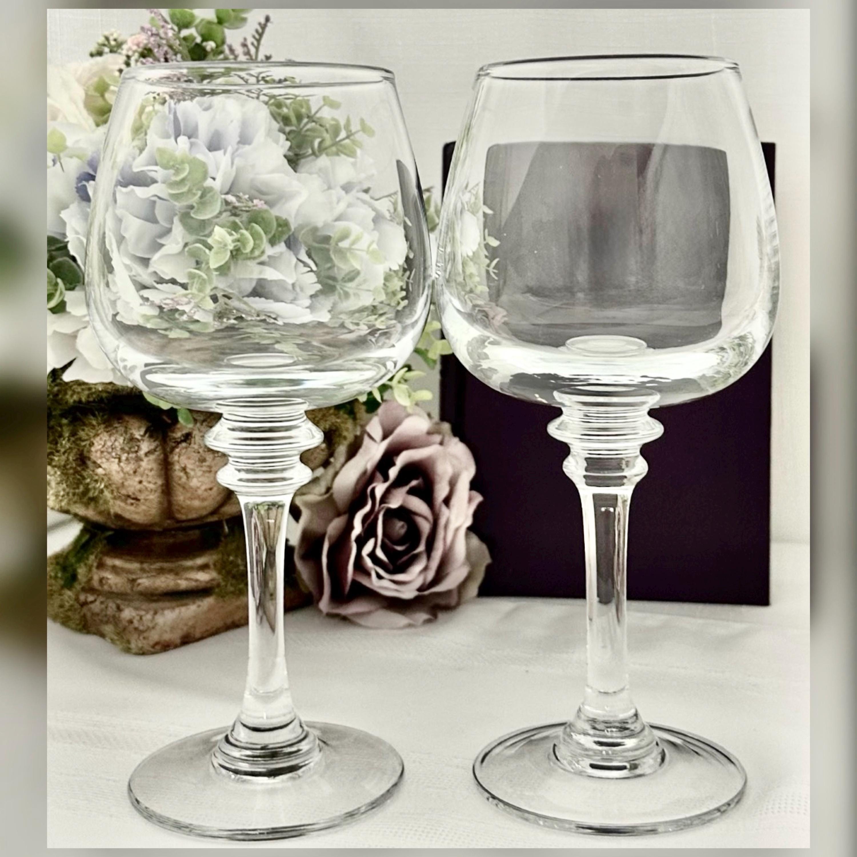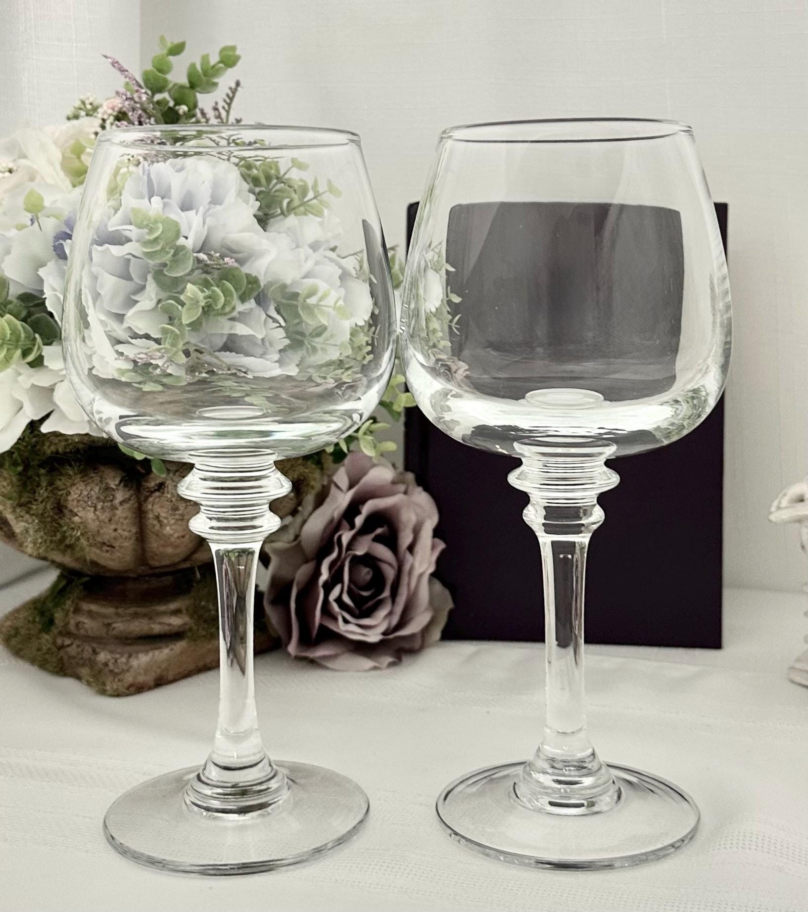 These vintage wine glasses each hold 16 Oz of liquid. These Pottery Barn glasses were produced from 2006 to 2014 and then discontinued. These are crafted with thick clear glass and should be washed by hand to keep in this wonderful condition. These make for perfect replacement glasses as have no chips, cracks or water spots.