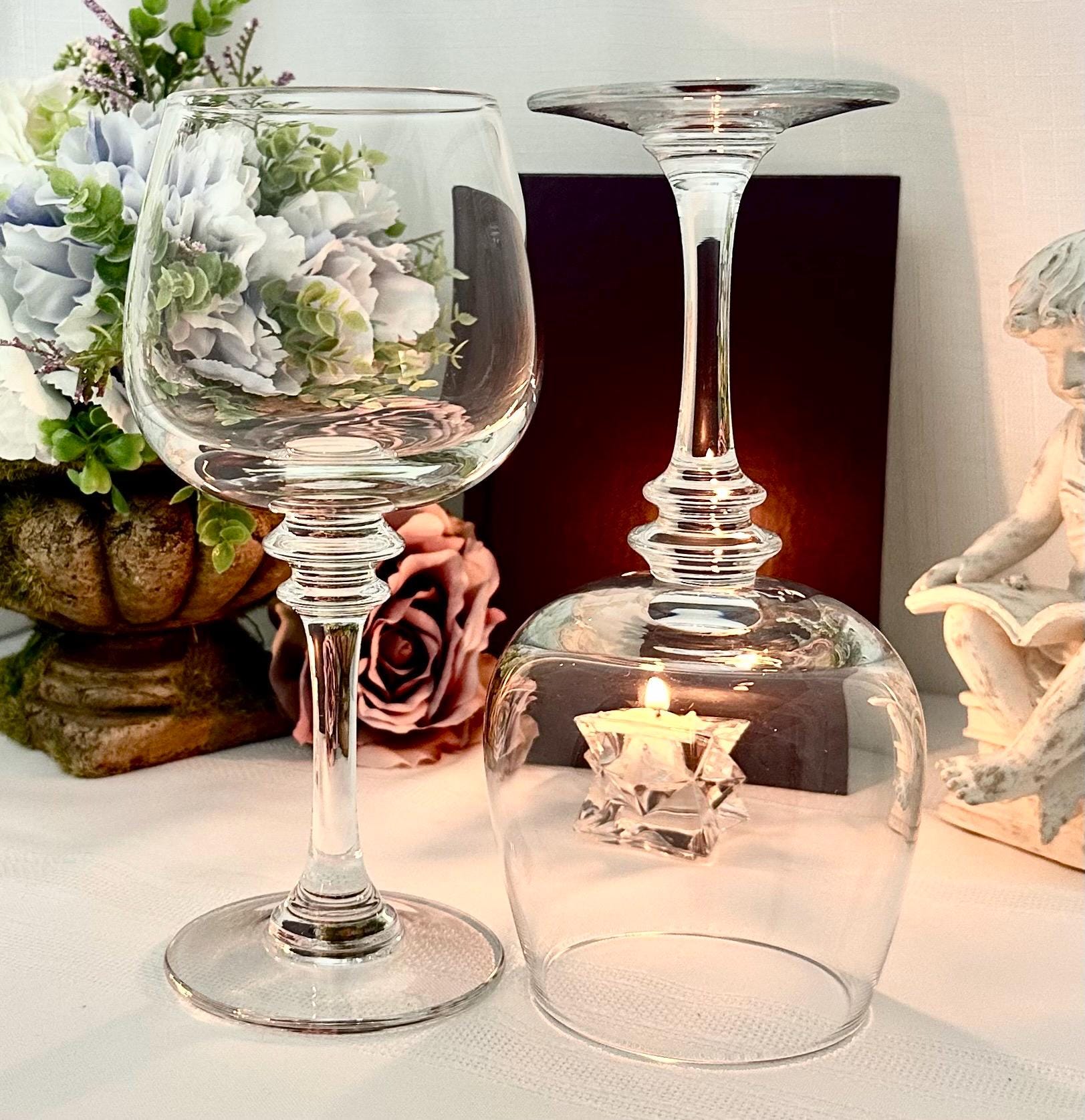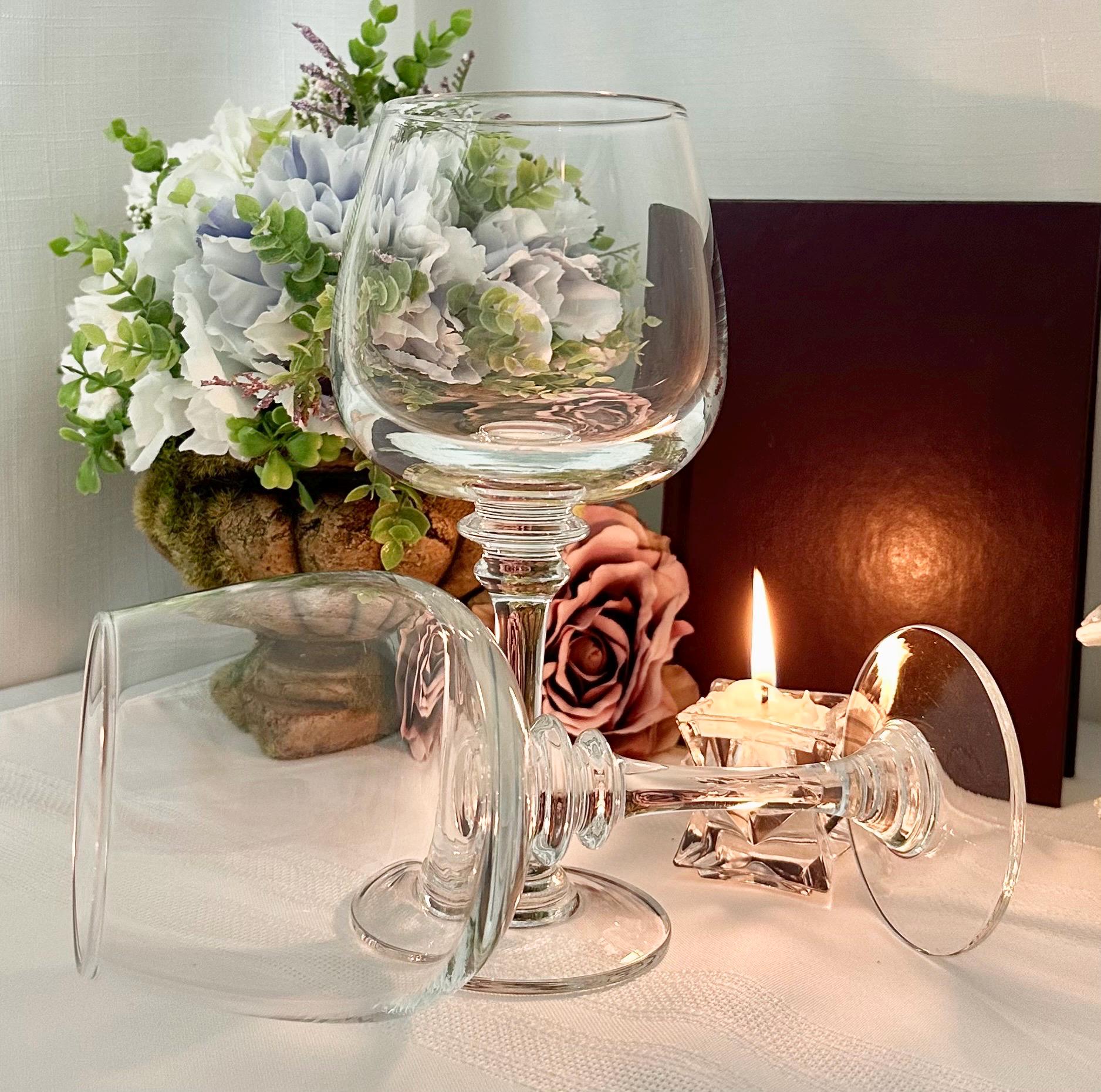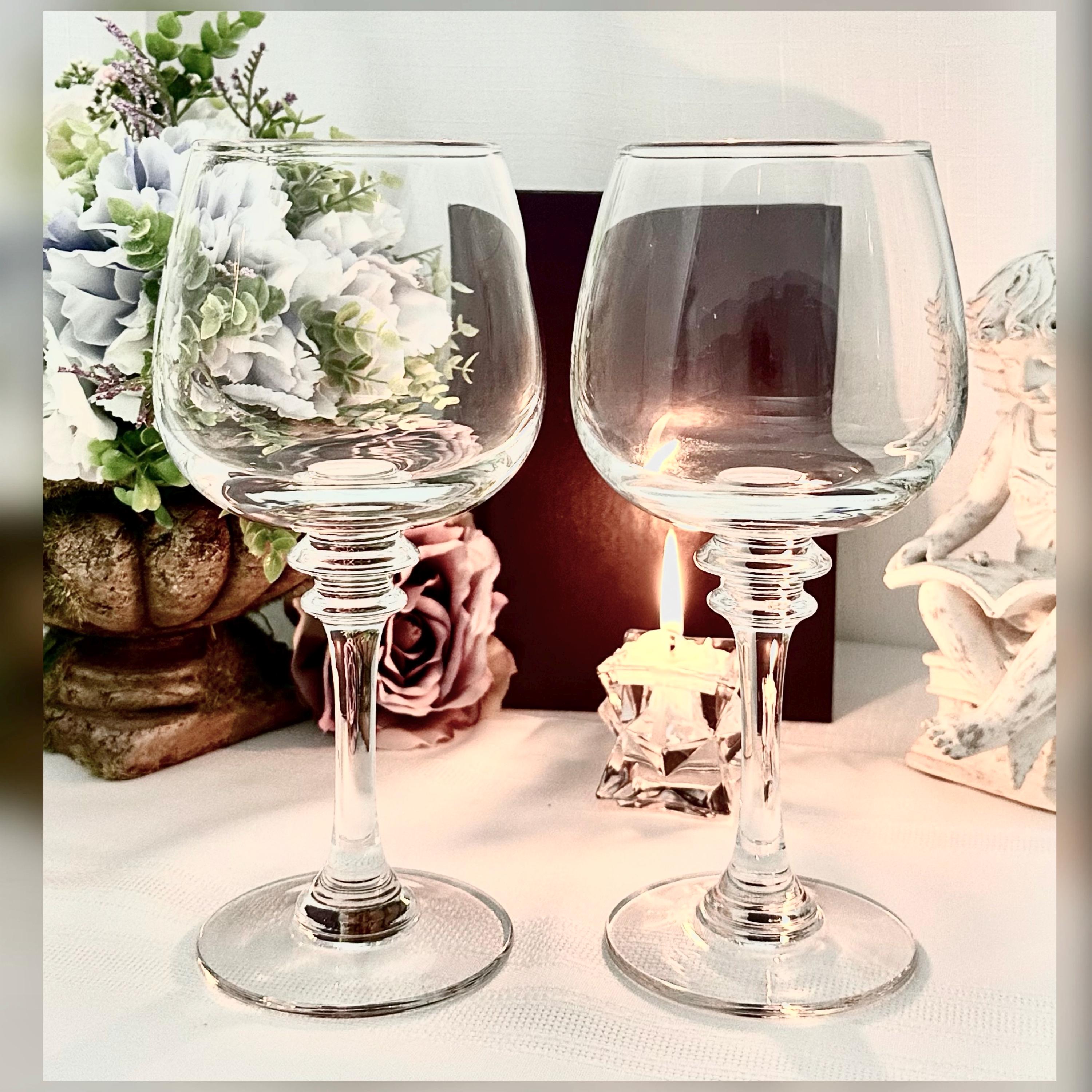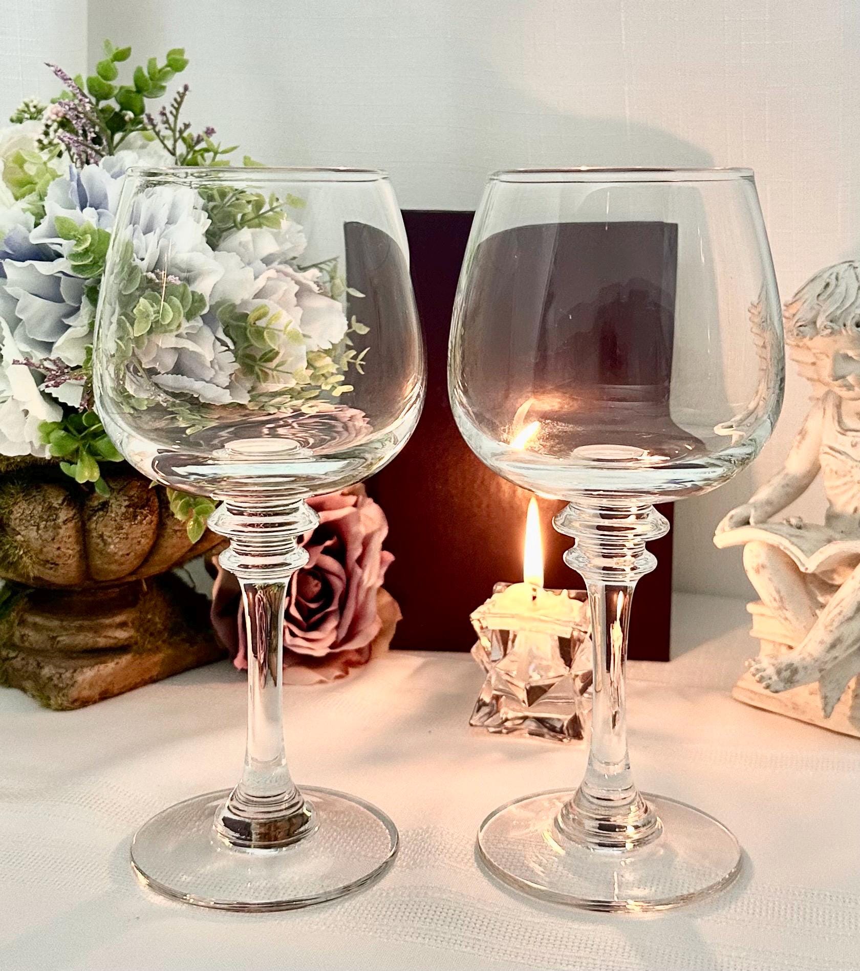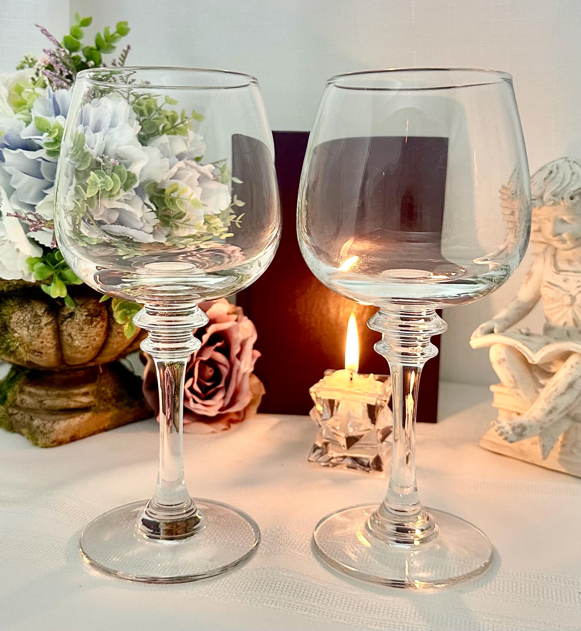 This is for 2 Vintage Wine Glasses from Pottery Barn. These are in the Claro pattern. The glasses are Blown Glass and were crafted in Poland. These measure 8.5 inches tall with a 3 inch diameter.