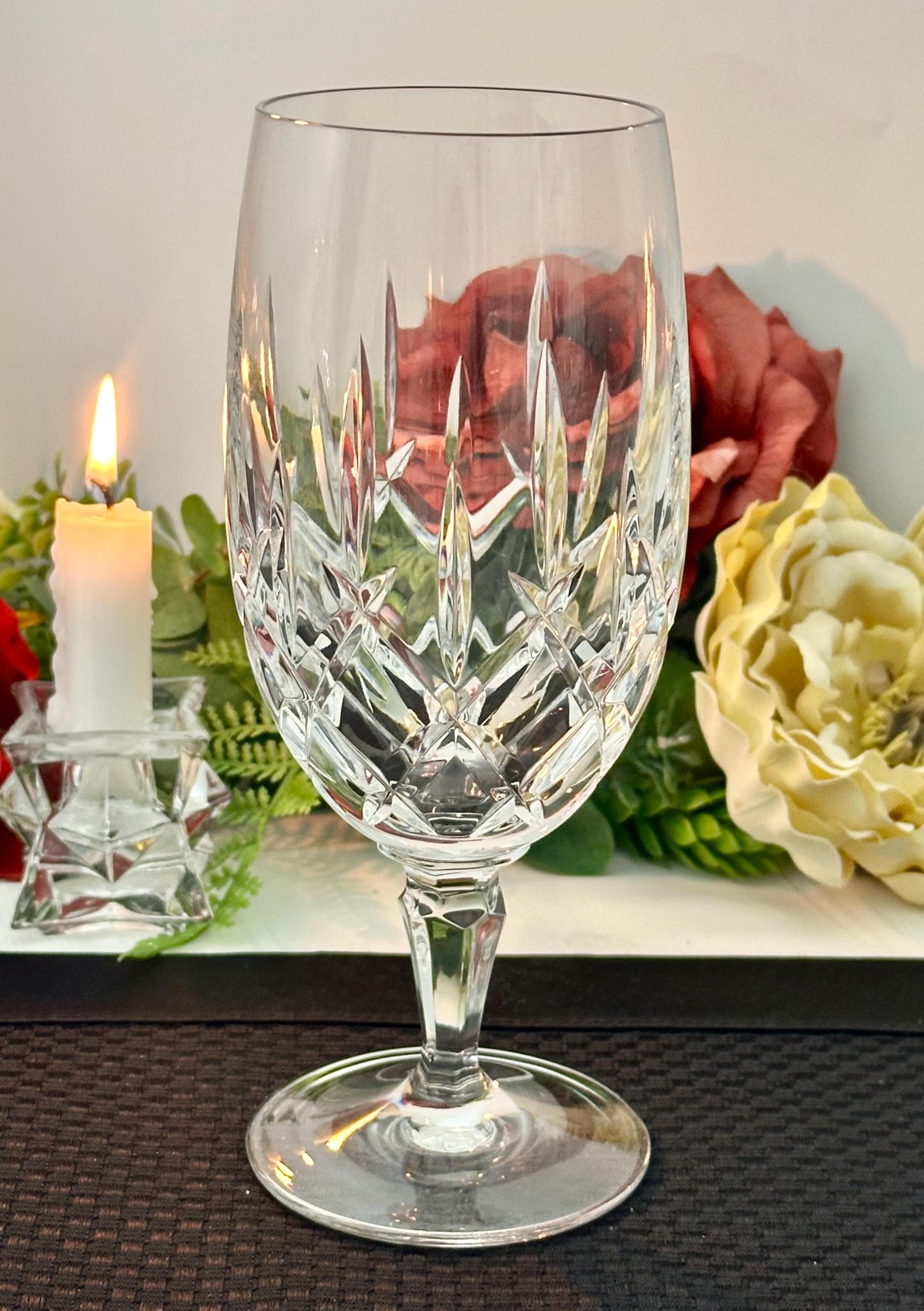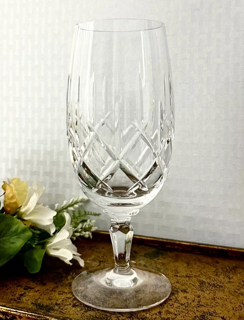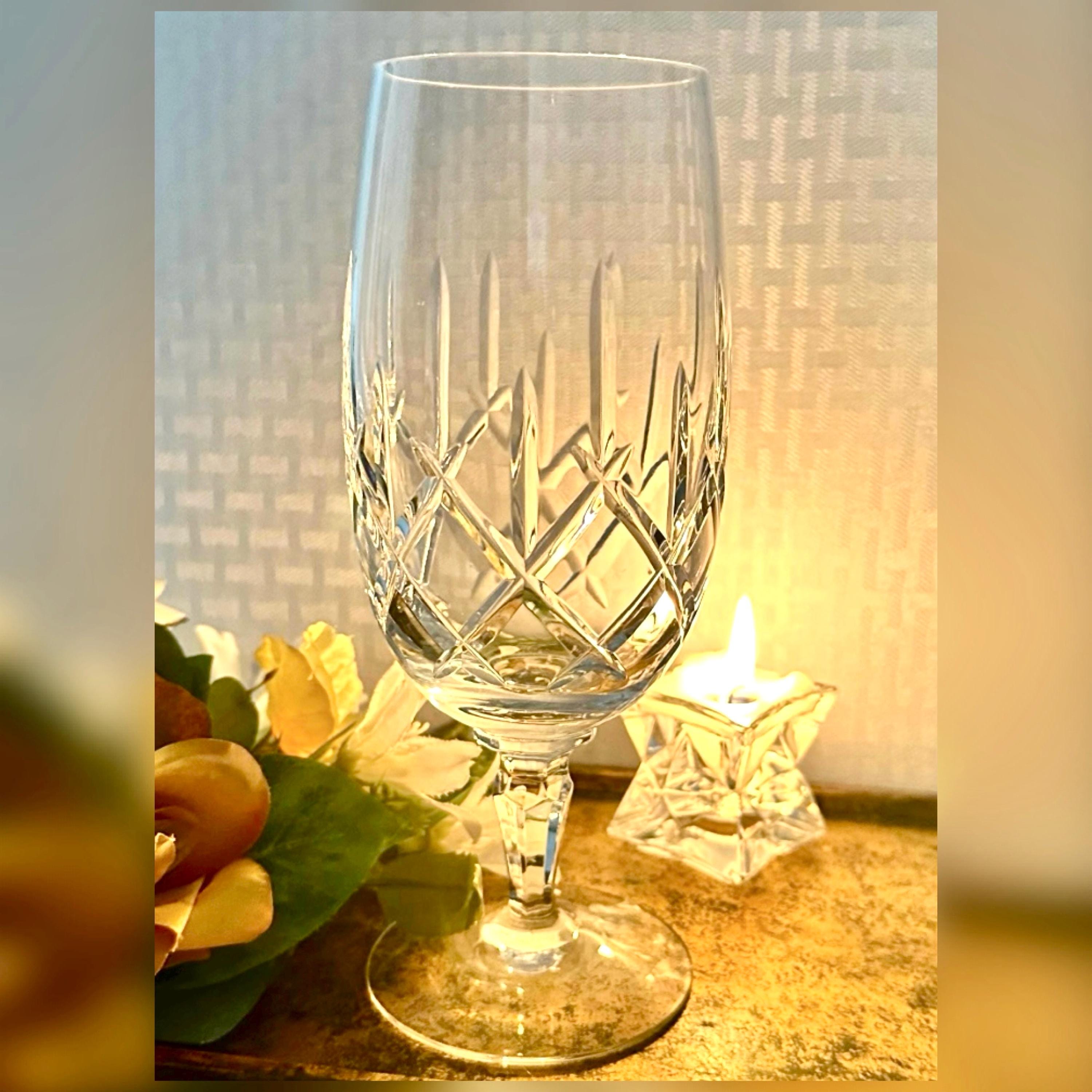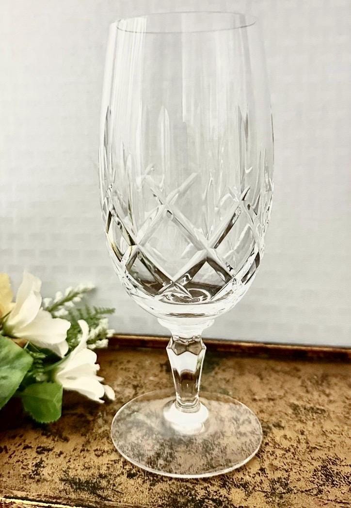 This is for 1 lovely Water Glasses from Gorham Crystal in the Lady Anne pattern. This piece is hand blown glass that was crafted in West Germany. These hold 14 Oz of cold liquid, perfect for ice tea or use as a water glass.