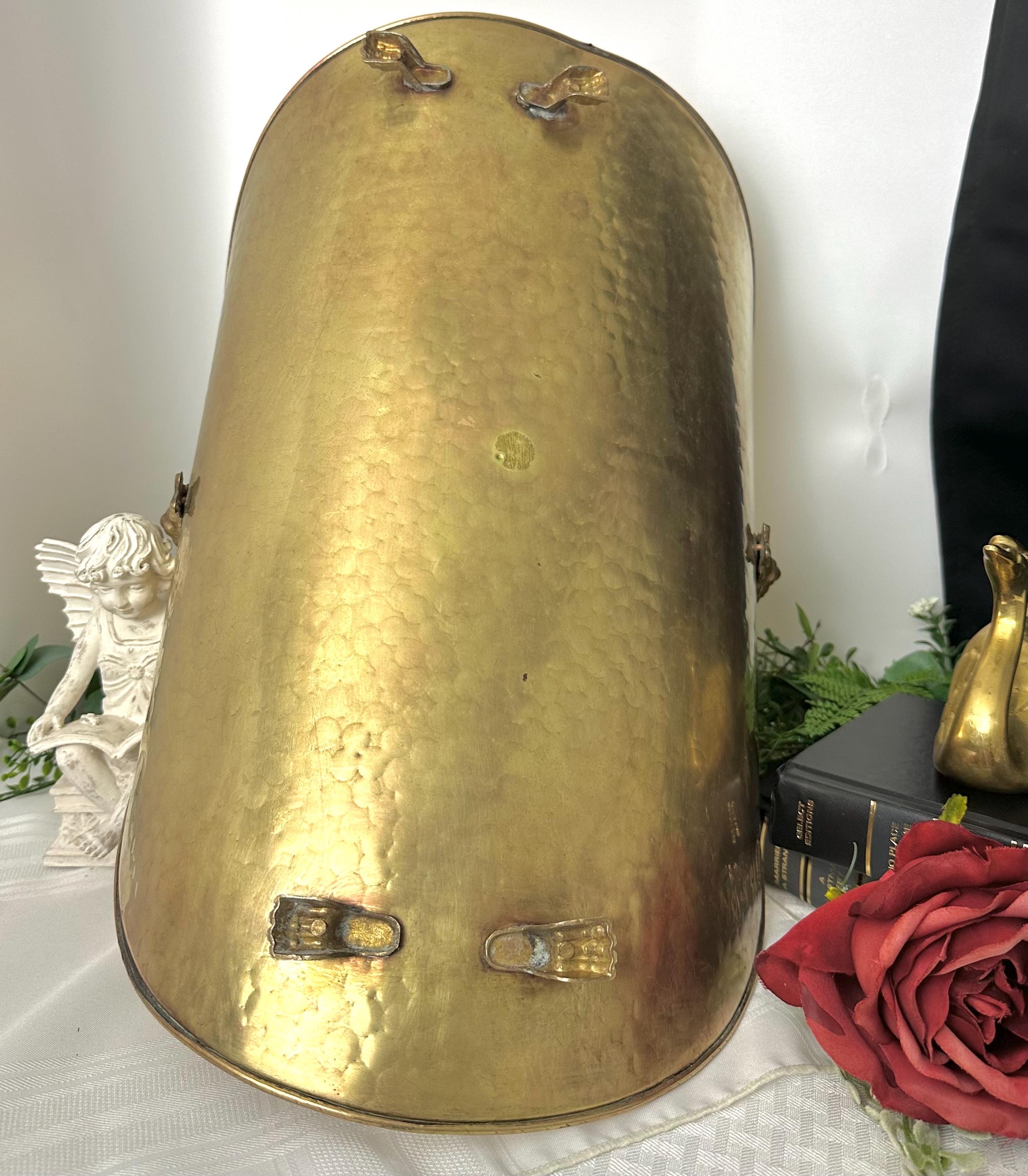 The brass on the item is not very heavy and there is a dent in the front on one side shown in the pictures. I don't believe this in a piece to carry wood around in but rather sat on a floor and then filled. This is not a new piece and shows normal wear / use.