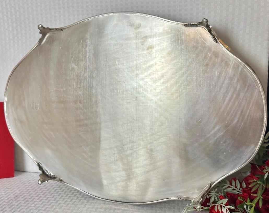 The footed design adds a sense of grandeur and measures3 inches tall. Whether used for serving or as a display piece, this Sheffield plate tray is sure to impress.