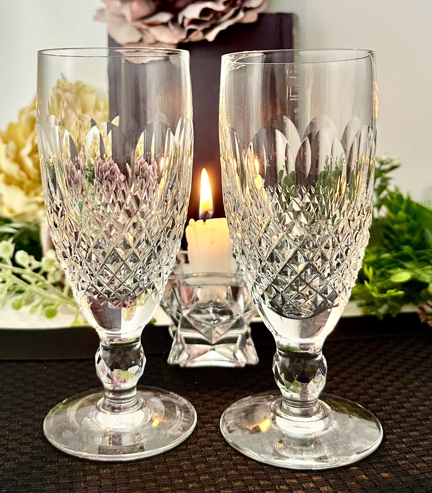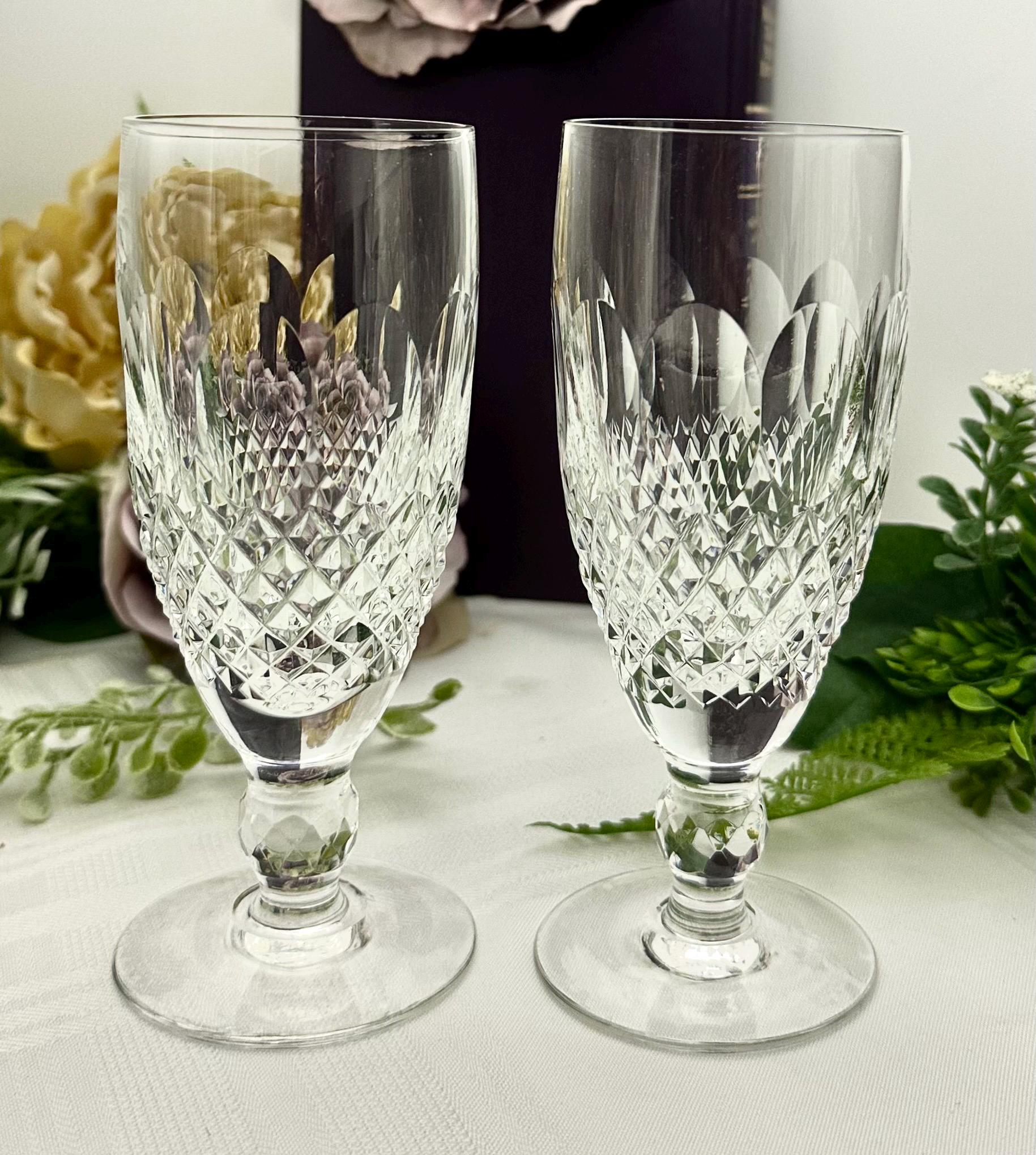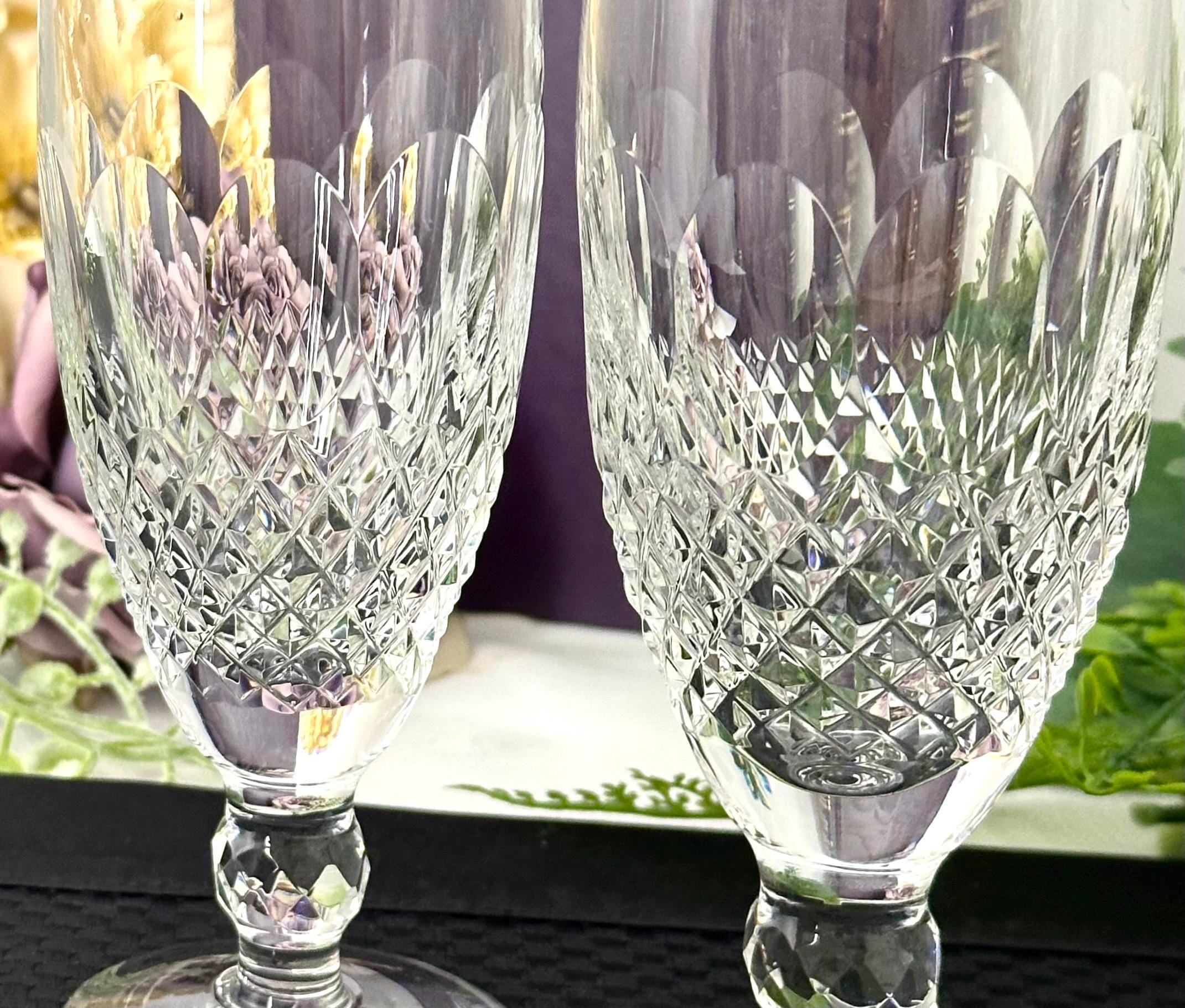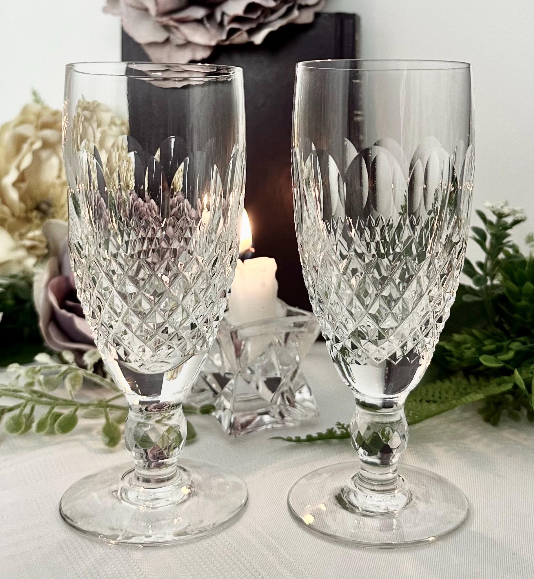This is for a pair of Waterford Colleen Short Stem Champagne Flutes. These 6" glasses are a traditional and elegant set of champagne glasses perfect for all occasions. Perfect for a wedding to any special toasting occasion.