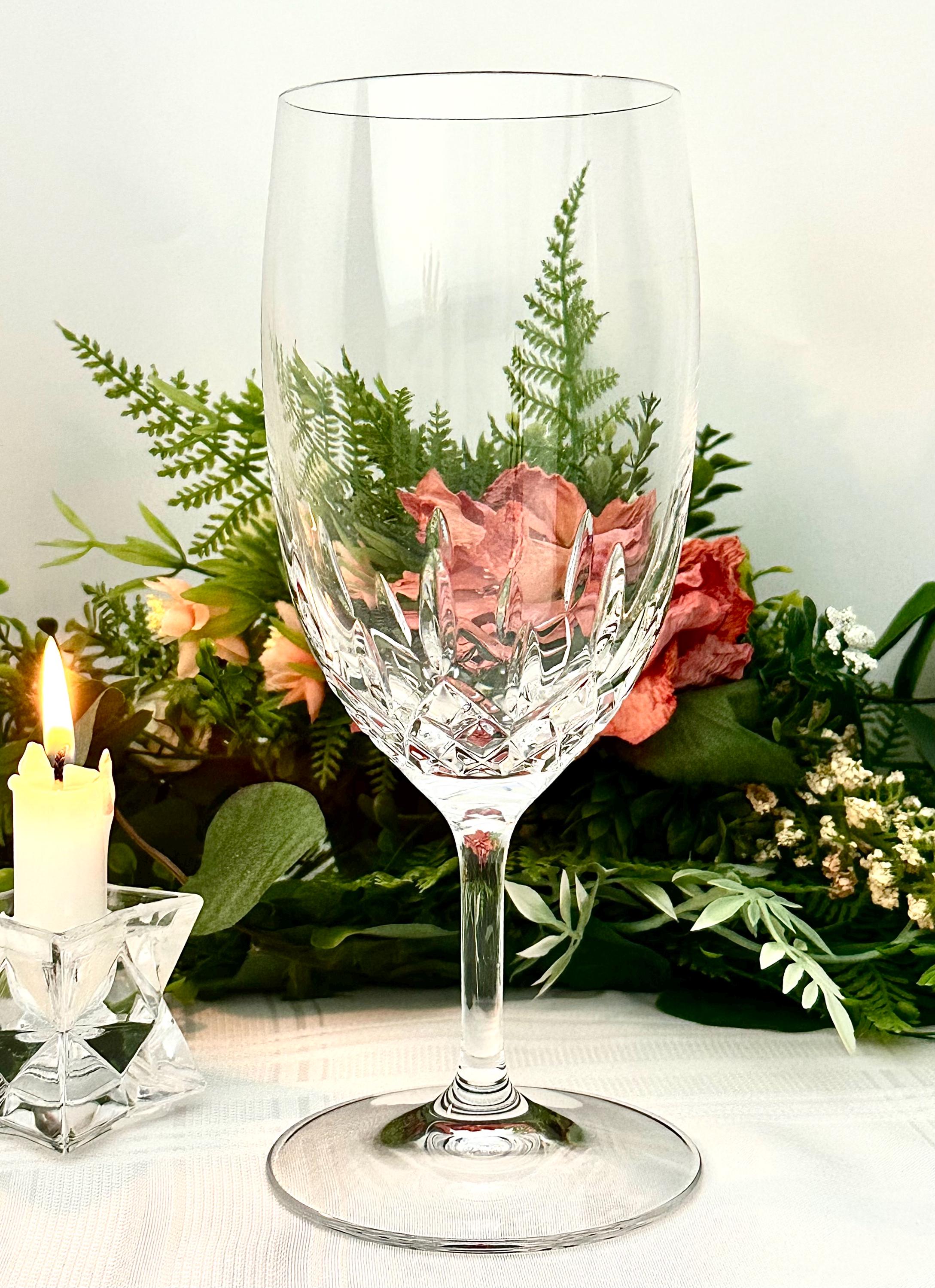This is for 1 Vintage Waterford Lismore Essence Ice Tea Glass. This is a beautifully crafted 19 oz stemmed drinking glass made of elegant glass. This vintage Waterford tea glass is hand-blown and features a clear color with a diameter of 3 1/8 inches and a height of 8.5 inches.