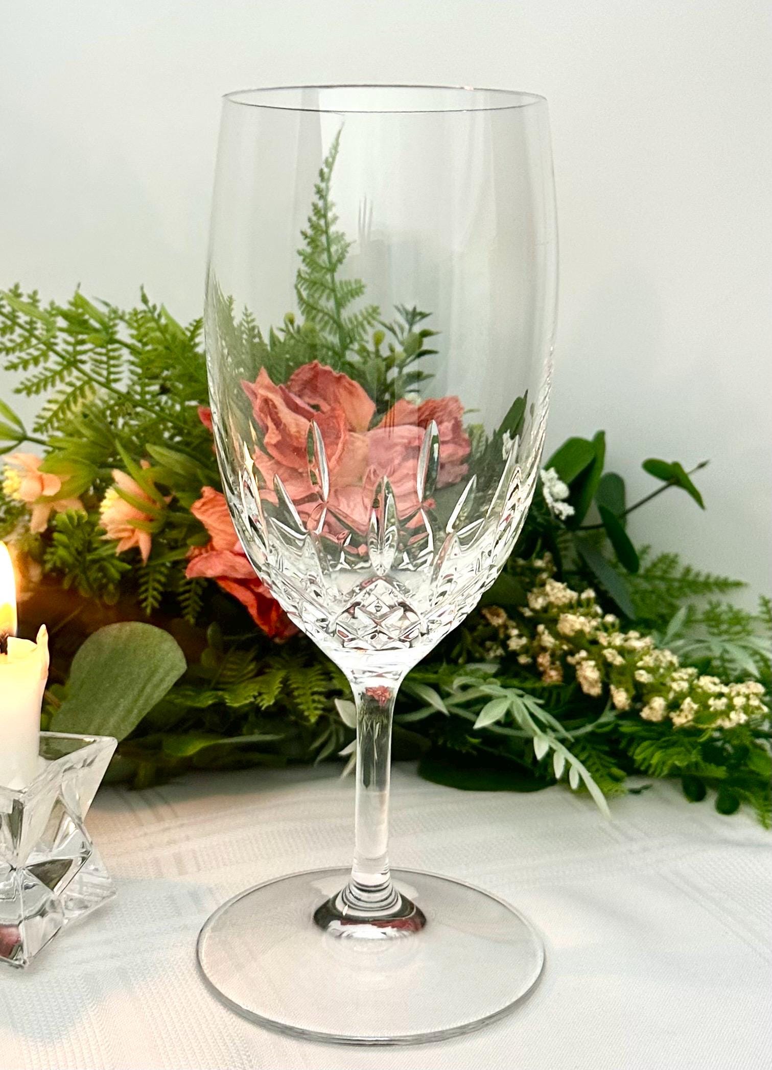 This glass has a scratch on the bowl noted in the pictures and thus discounted but still makes for a lovely replacement glass.
