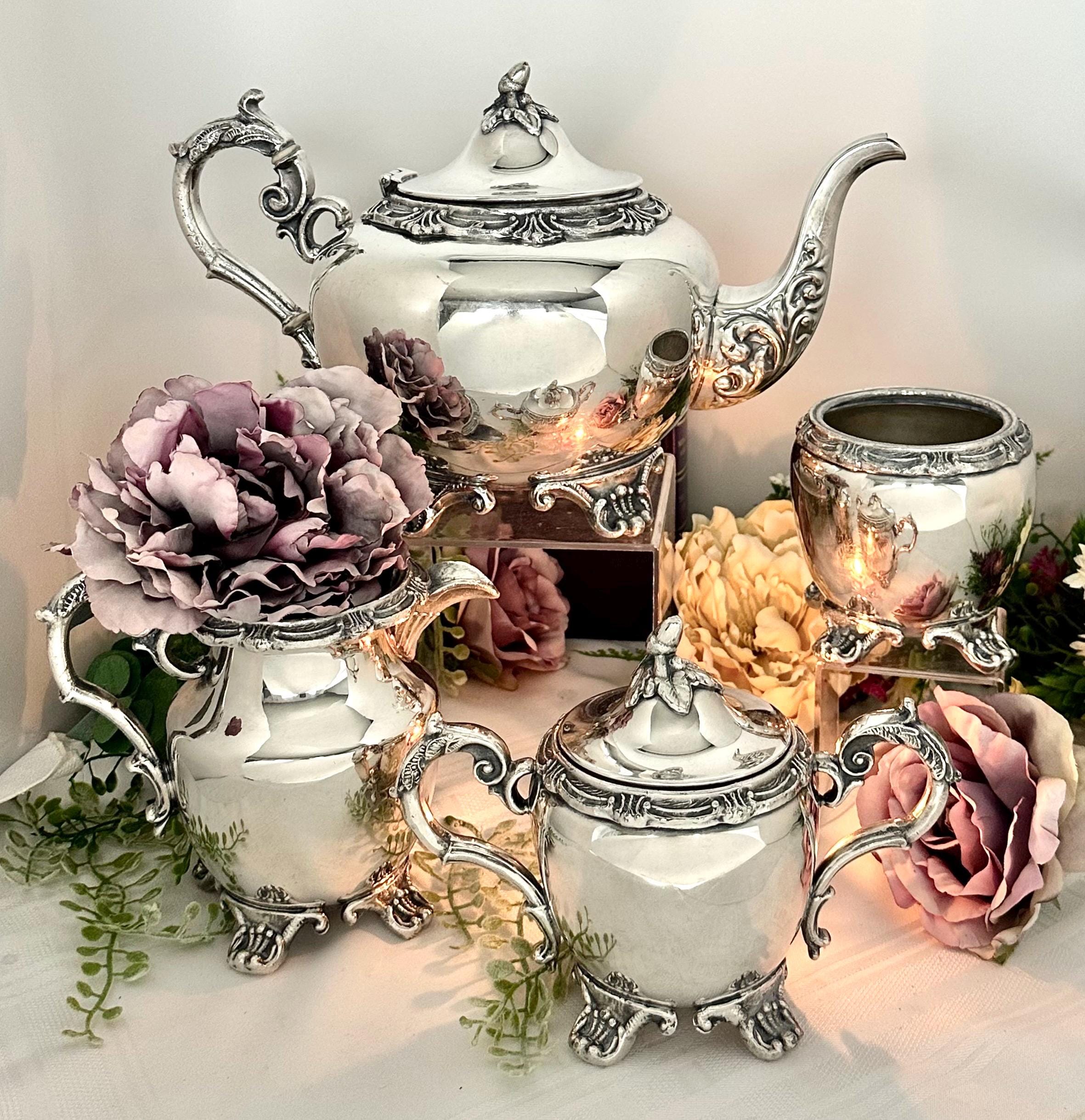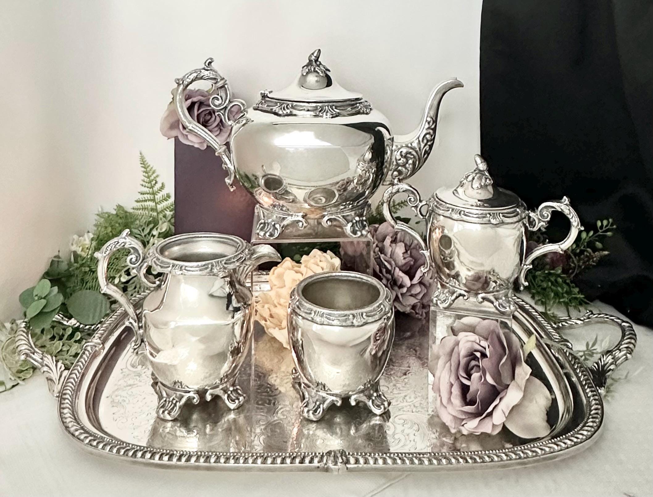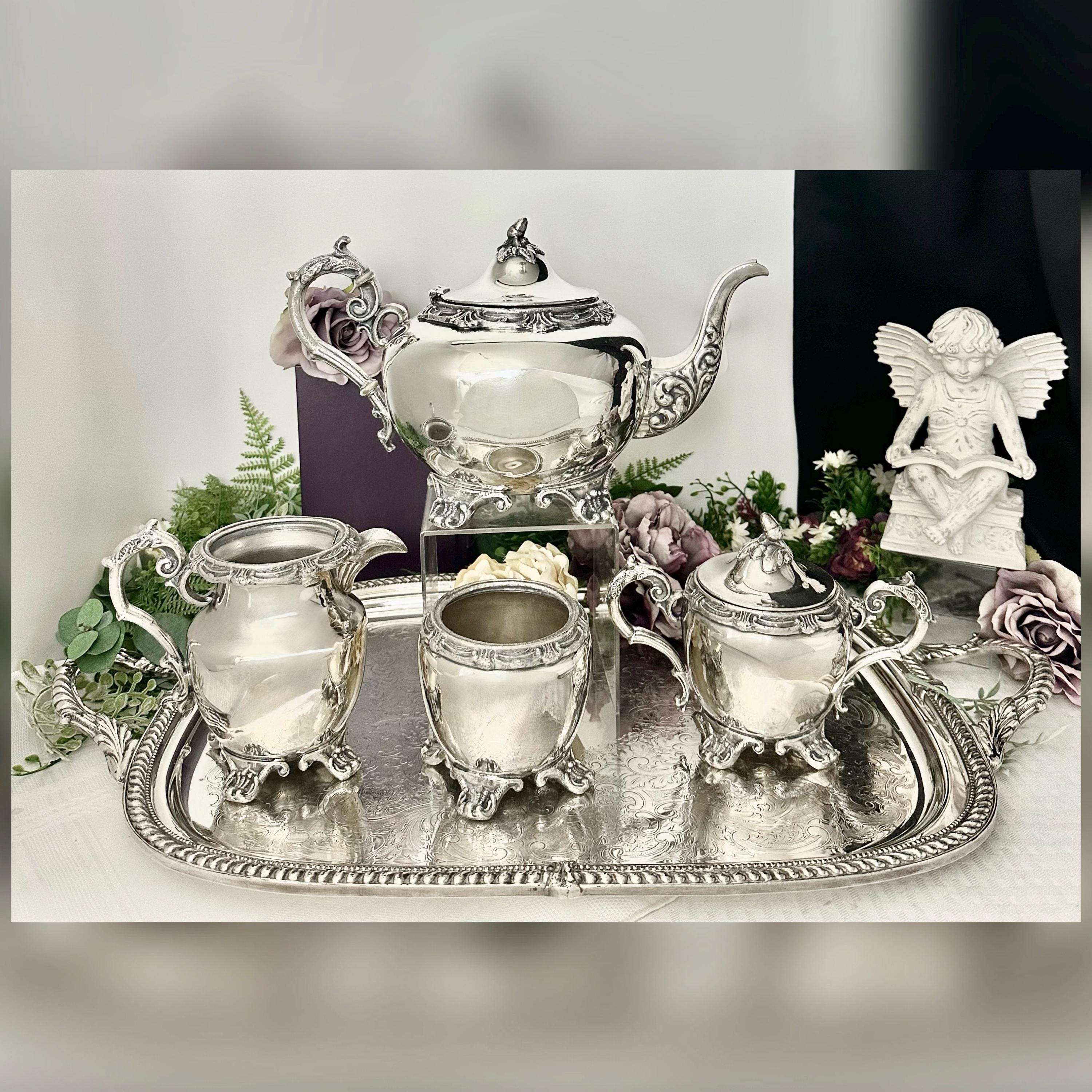 This is for an Antique Tea Coffee Set with tray that is marked from Sheffield England. It is Silver plate over very thick copper. The marker is unknown but would date to 1890 to 1930 for production date due to design, feet, scroll handles, leaf and acorn final and thickness of the pieces.