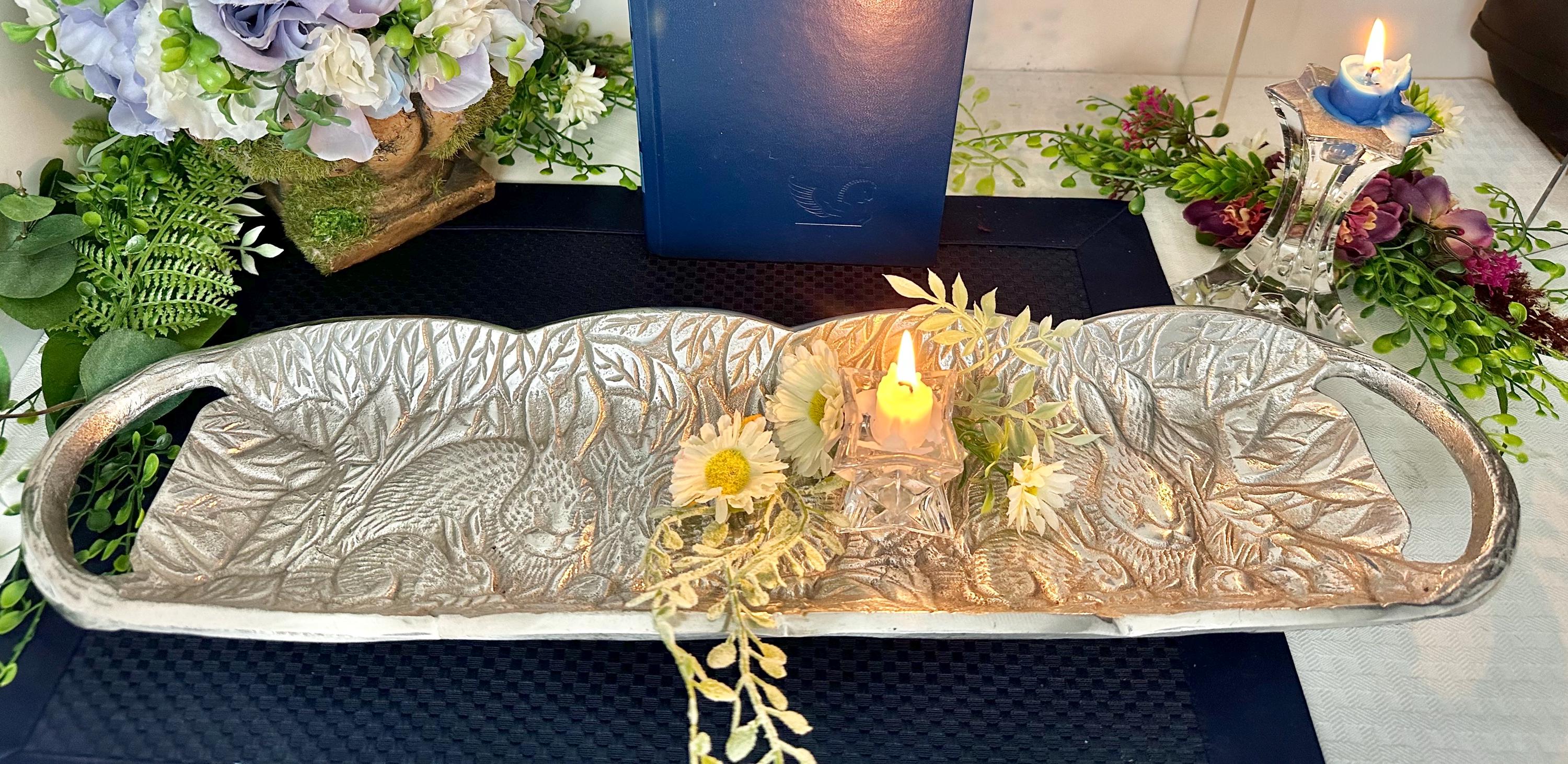 The tray is 21.25 inches long, 5.5 inches wide, and 1.5 inches deep, making it a practical and decorative item for your kitchen or home. This is perfect for holding anything from candy, cupcakes to candles as part of a decorative centerpiece.