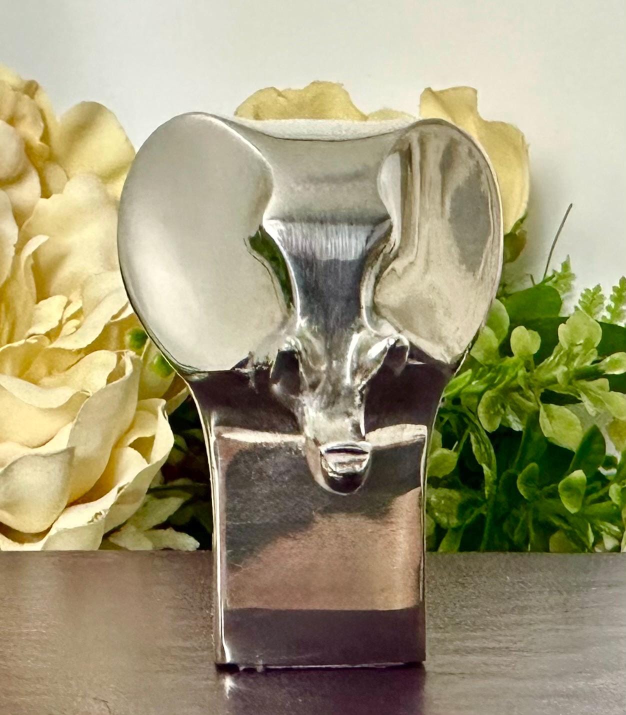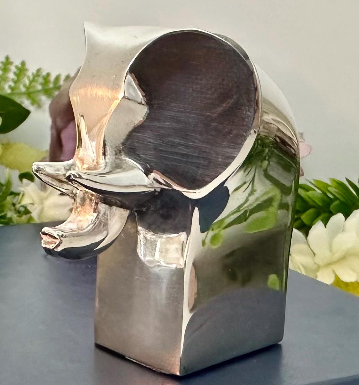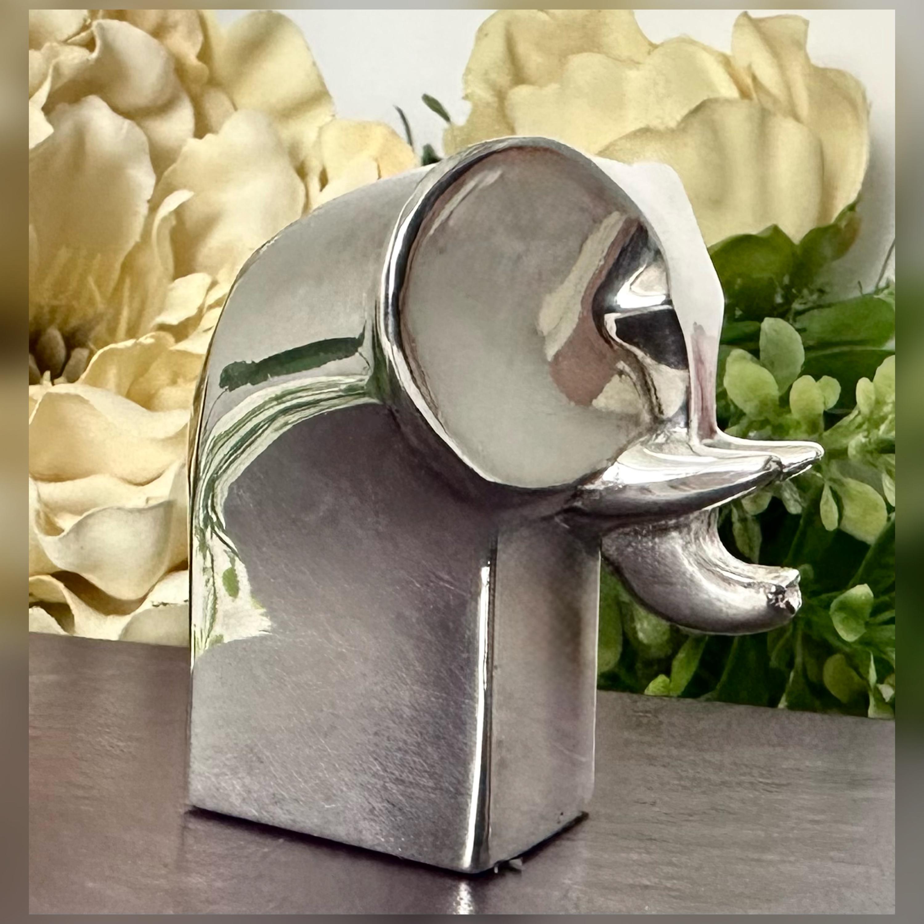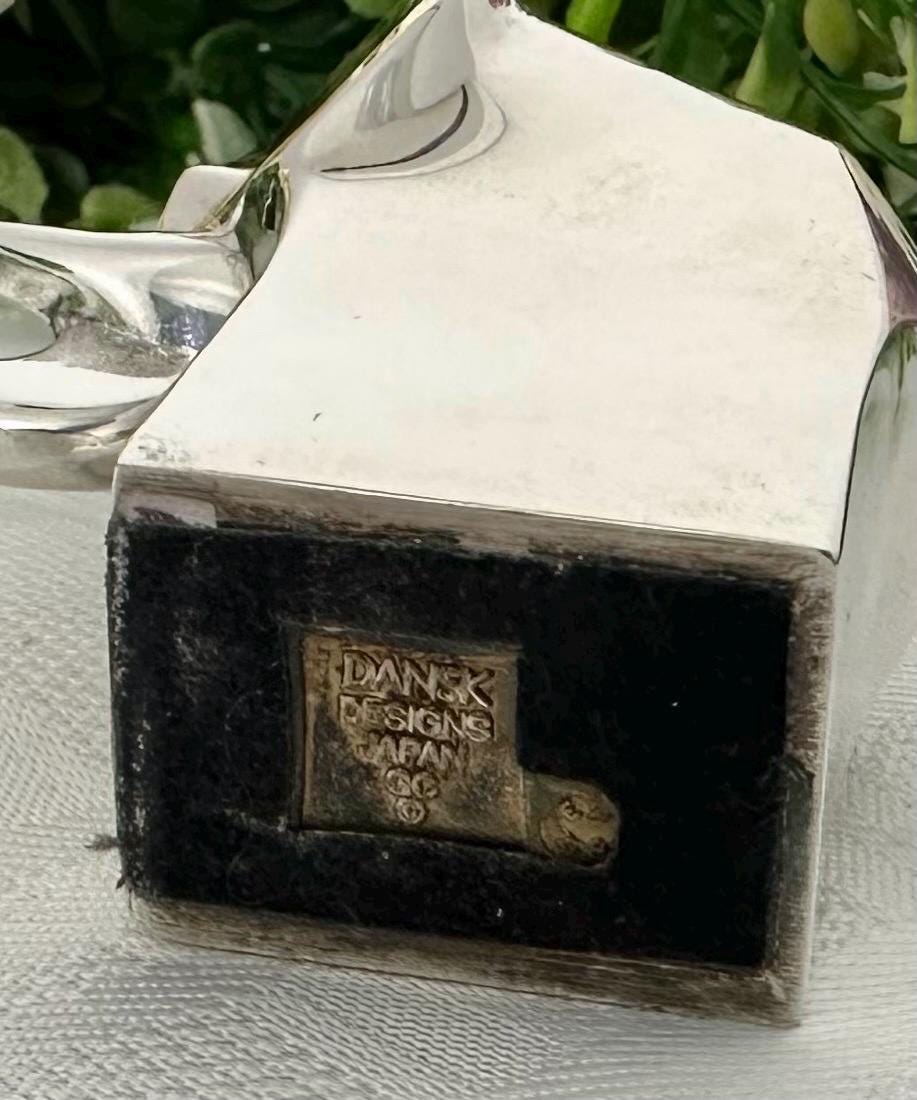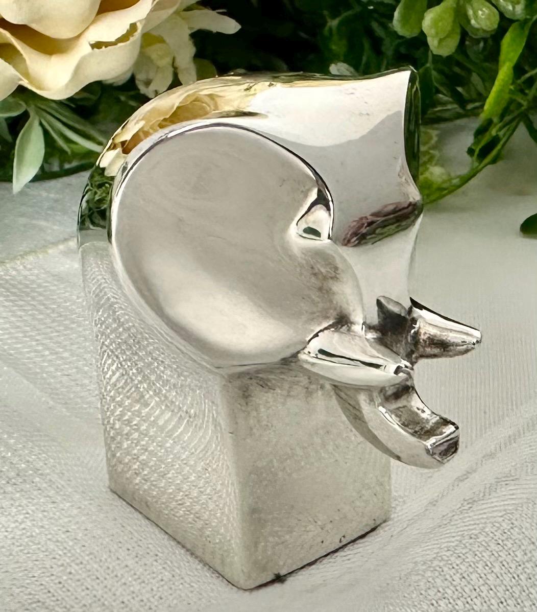 This is for a cute solid Gunnar Cyren Dansk Design Silver plated mini Elephant from Japan. It is such a cute and super shiny guy! He would work as a small paperweight or just absolutely any addition to an elephant lovers collection! It has a makers signed plate on the base of it and measures 2.25 inches tall x 1.5 inches wide and 2 1/8 inches deep. This sweet Elephant figurine was made in the 1980's.