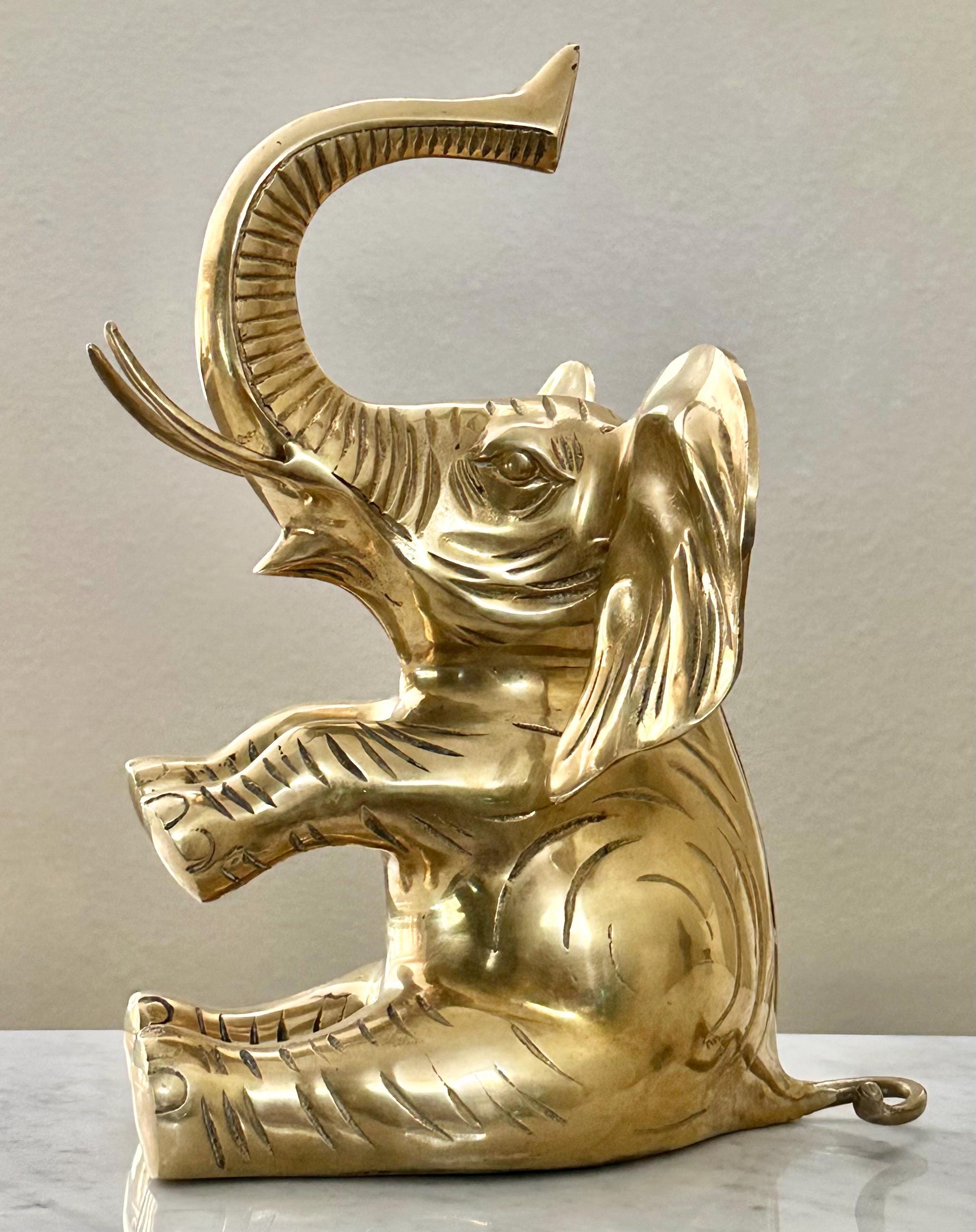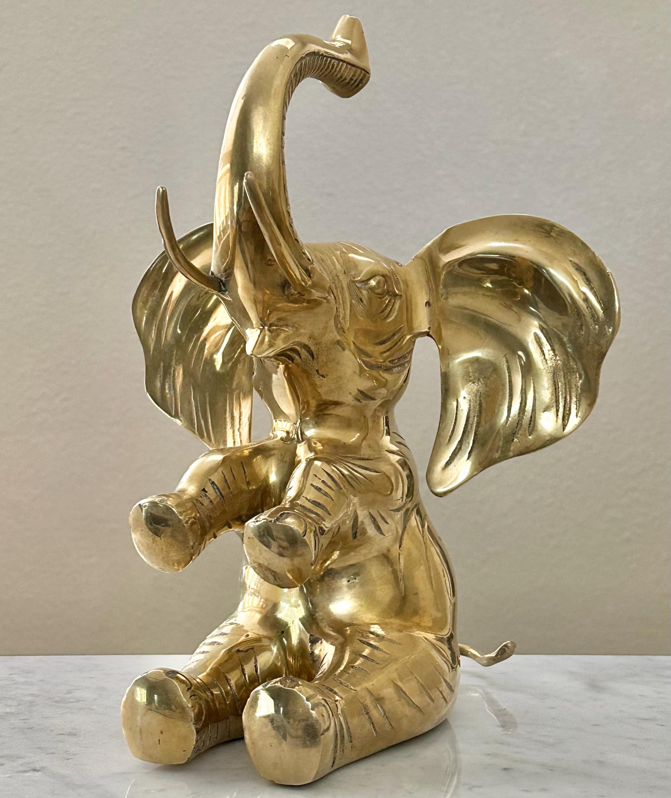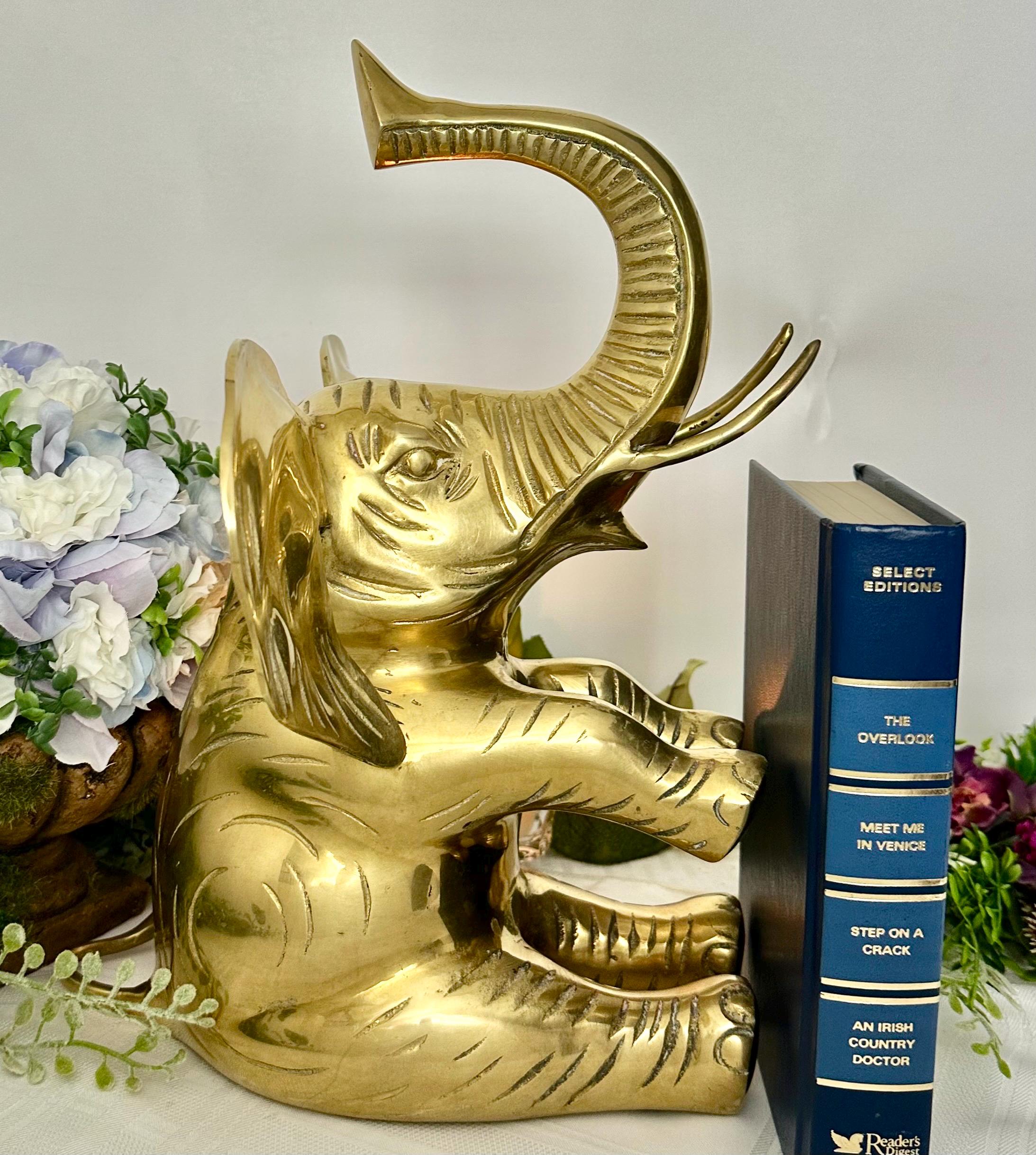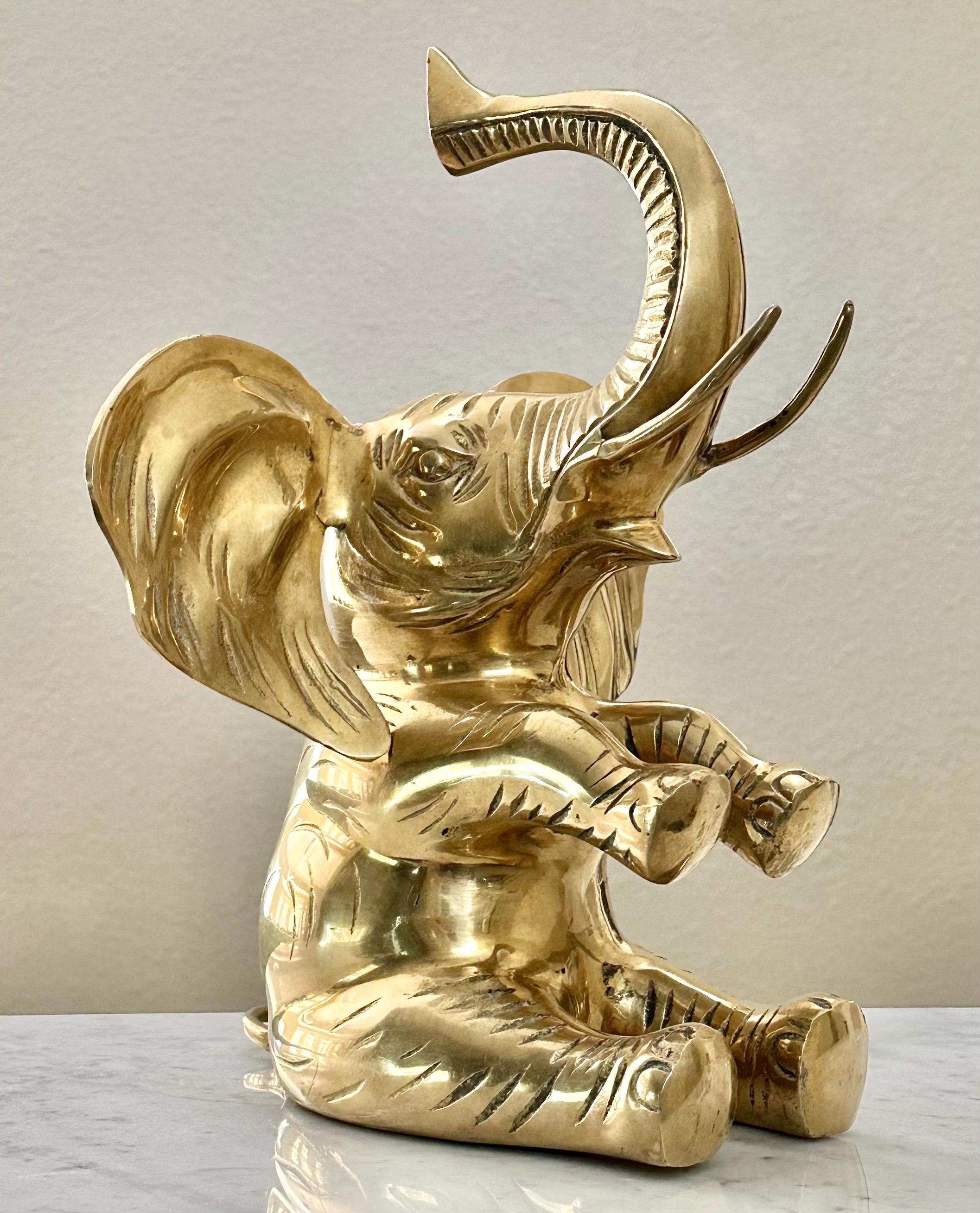 This vintage brass elephant figurine is a charming addition to any home decor. With its trunk up symbolizing good luck, this statue exudes positivity and style. The large sitting elephant design, measuring 10 inches in depth and 10 inches in width, showcases intricate details and craftsmanship.