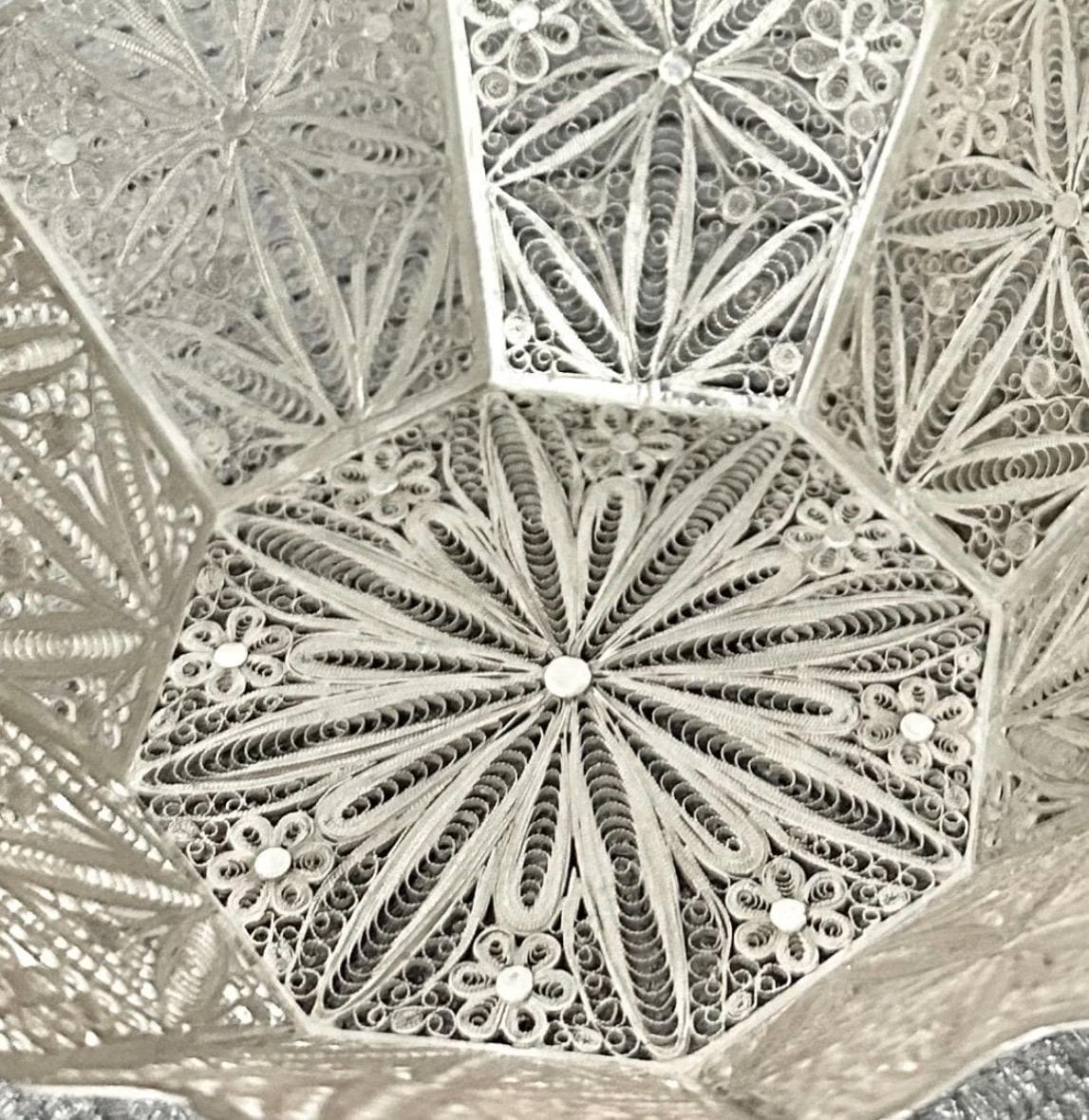 The Sterling silver basket has a weight of 120 grams, and most likely from Peru per the hand work and the style of the silver wirework.