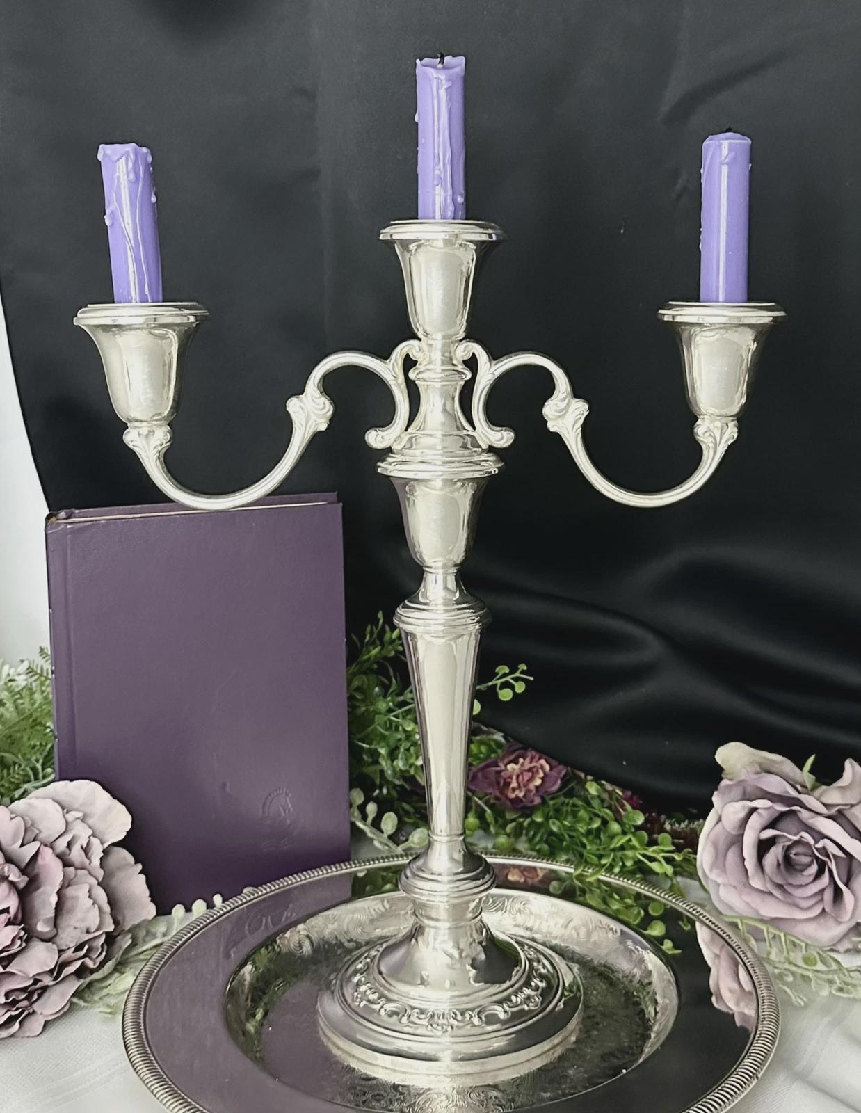This is for a Vintage Gorham Sterling Strasbourg 3 Arm Silver Candelabra. This is a stunning piece crafted from weighted sterling silver.