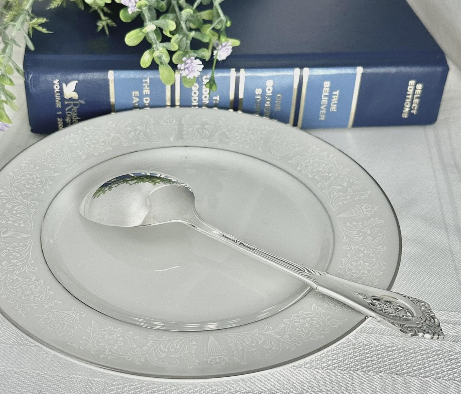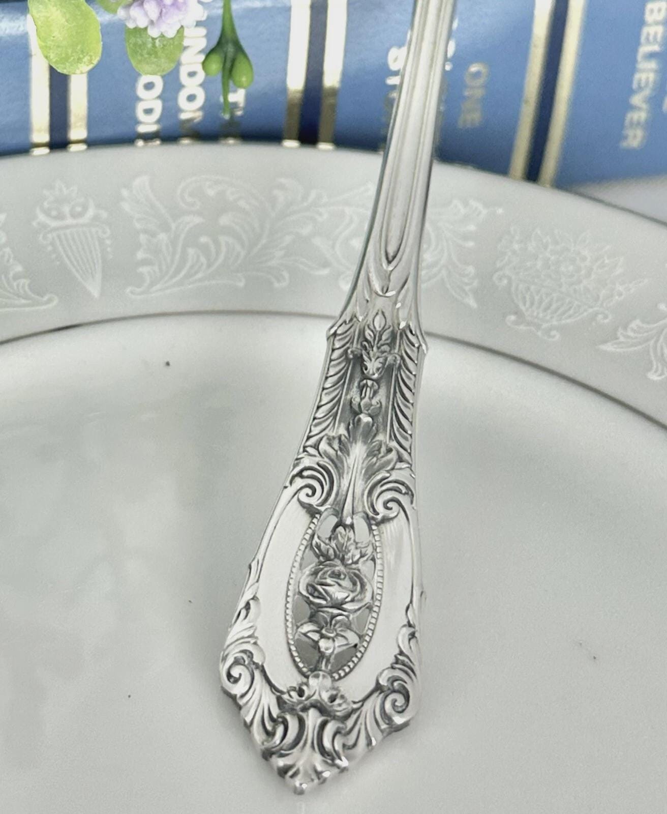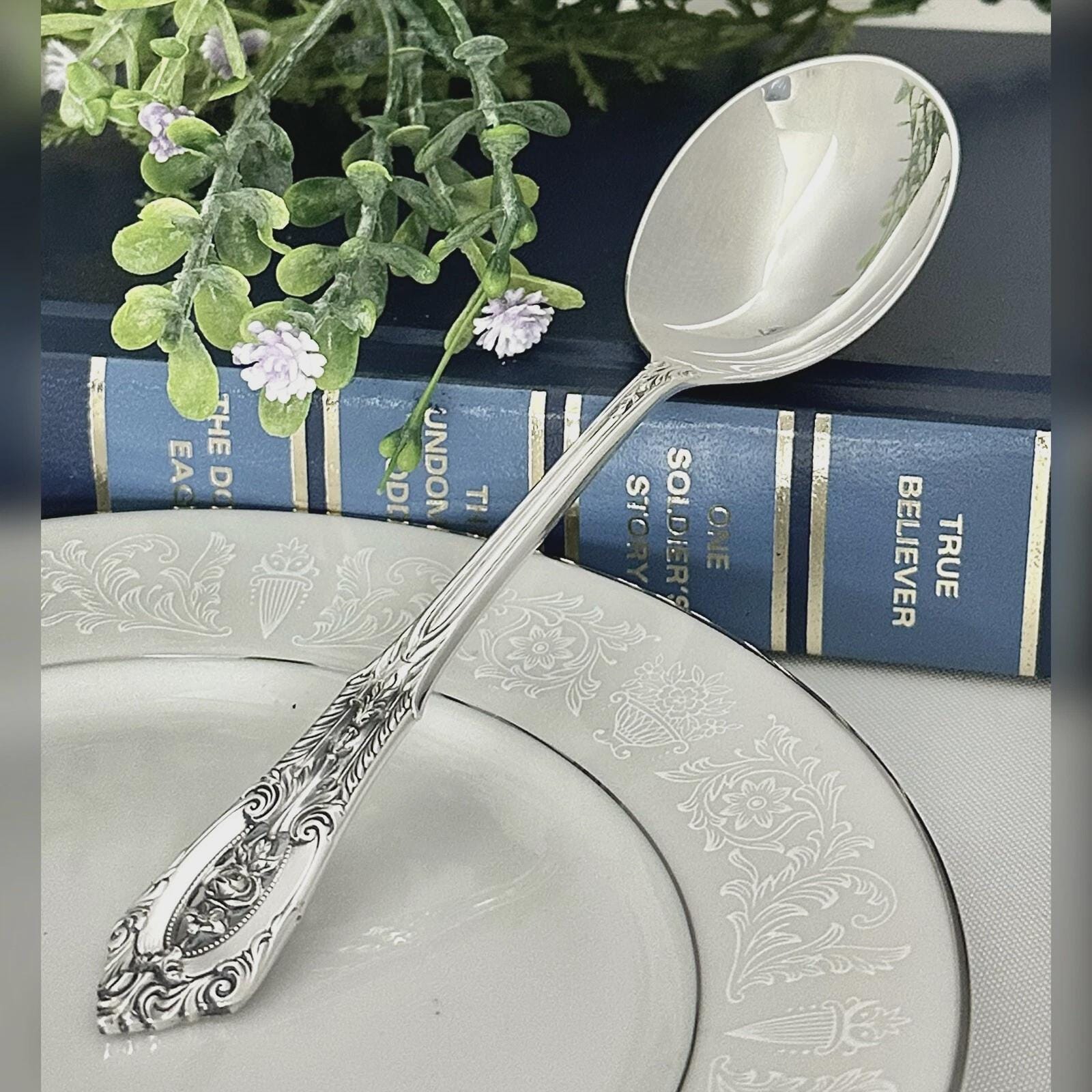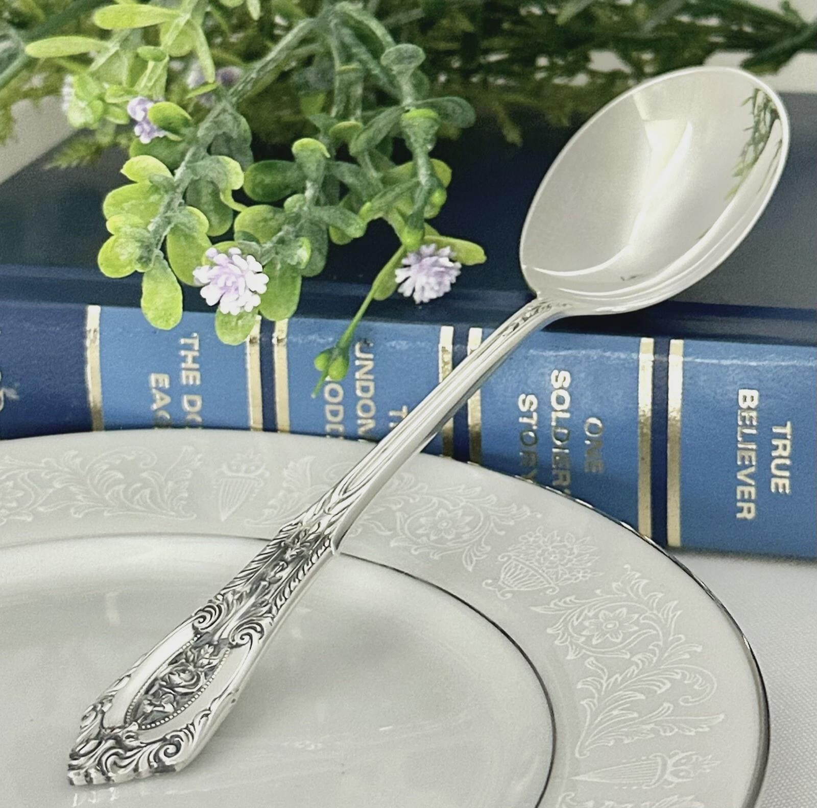 This is for 1 vintage Soup / Round Bowl Spoon in the Rose Point pattern from Wallace. This was produced in 1934 and has NO monogram.