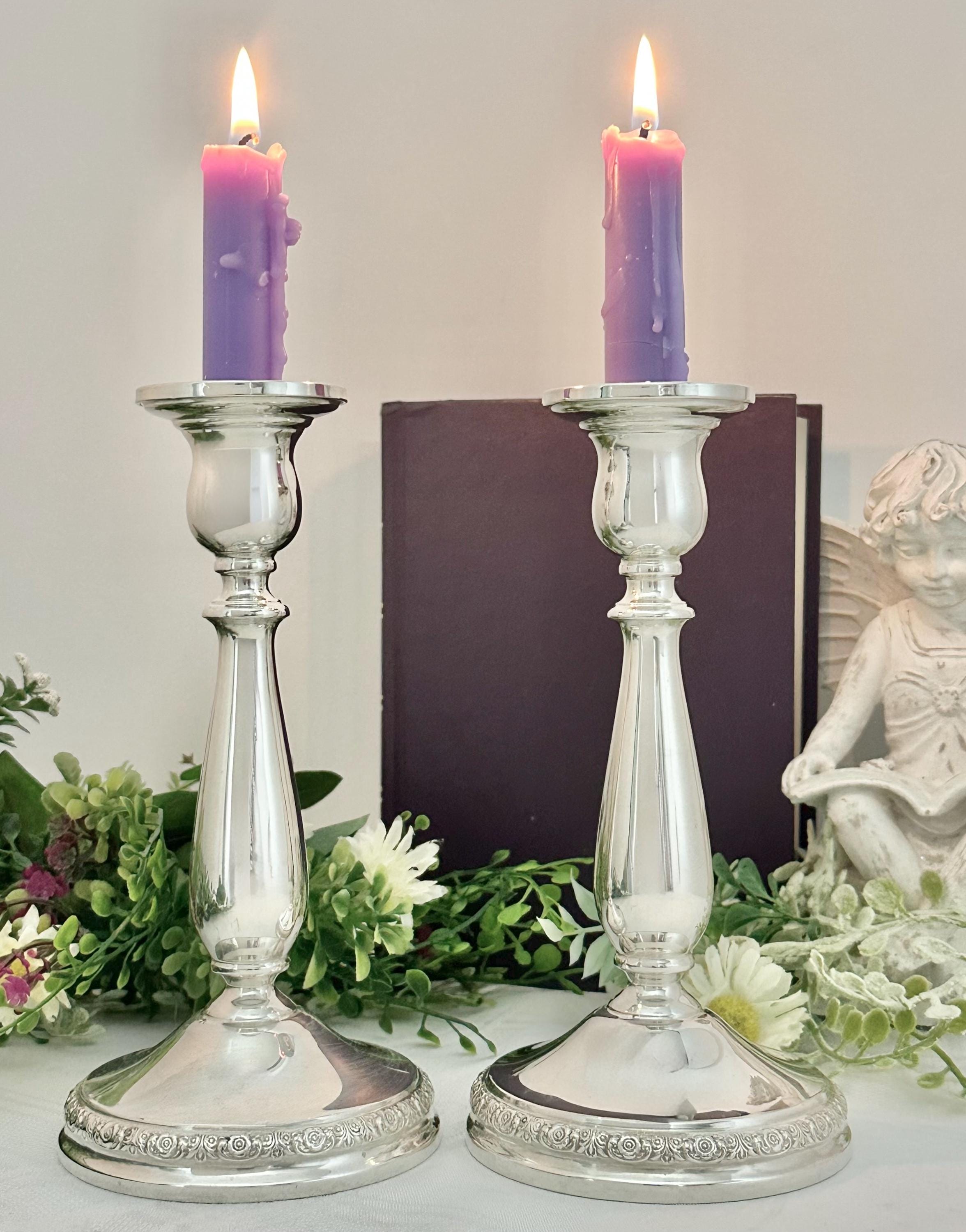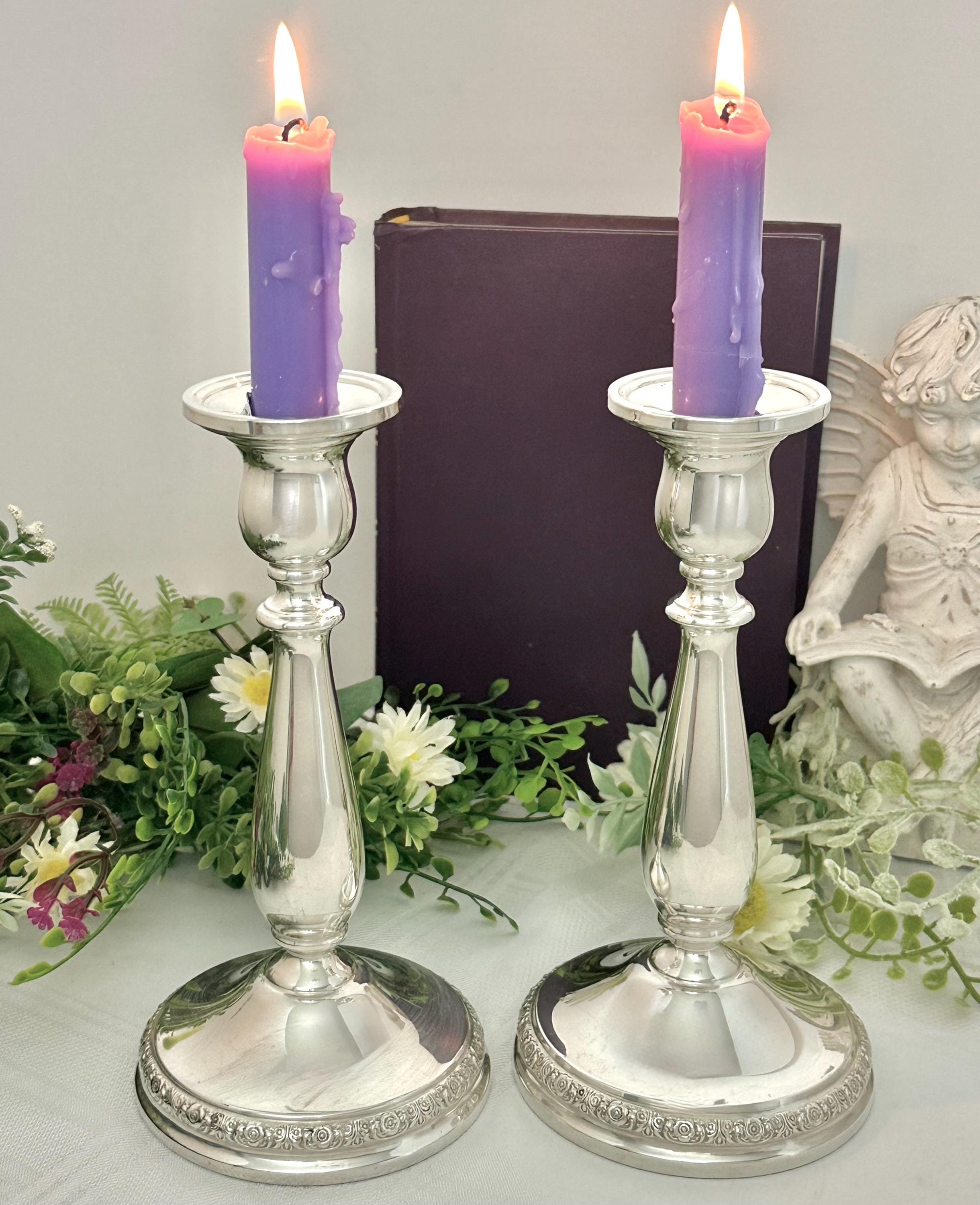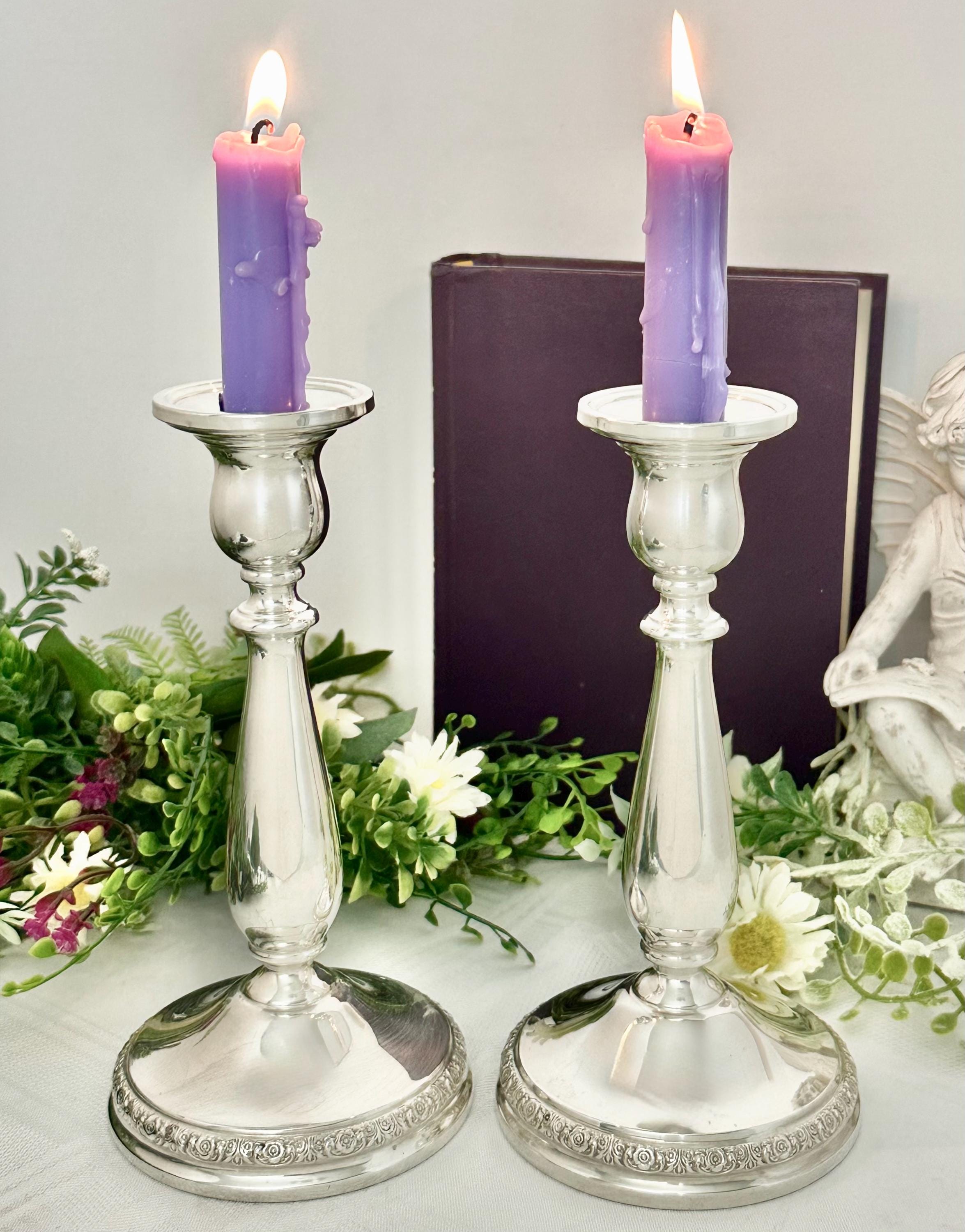 The candlesticks are 7.25 inches tall and have a diameter of 3.75 inches, making them a beautiful and sophisticated addition to any home decor. Perfect for adding a touch of classic charm to any space, these candle holders are both timeless and stylish. These will be polished and ready to use and enjoy for years to come!