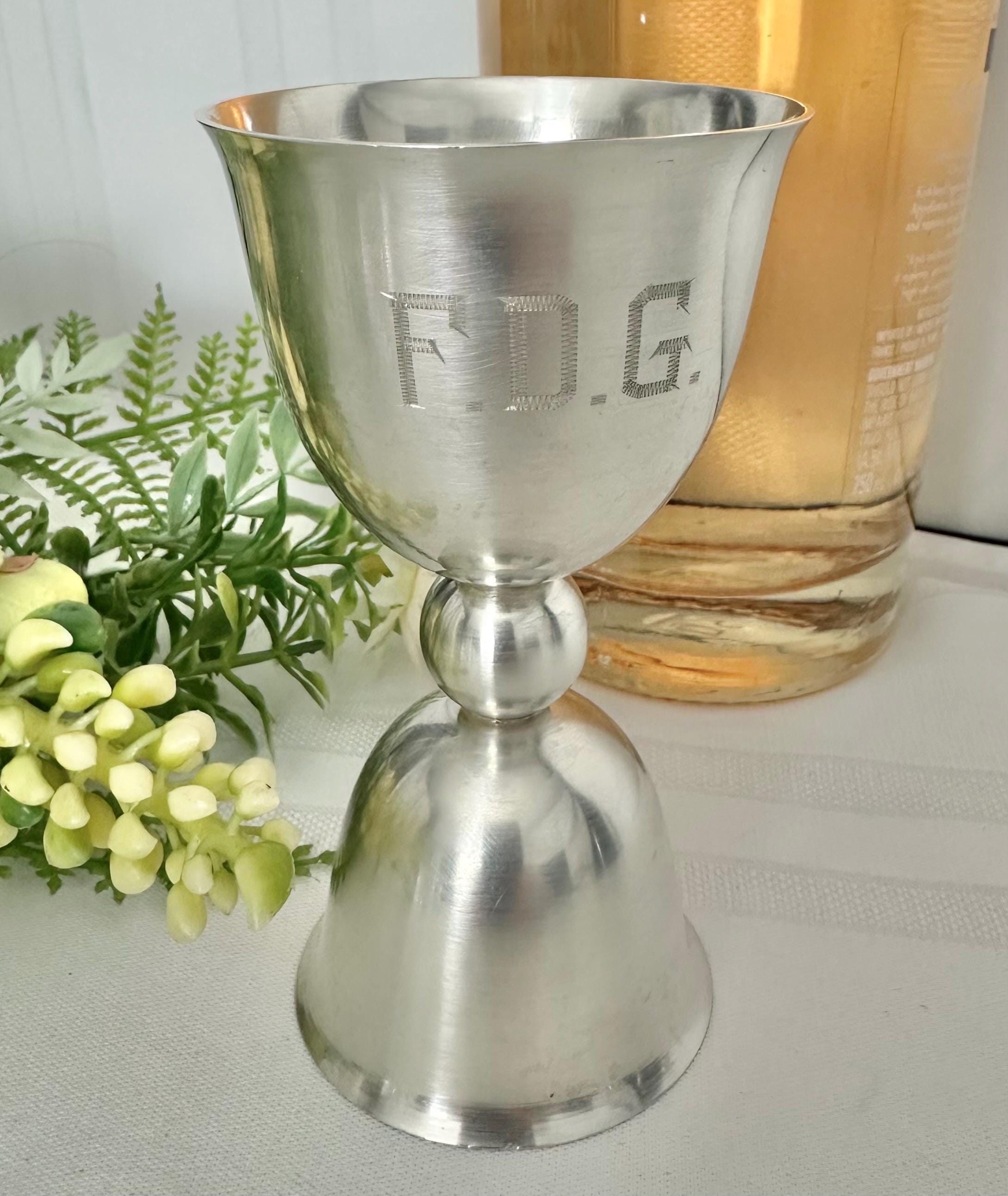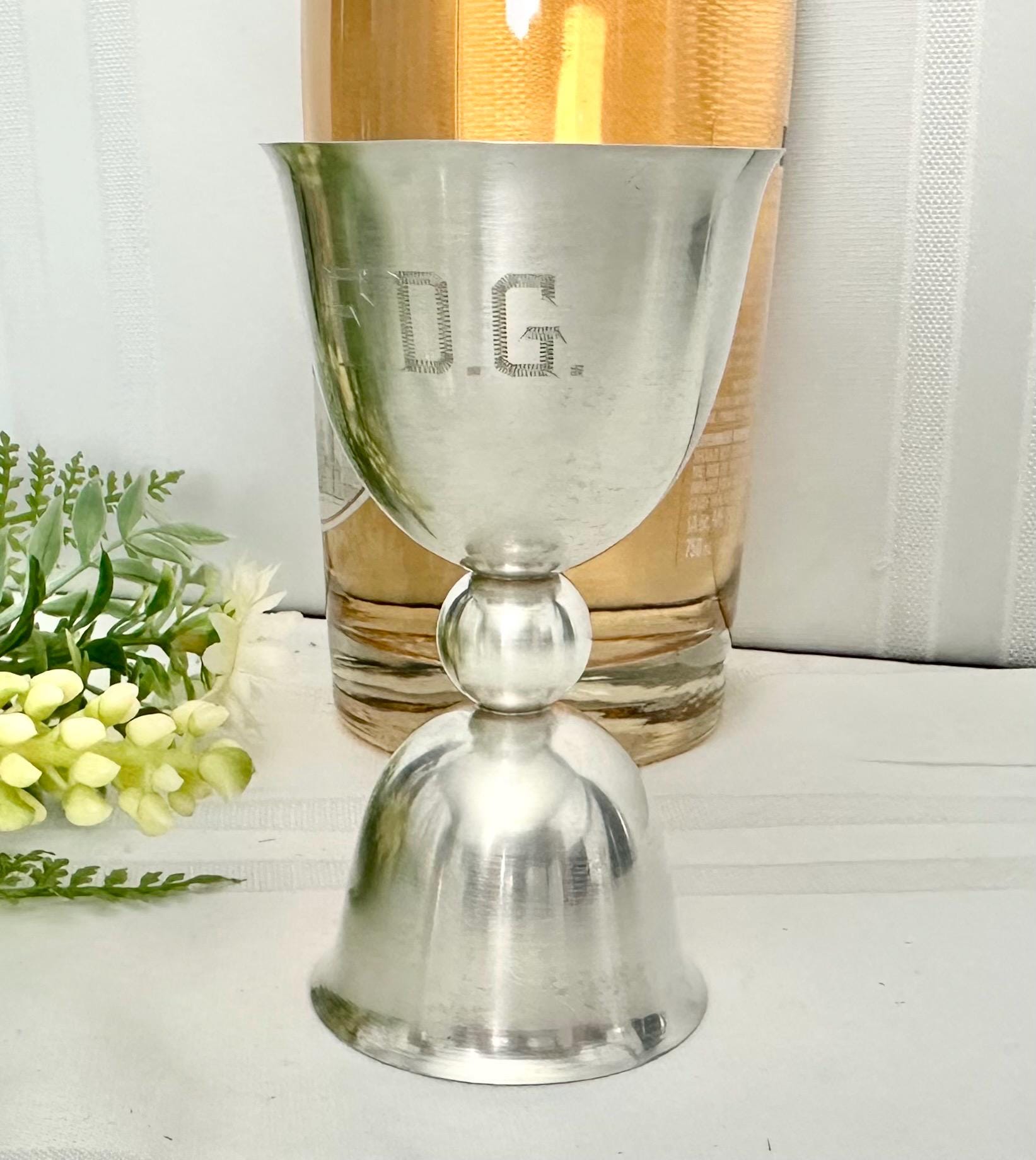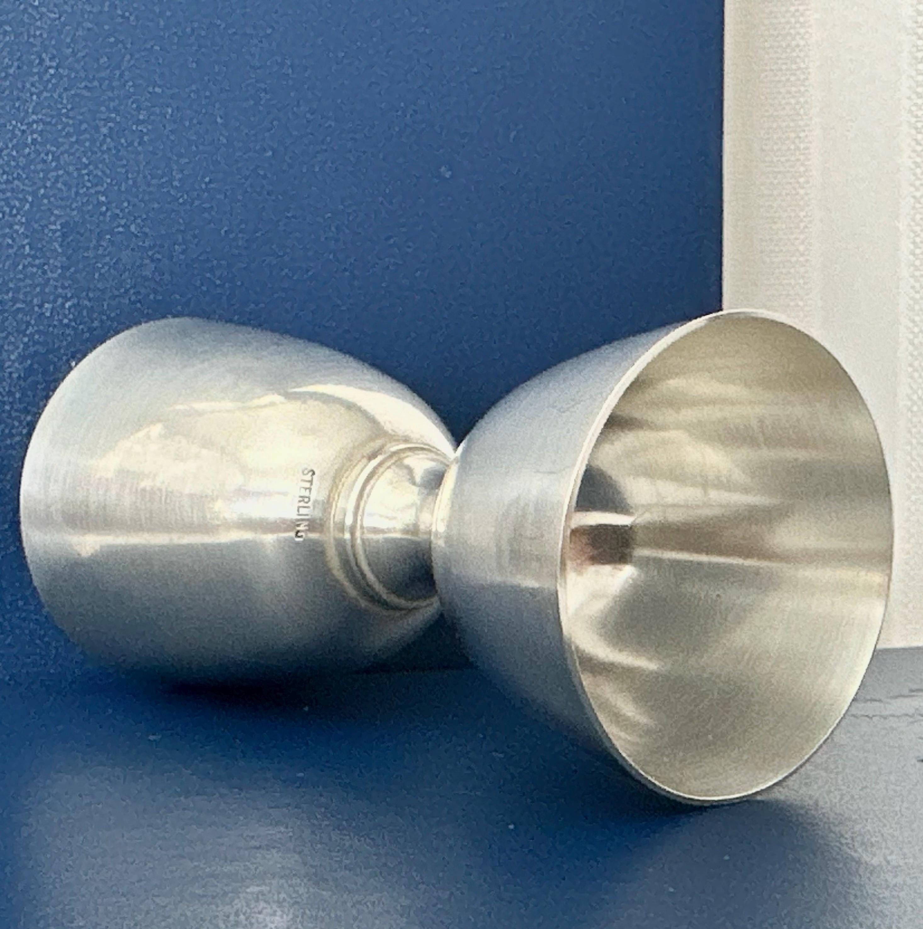 This is for a Vintage Sterling Silver Double Sided Jigger. The bell designs allows for 2 different sized cups for measuring your spirits. One side holds approx 3 Oz and the other holds approx 2 Oz. The maker is Dominick & Haff - 20th century.