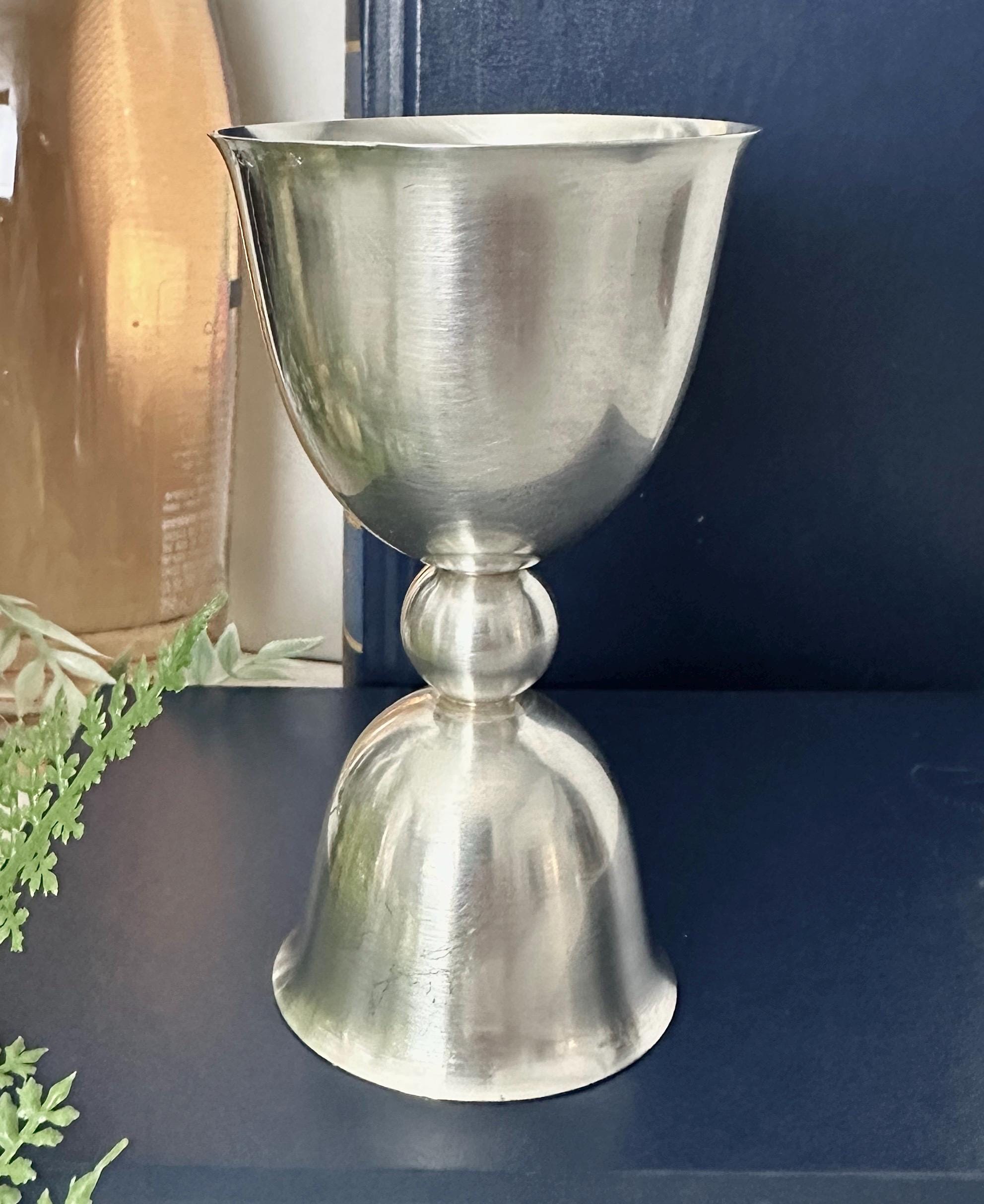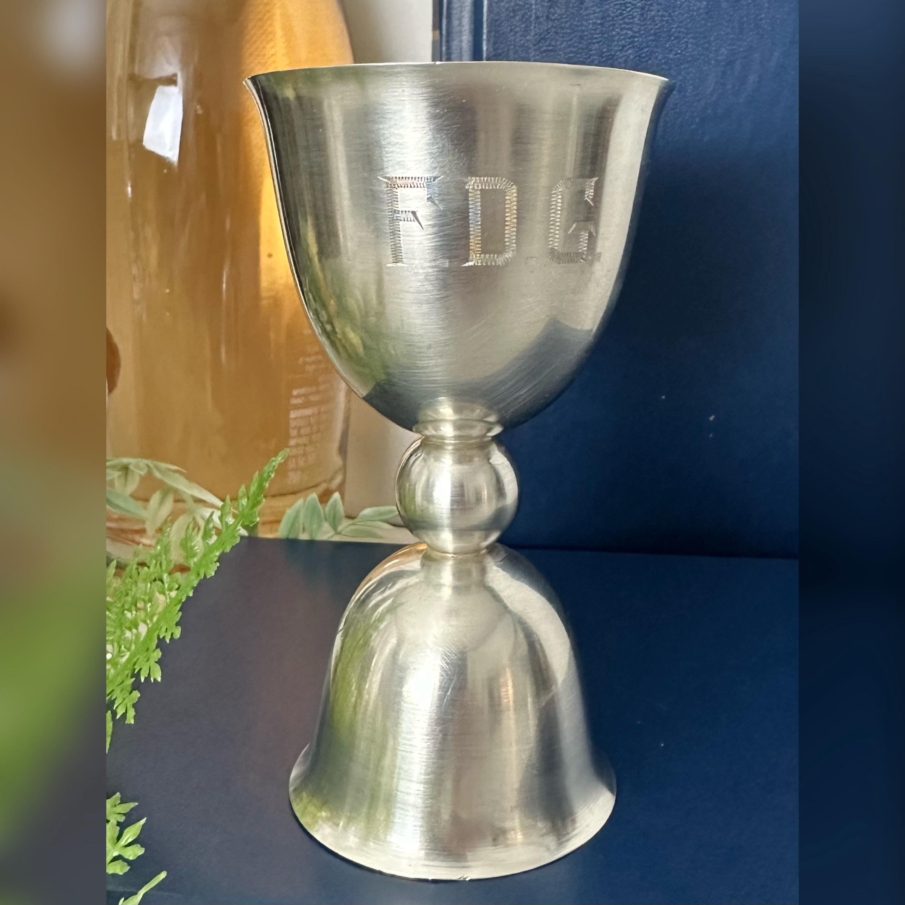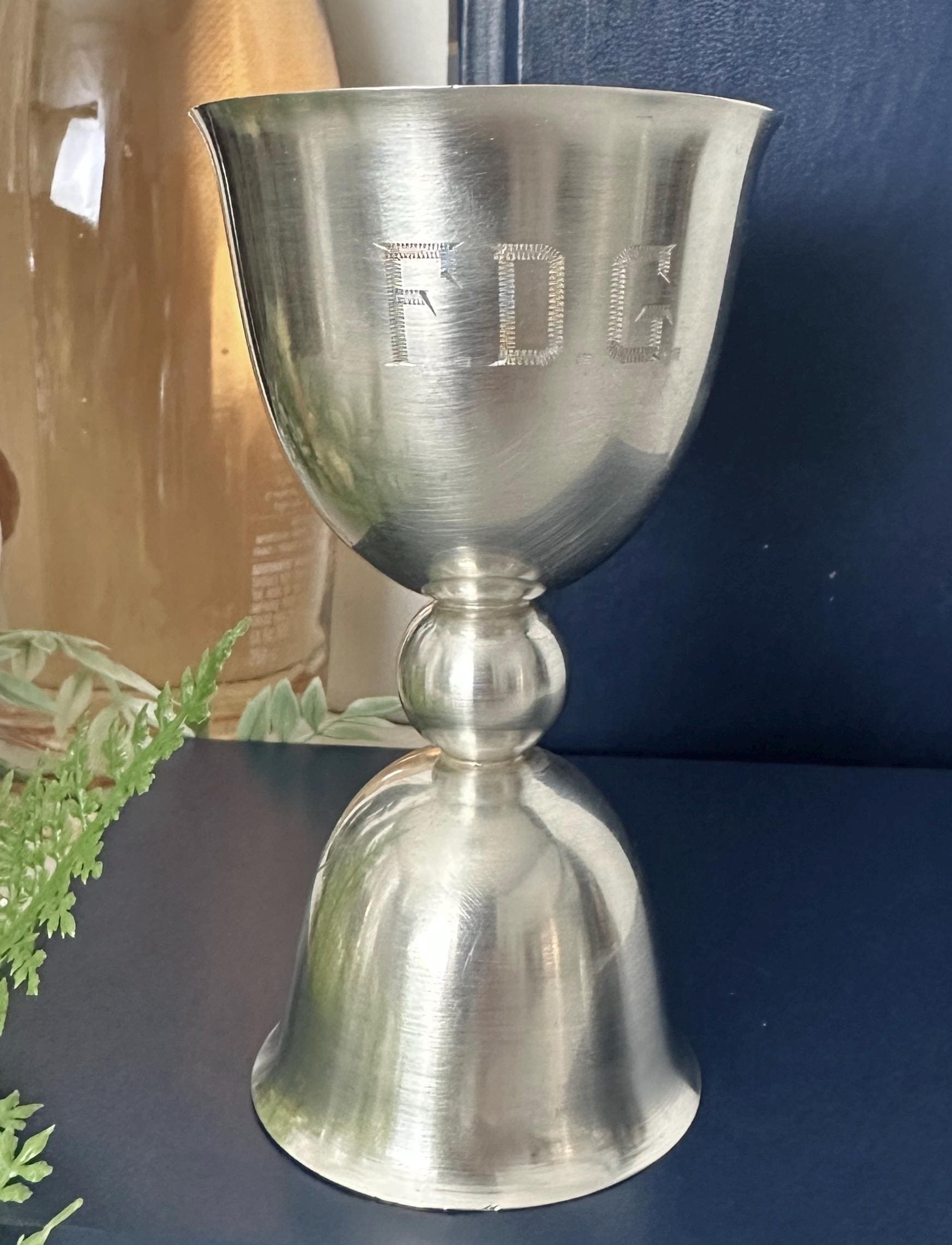 This is for a Vintage Sterling Silver Double Sided Jigger. The bell designs allows for 2 different sized cups for measuring your spirits. One side holds approx 3 Oz and the other holds approx 2 Oz. The maker is Dominick & Haff - 20th century.