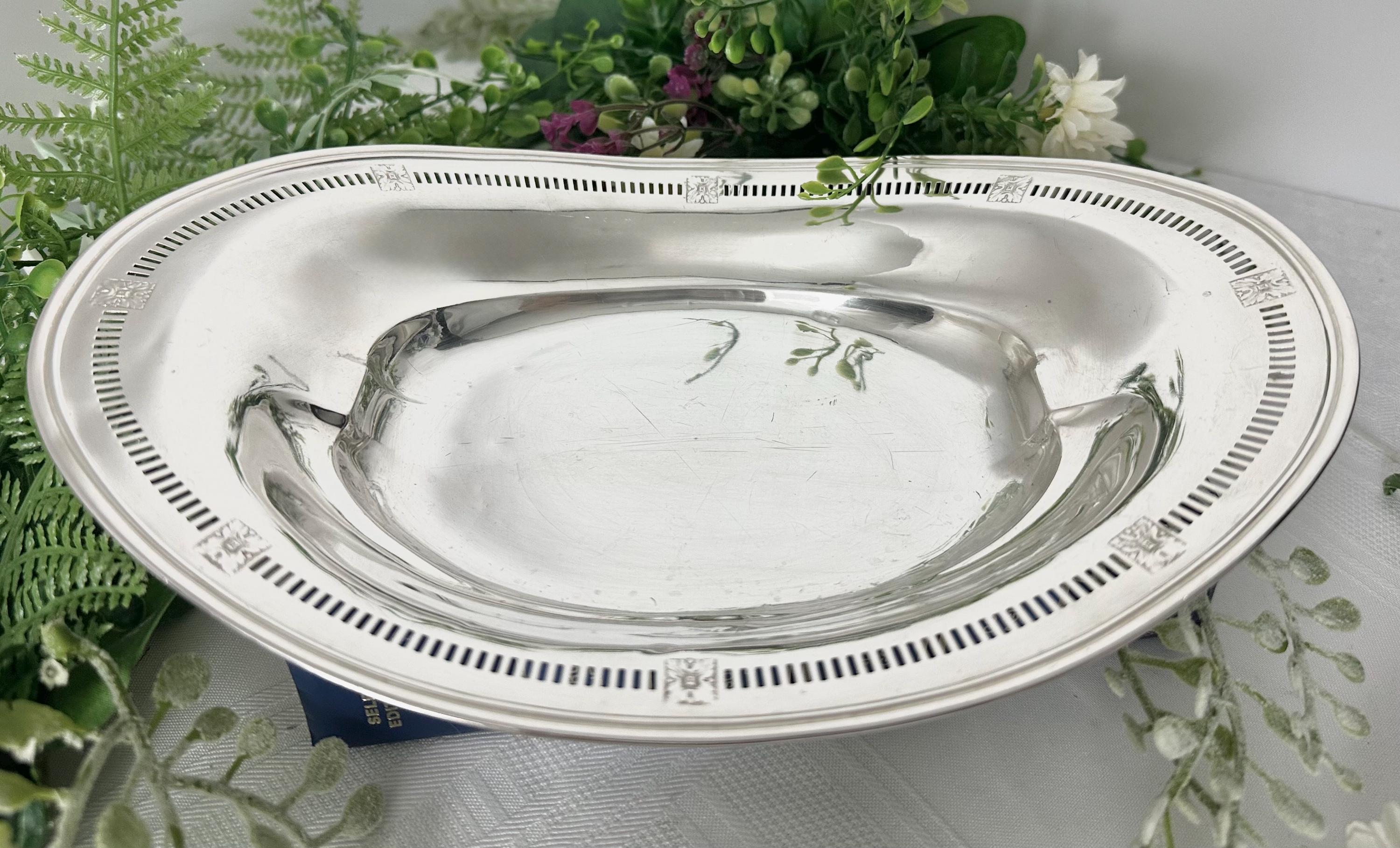 Experience the elegance of the Art Nouveau era with this sterling Bread basket. The silver bowl - bread basket is a beautifully crafted dish boasting a pierced edge pattern that exudes sophistication and timeless design.