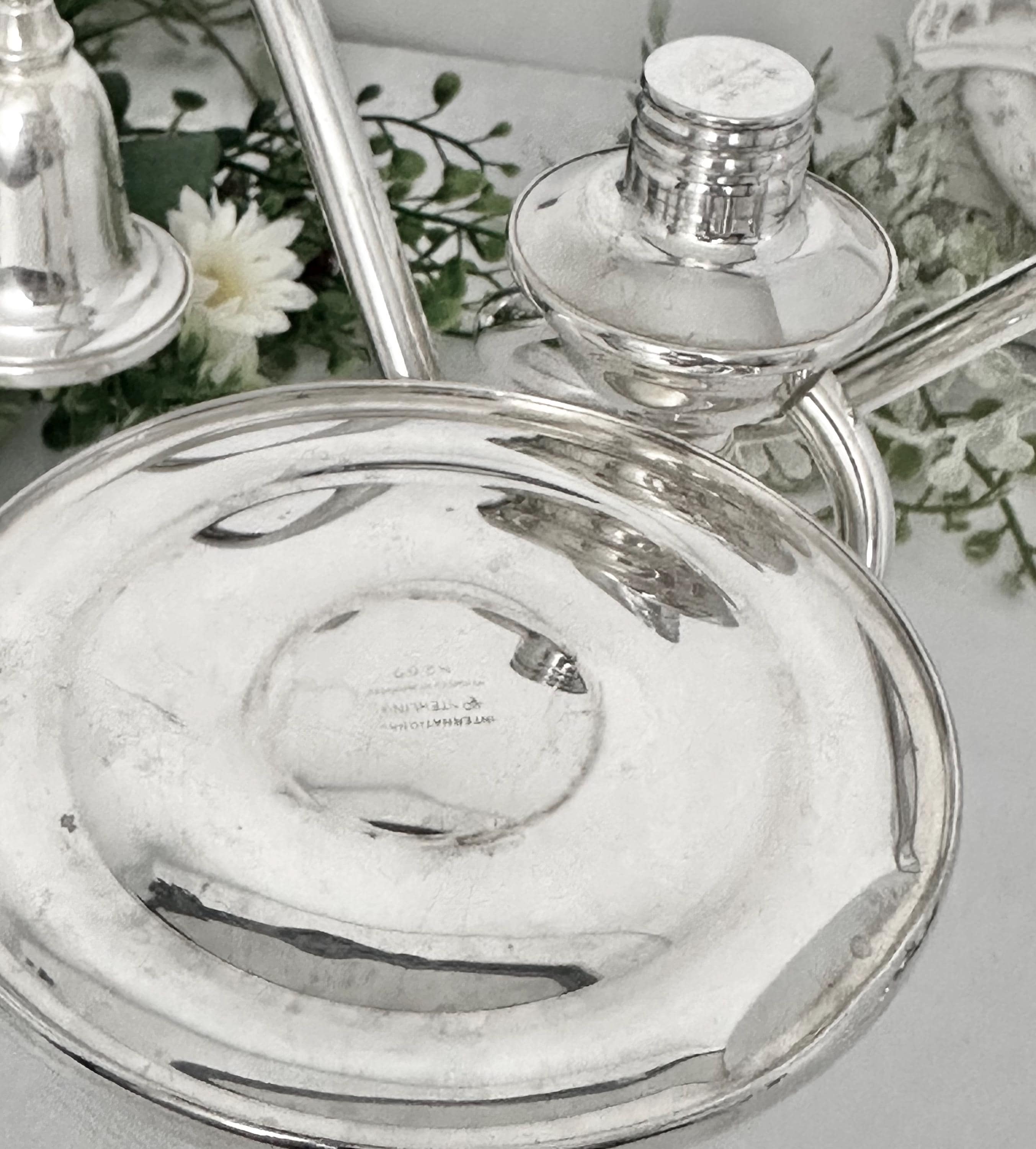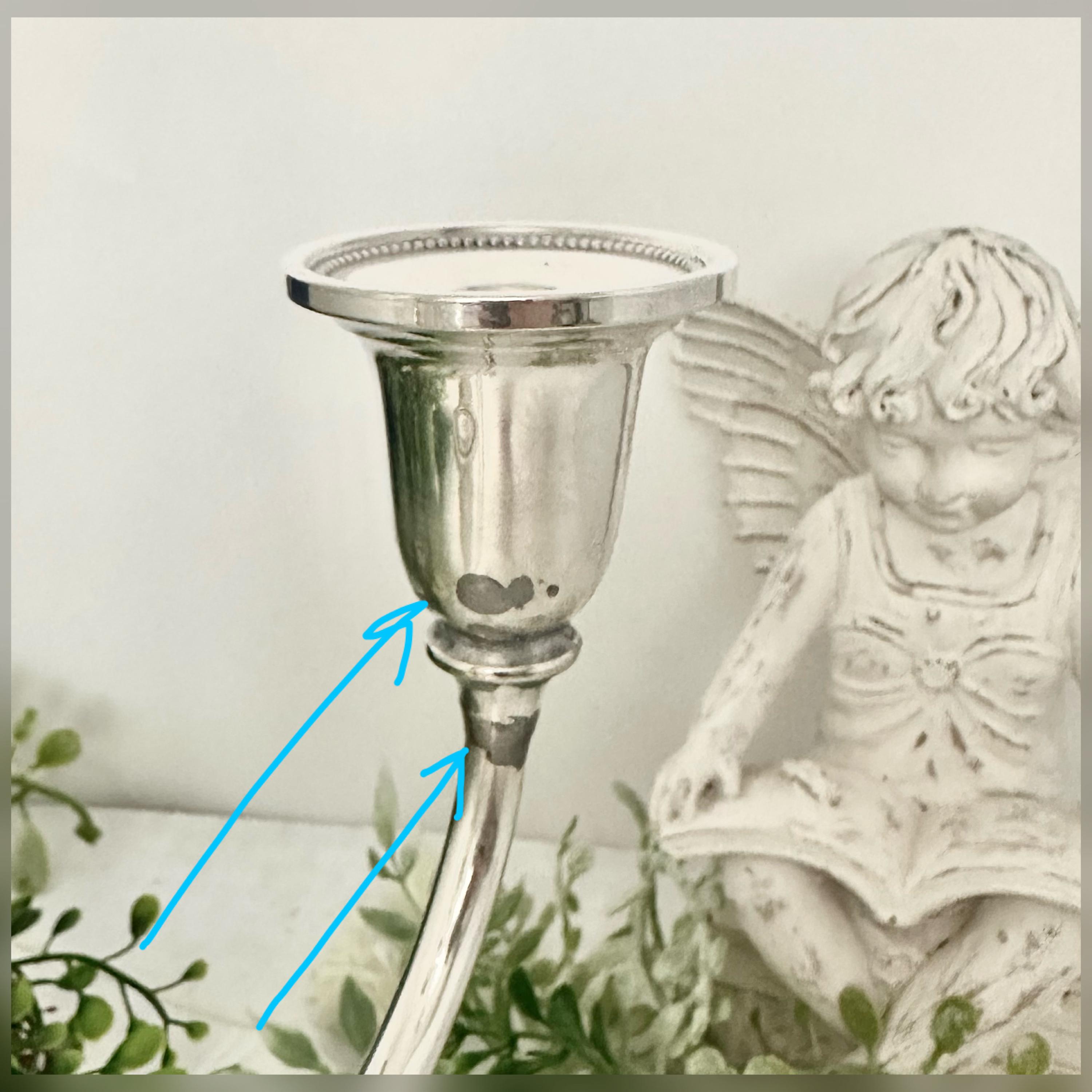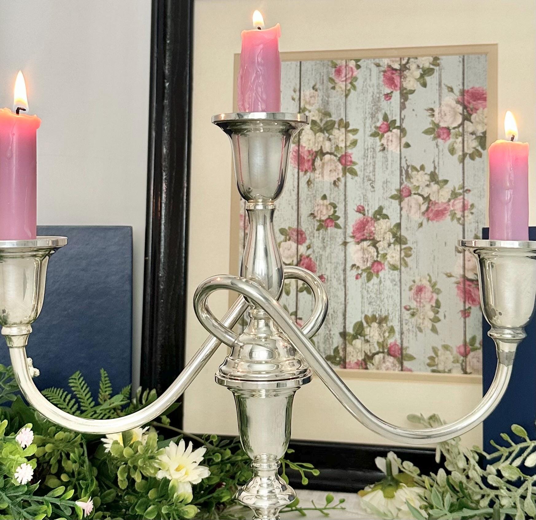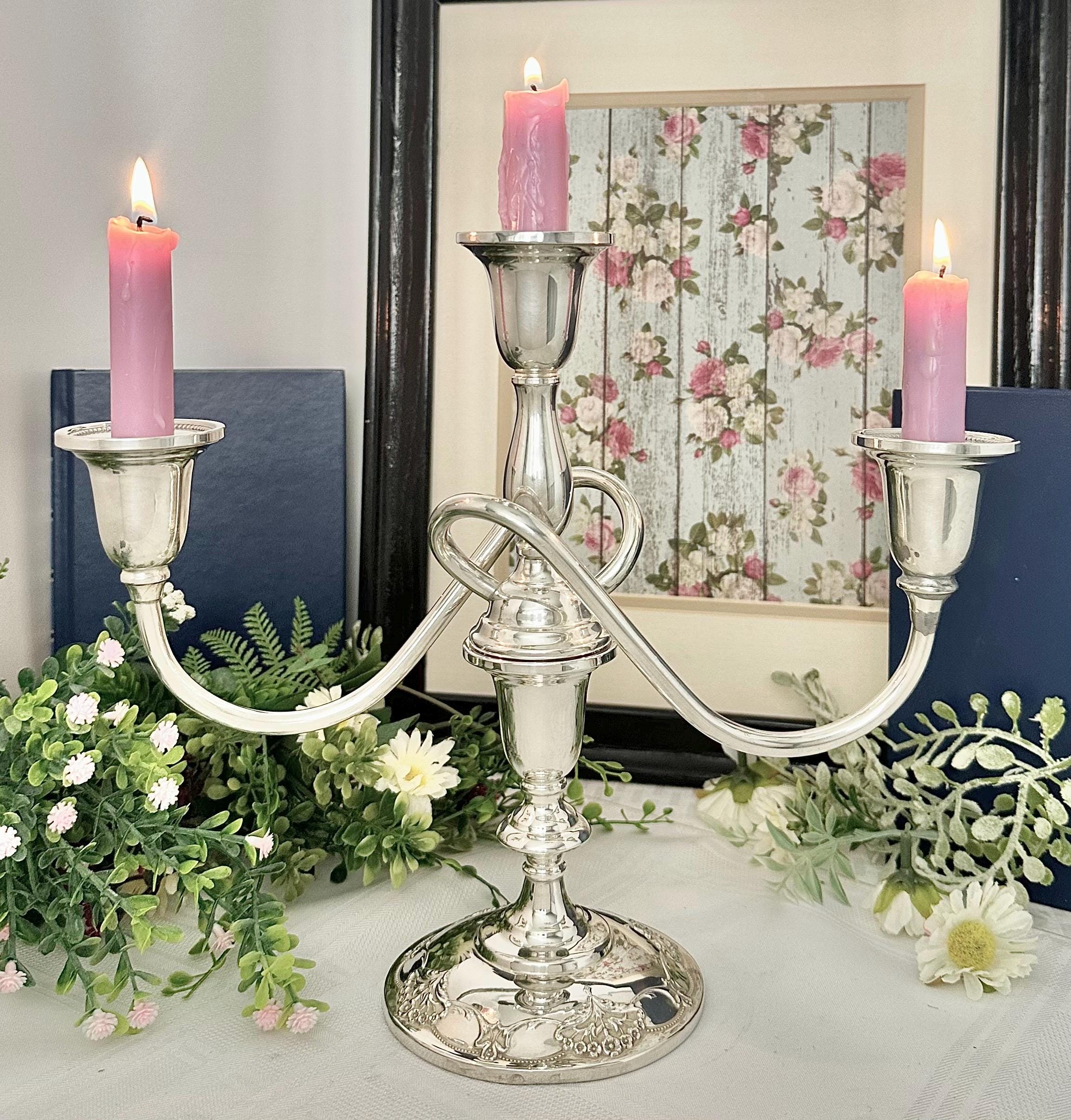 **This is discounted as there is a repair on one of the candle cups, looks as if soldiered together with silver, not a glue. It does not distract from the beauty of the vintage candelabra at all, and is still in wonderful Vintage condition. Please look at the picture with the pen pointed at the repaired spot.