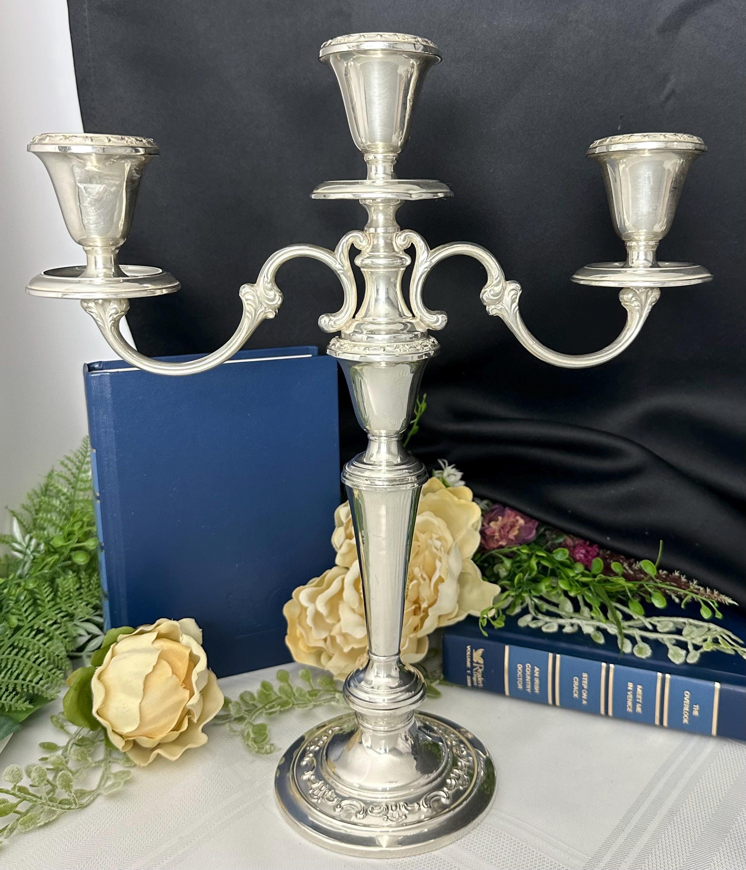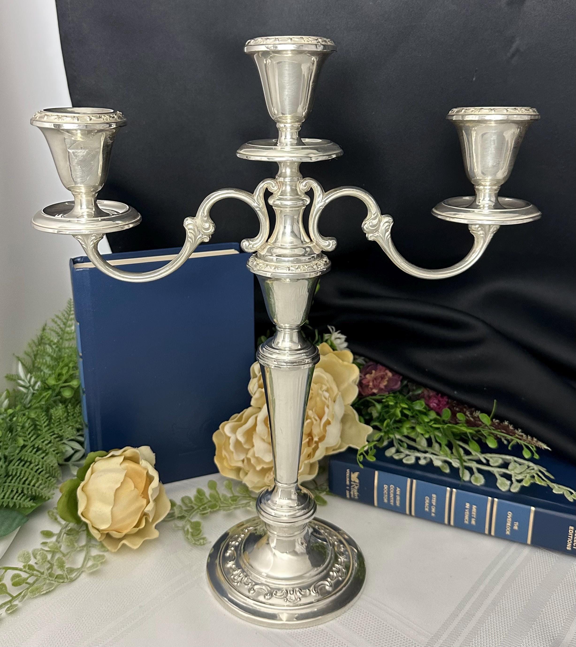 This is for a Vintage Gorham Sterling Strasbourg 3 Arm Silver Candelabra. This is a stunning piece crafted from weighted sterling silver.