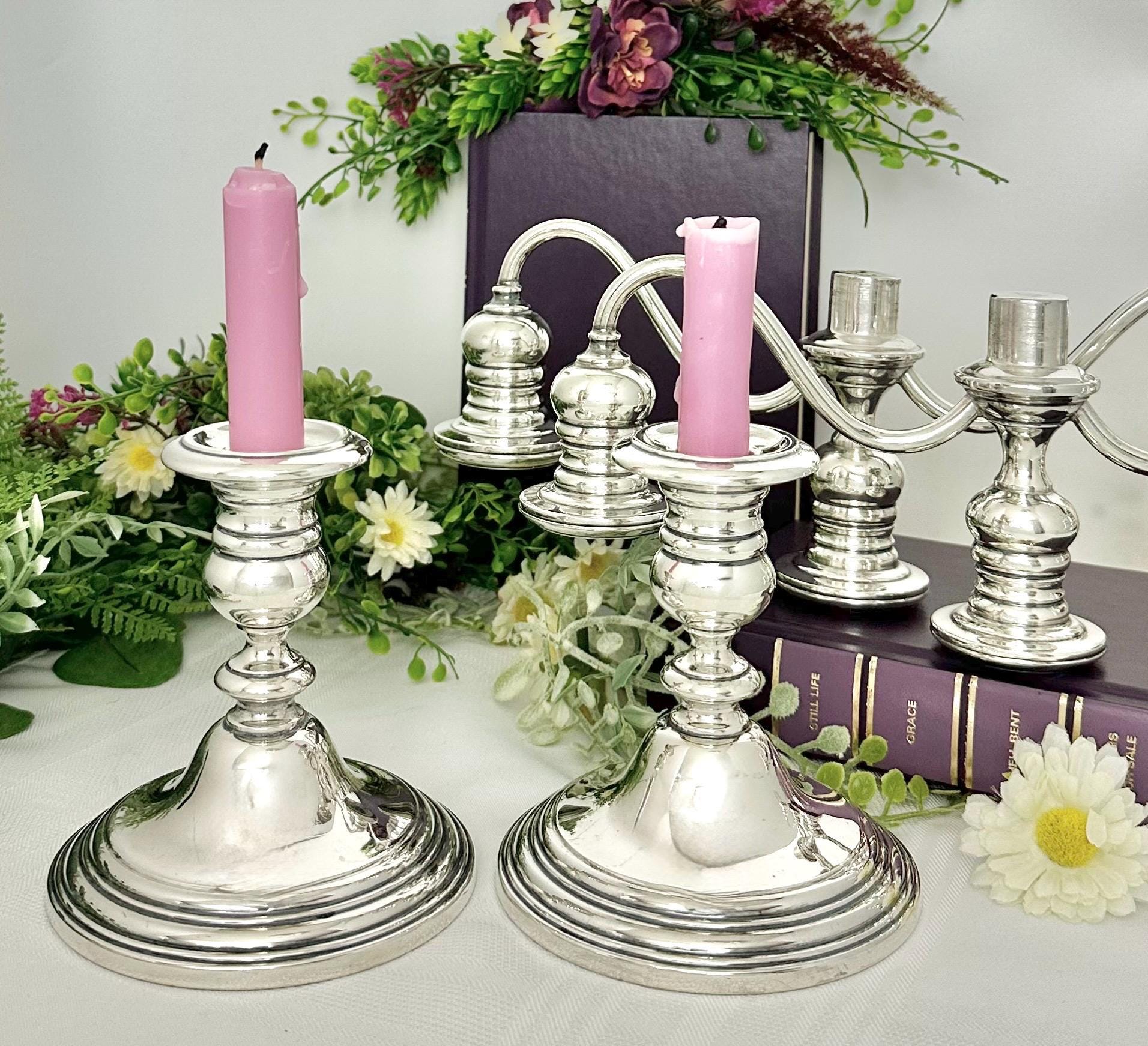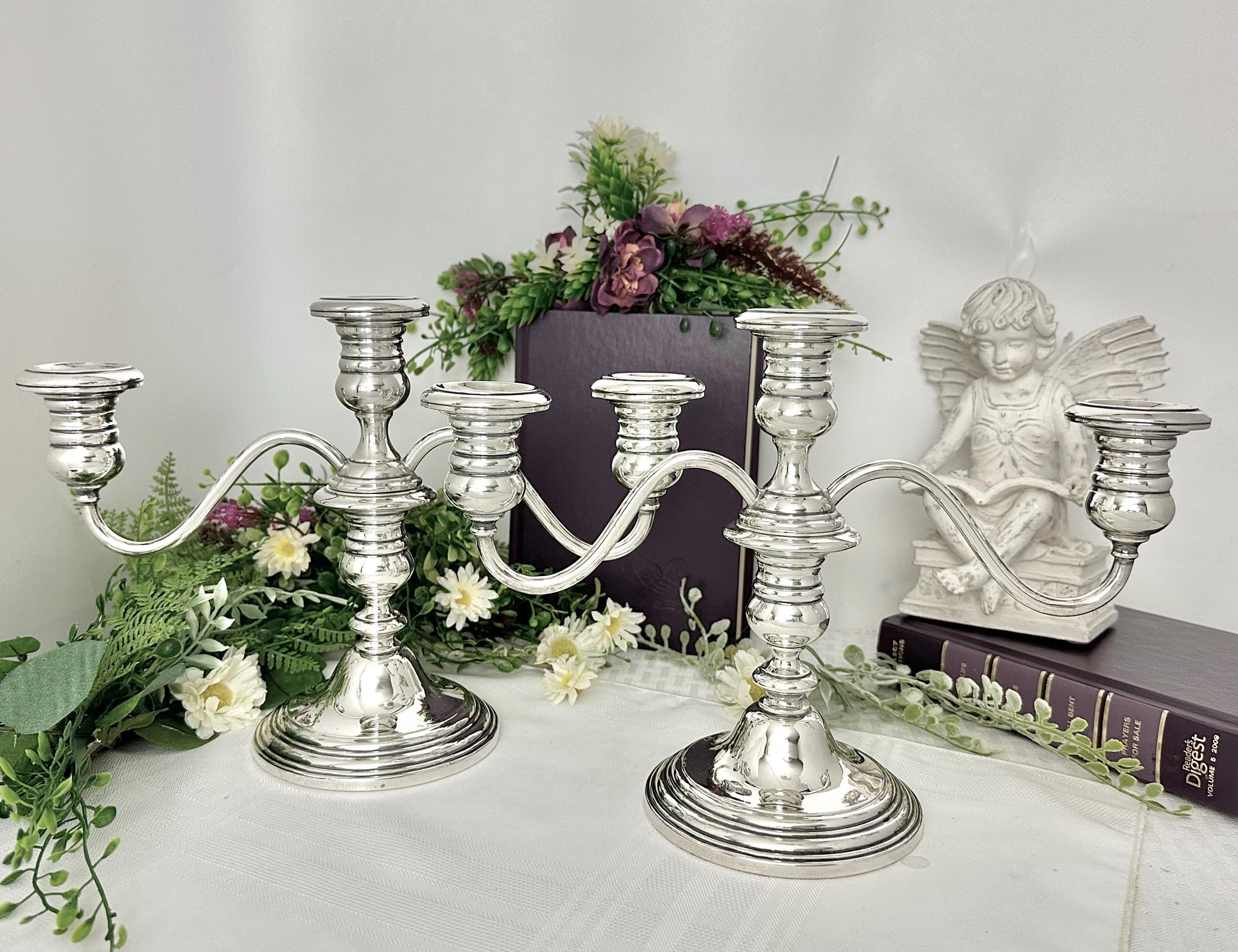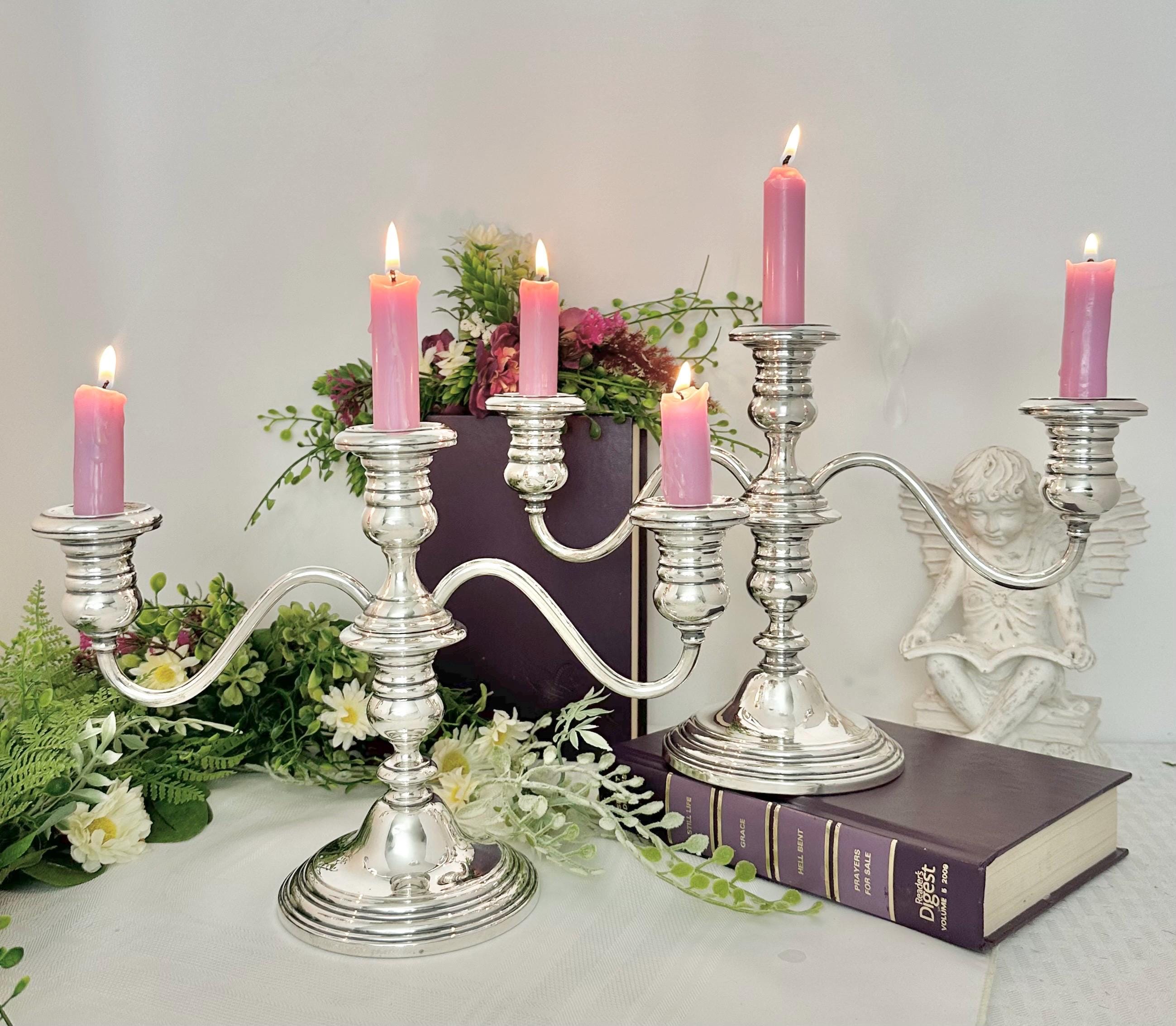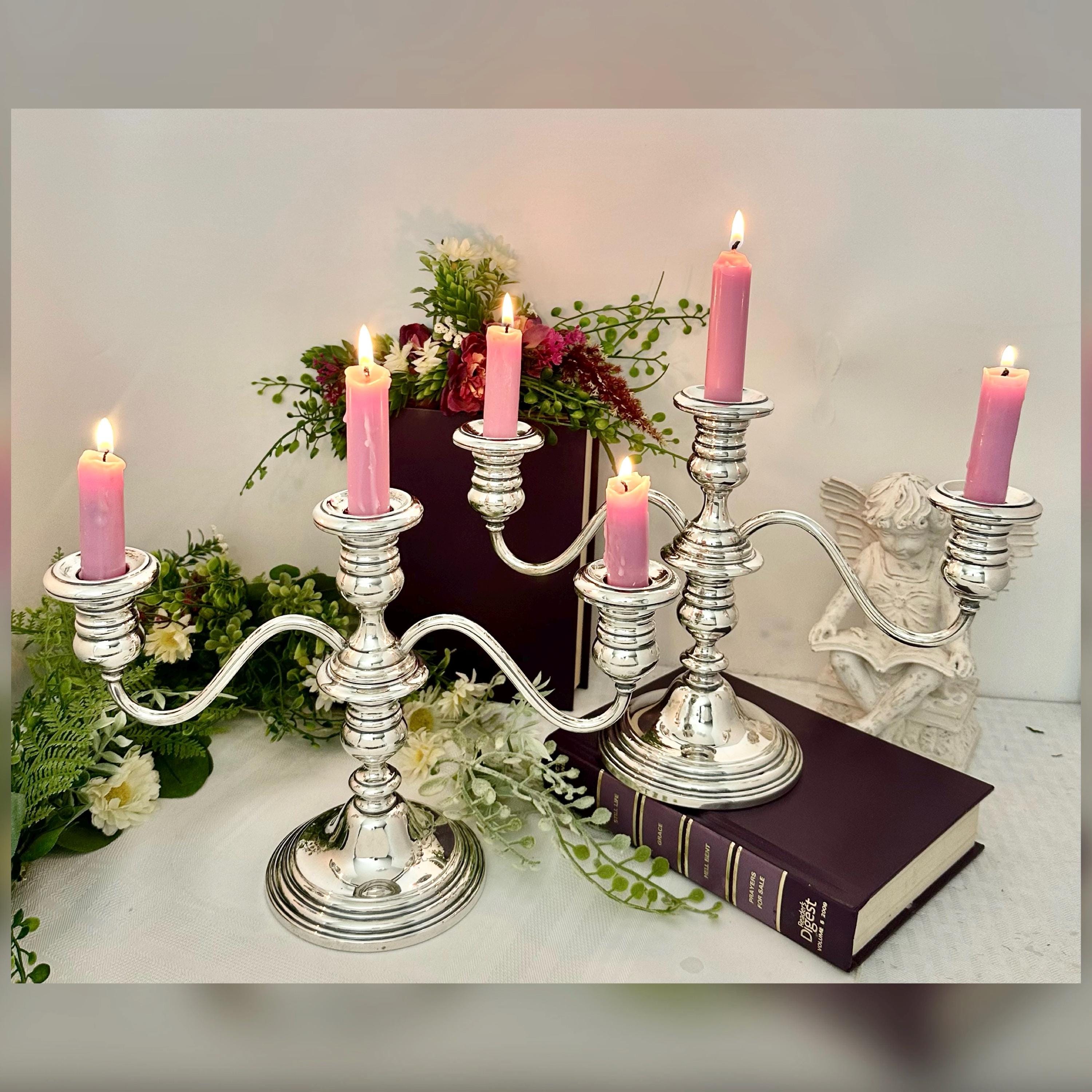 Each candelabra weighs 1596 grams, making them a substantial and luxurious addition to any home decor. Perfect for holding dinner / taper candles, these candelabras can be used to create a warm and elegant ambiance in any room.