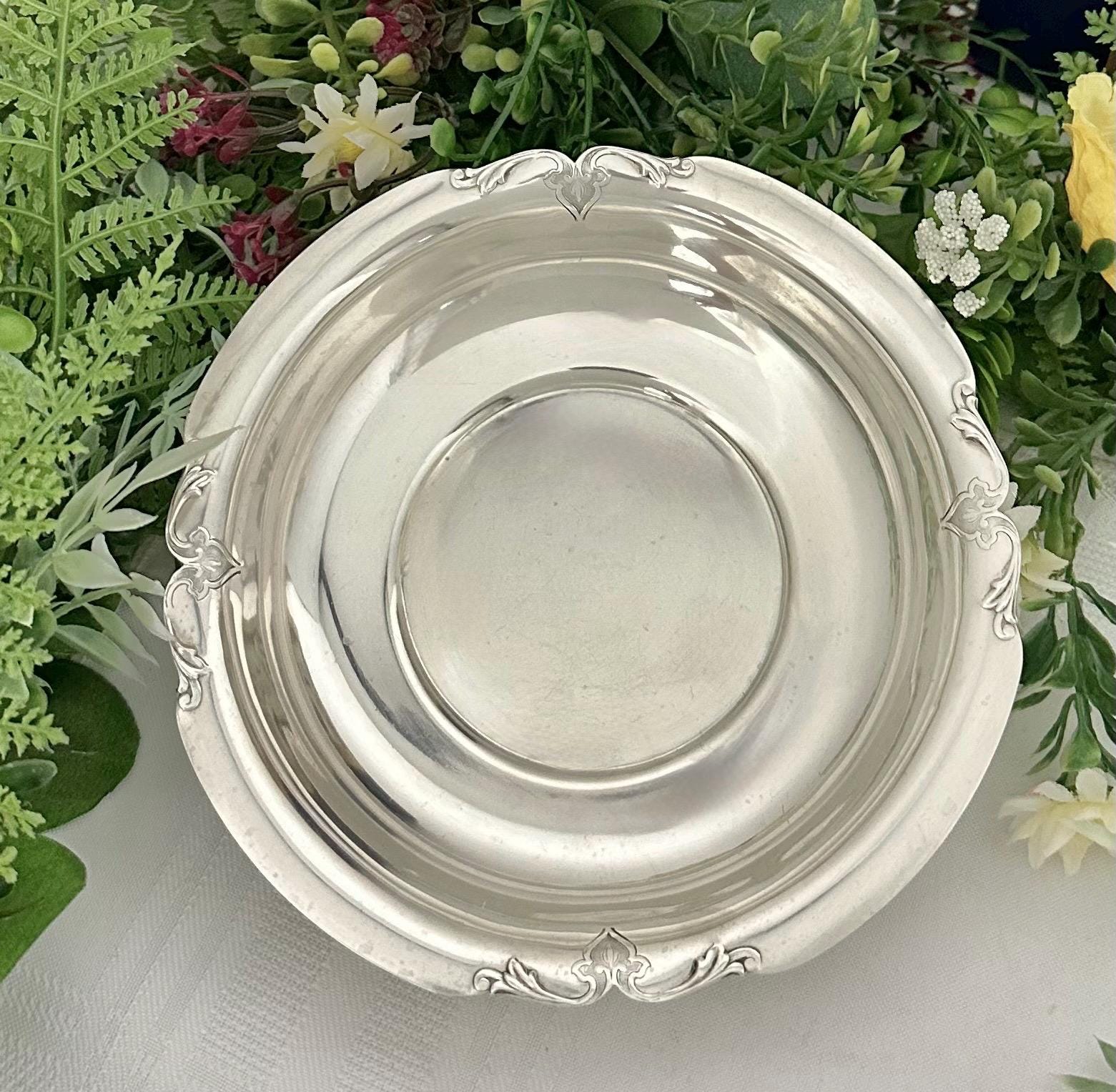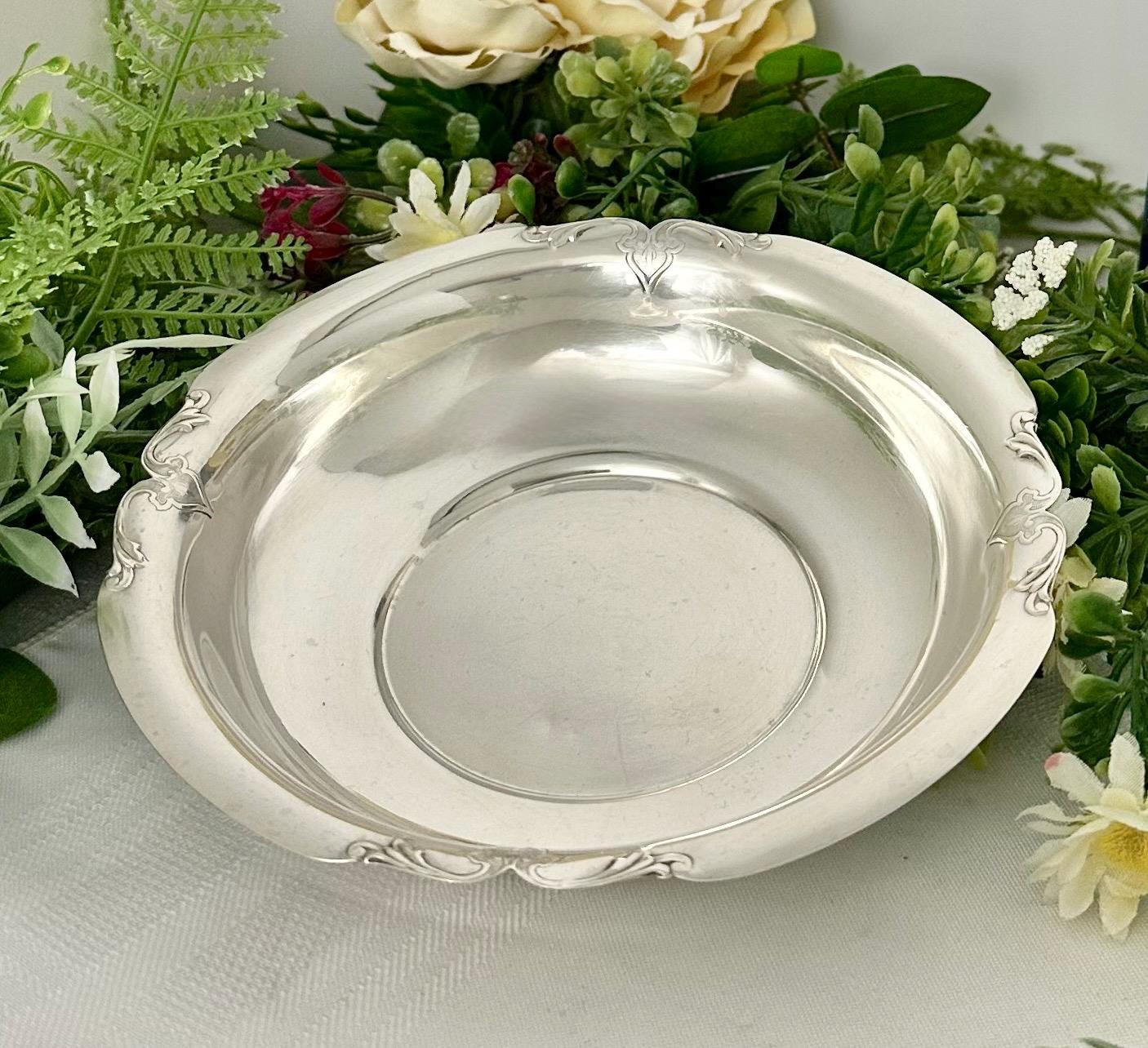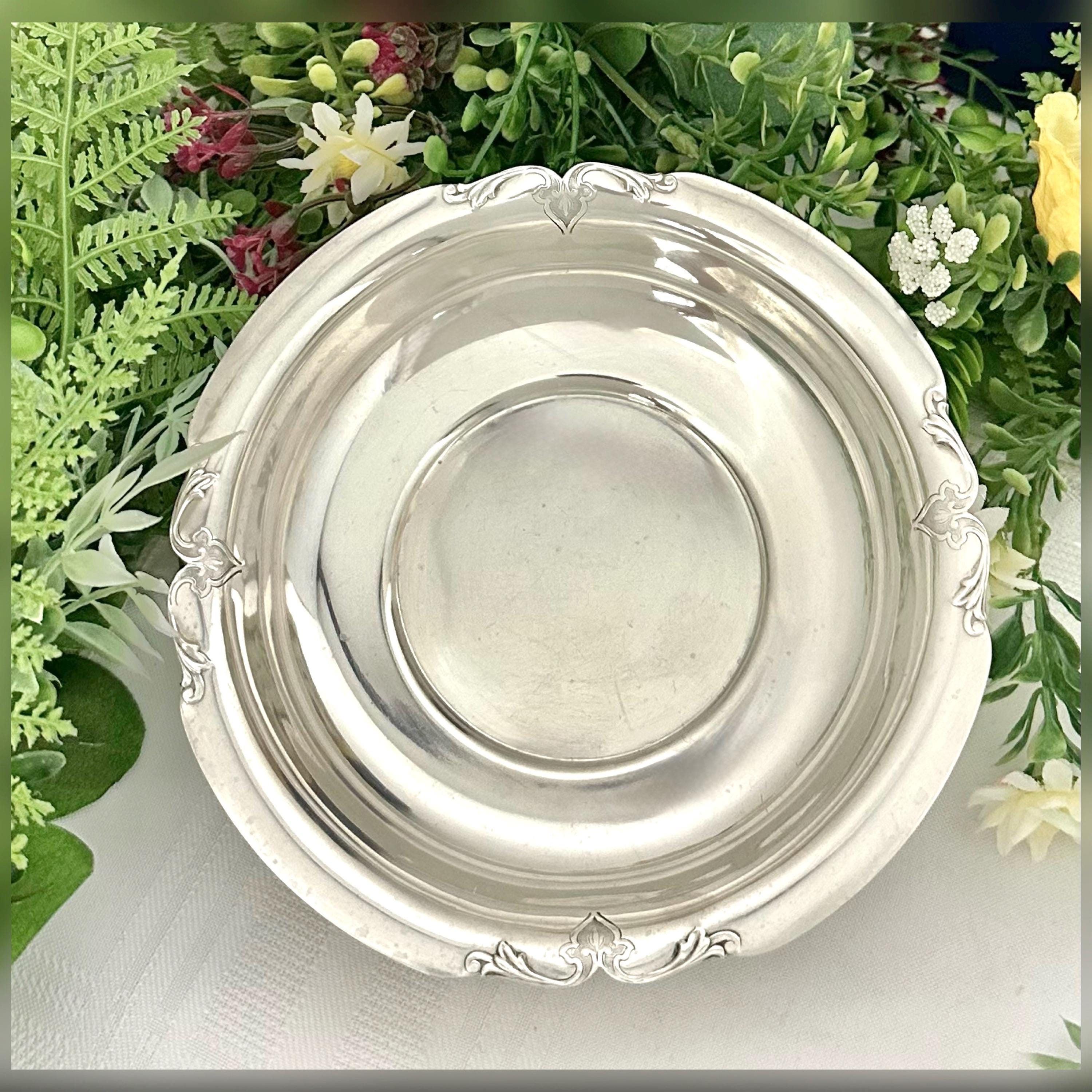 This antique piece adds a touch of luxury and sophistication to any room or dining table, making it a beautiful and practical addition to any collection. There are a few couple pin dents in the bottom of the bowl. Better than Typical age condition.