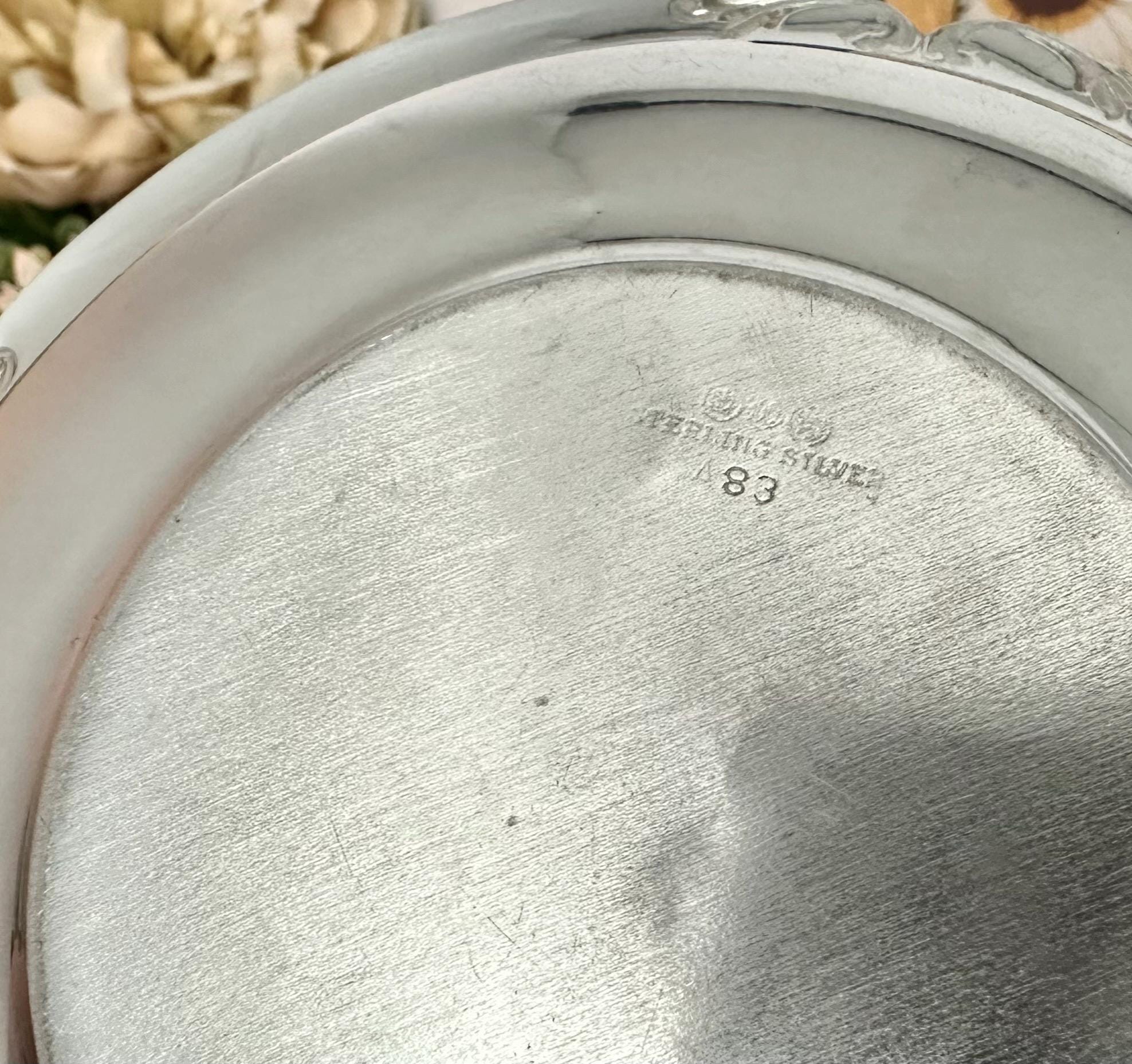 The sterling silver bon bon Bowl is a candy dish made of high-quality sterling silver (.925). The intricate pattern A83 gives it a unique and elegant design, perfect for serving candies with style, holding trinkets to even coins. The bowl measures: