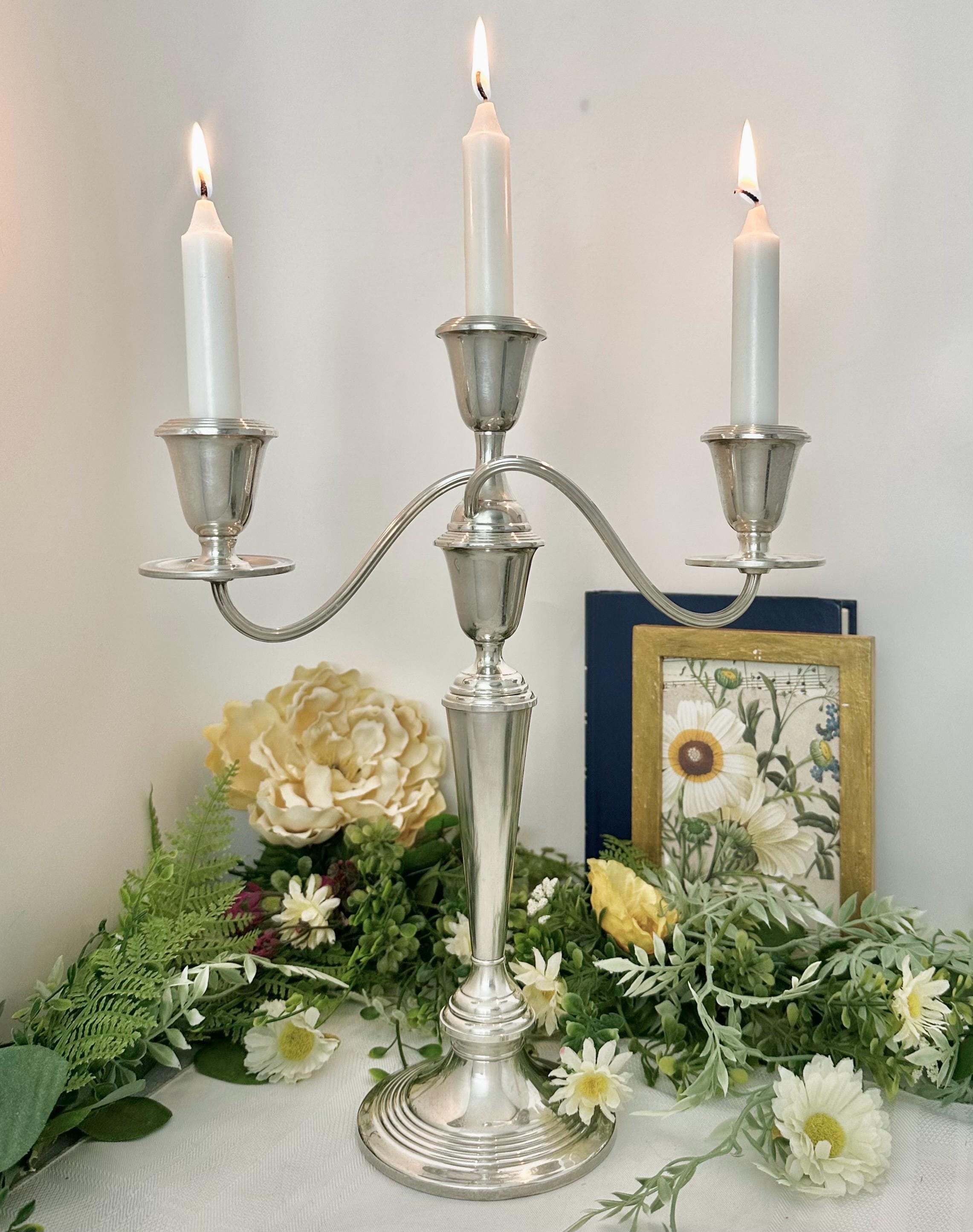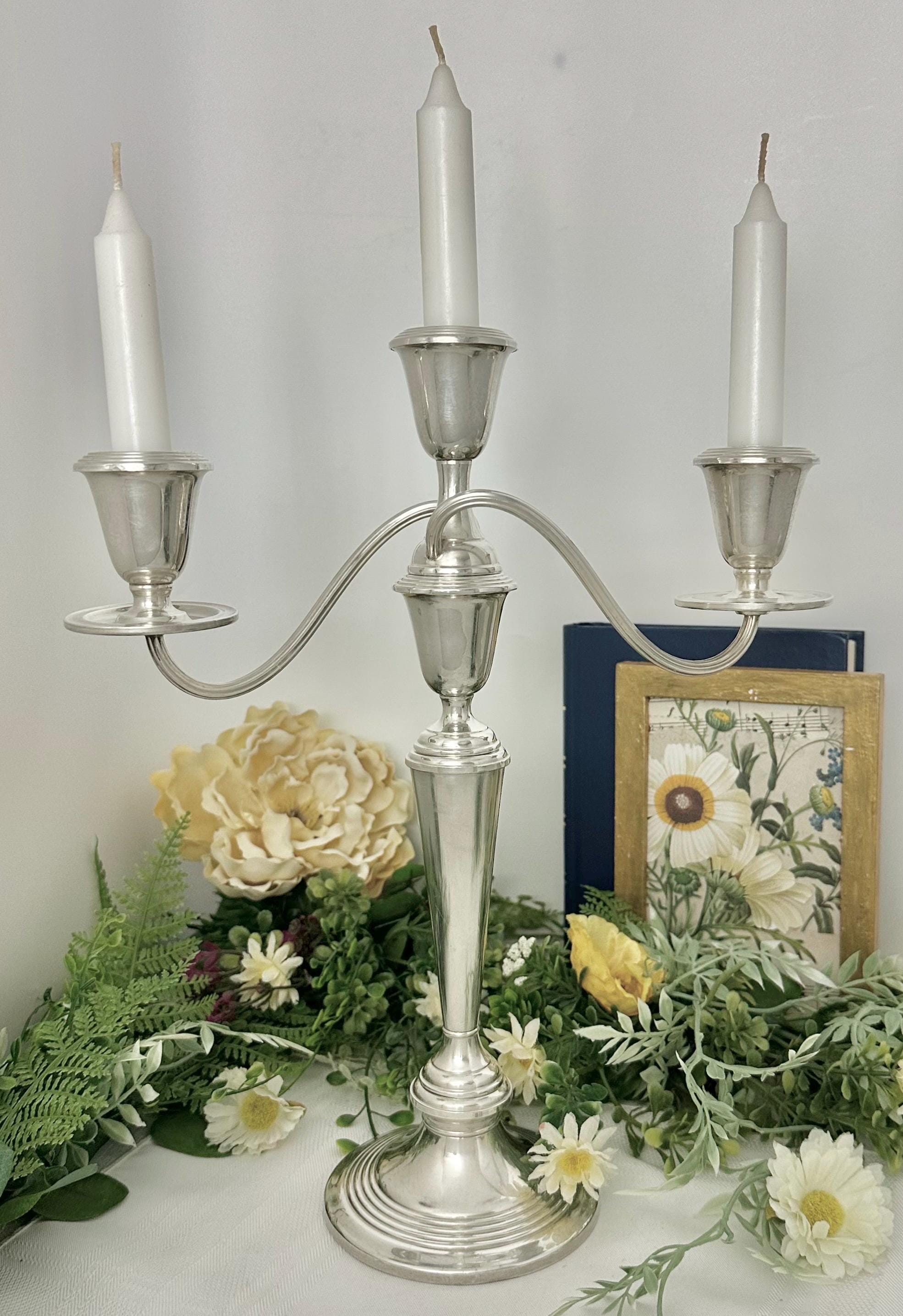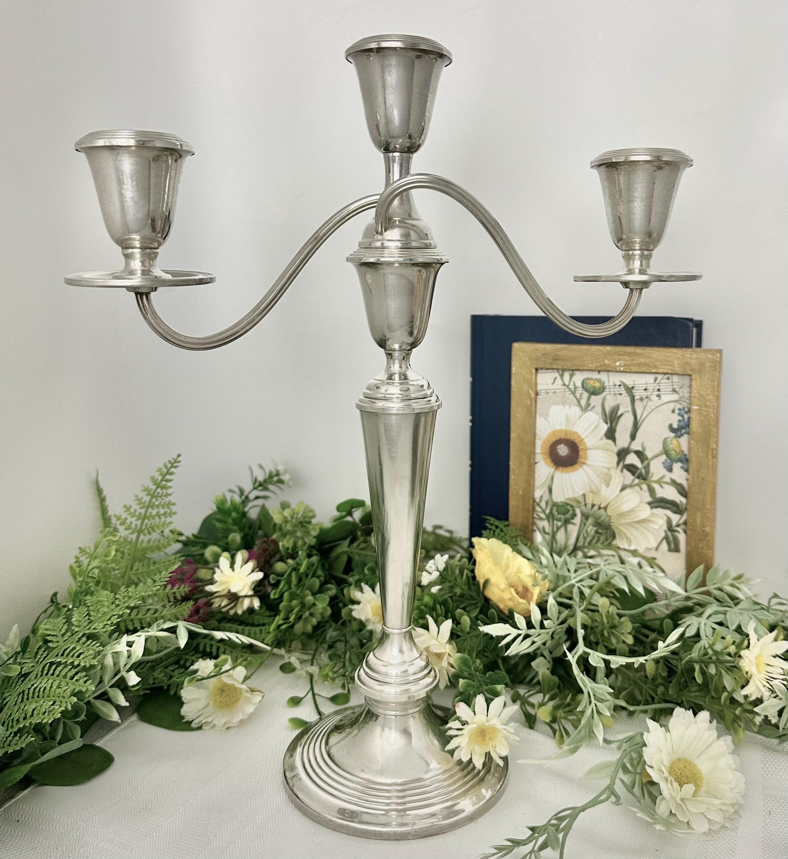 This is for a vintage Sterling Silver Candelabra. This is a stunning 3 arm candle holder with a traditional style with twisted arms and side candle cups. The candelabra is made of high-quality .925 Sterling Silver and weighs 861 grams. The makers name is unreadable but states weighted / reinforced and pattern number of 17219. I believe this was made by Gorham in the Newport pattern and made for a jewelry store