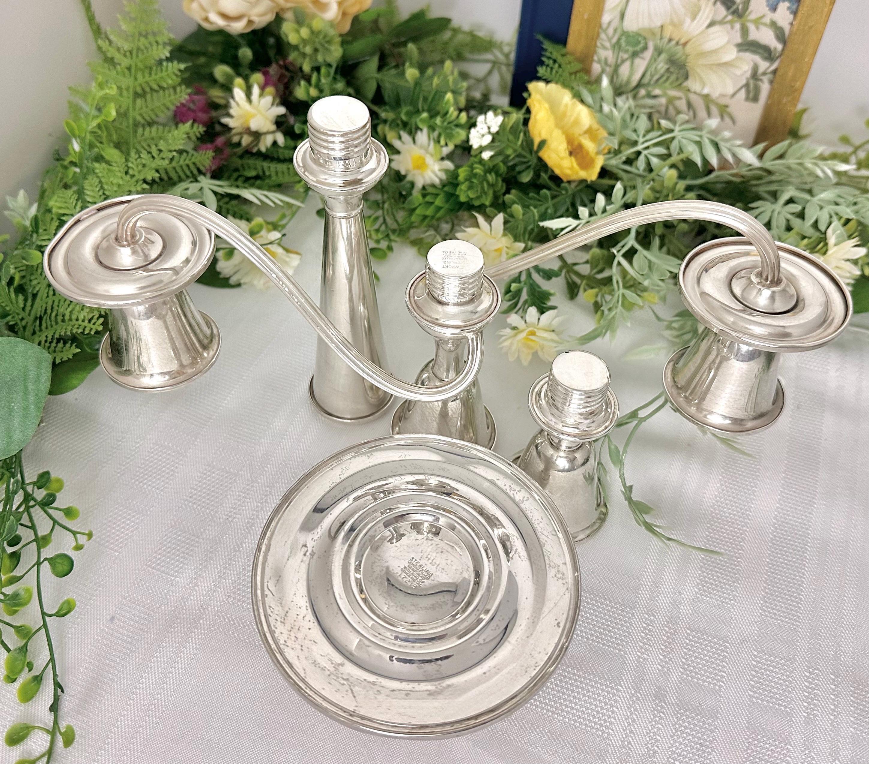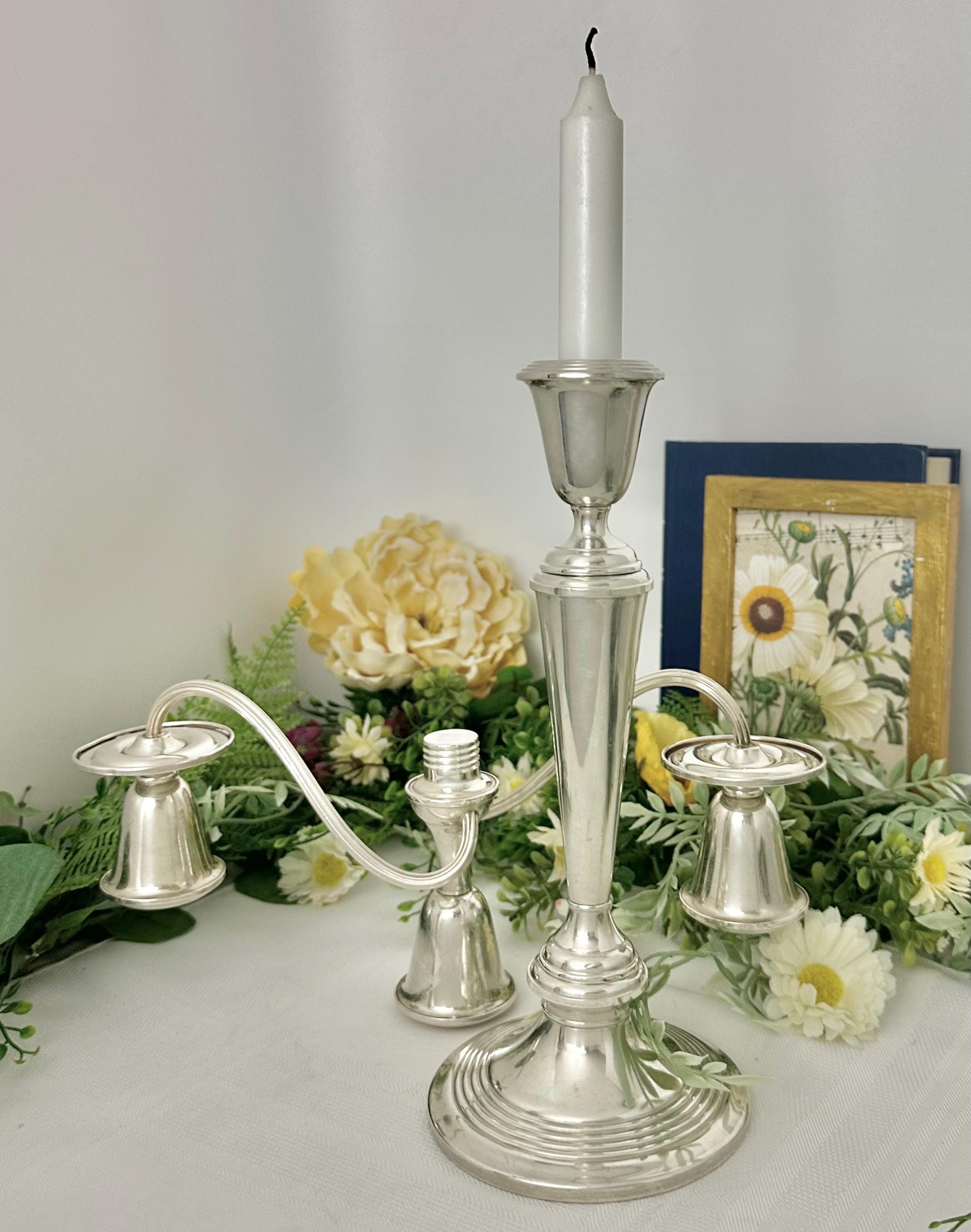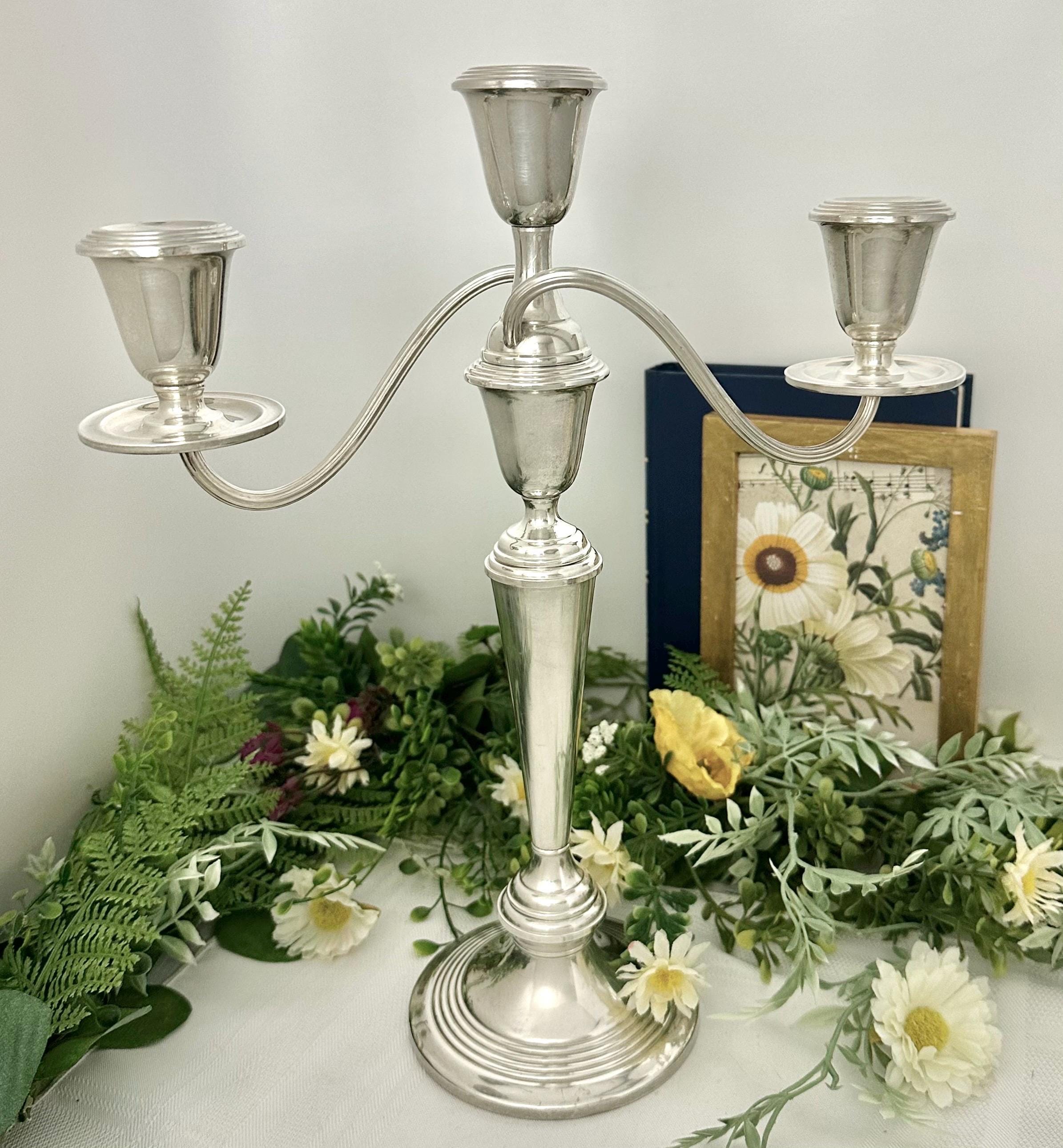 This is for a vintage Sterling Silver Candelabra. This is a stunning 3 arm candle holder with a traditional style with twisted arms and side candle cups. The candelabra is made of high-quality .925 Sterling Silver and weighs 861 grams. The makers name is unreadable but states weighted / reinforced and pattern number of 17219. I believe this was made by Gorham in the Newport pattern and made for a jewelry store