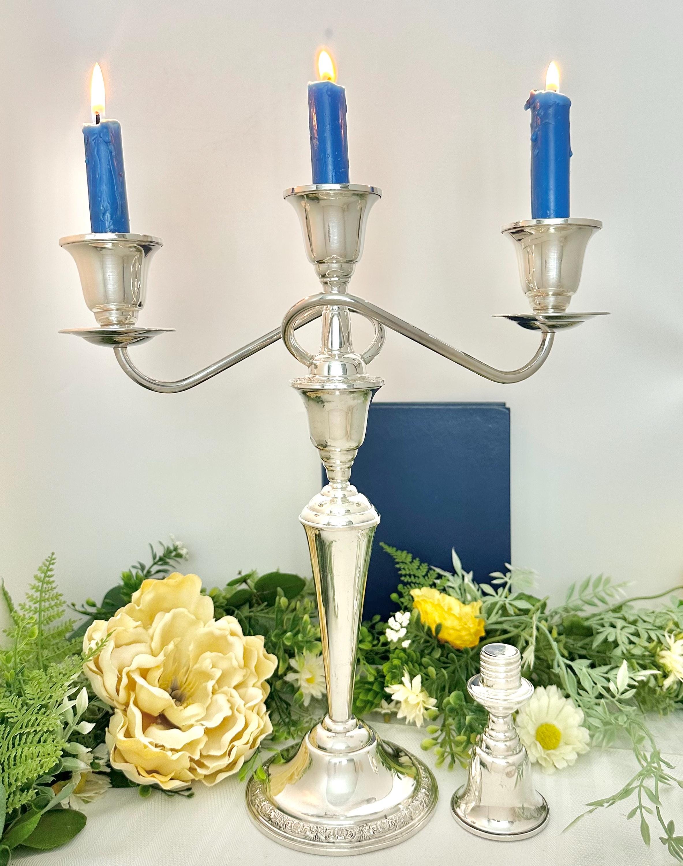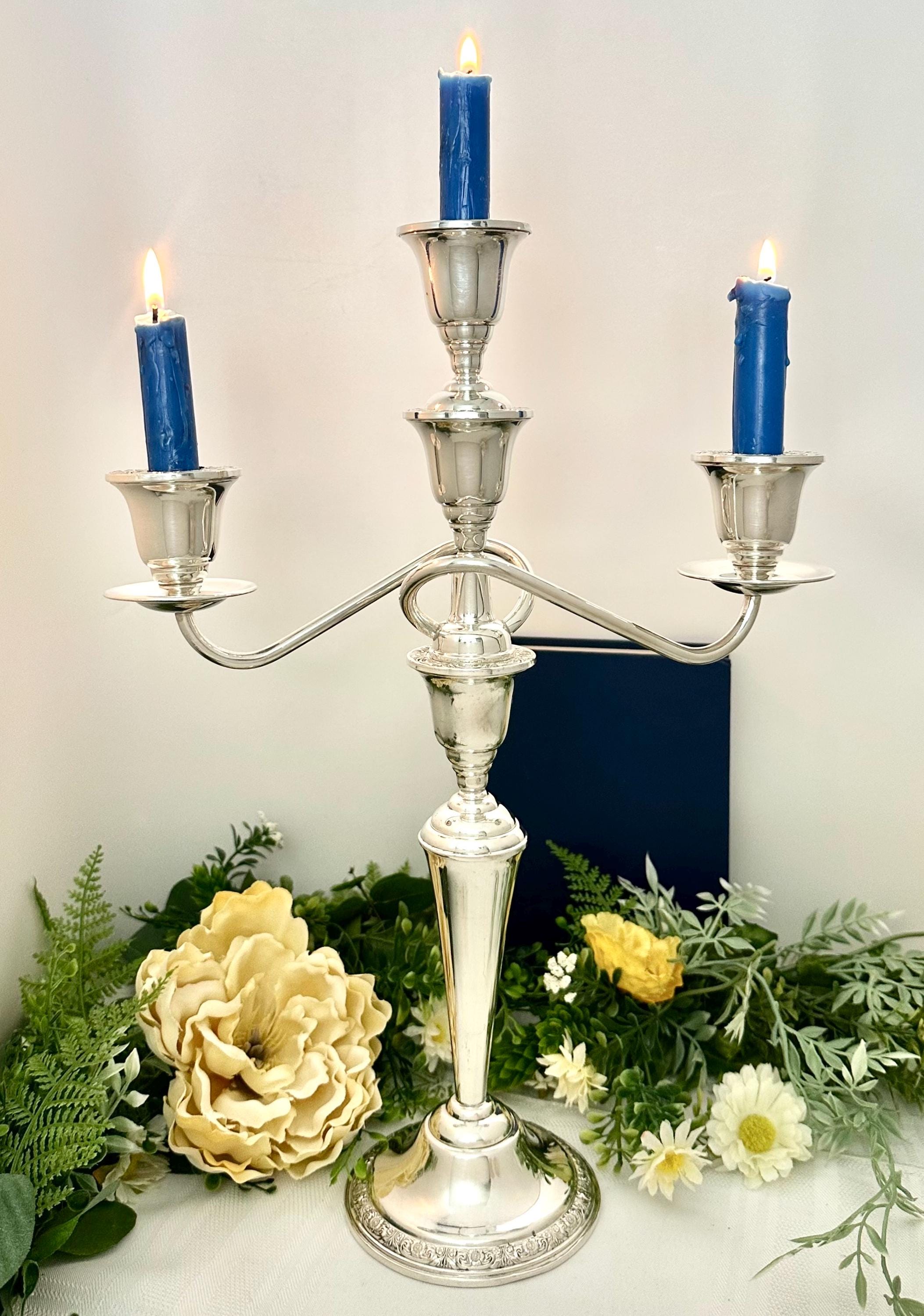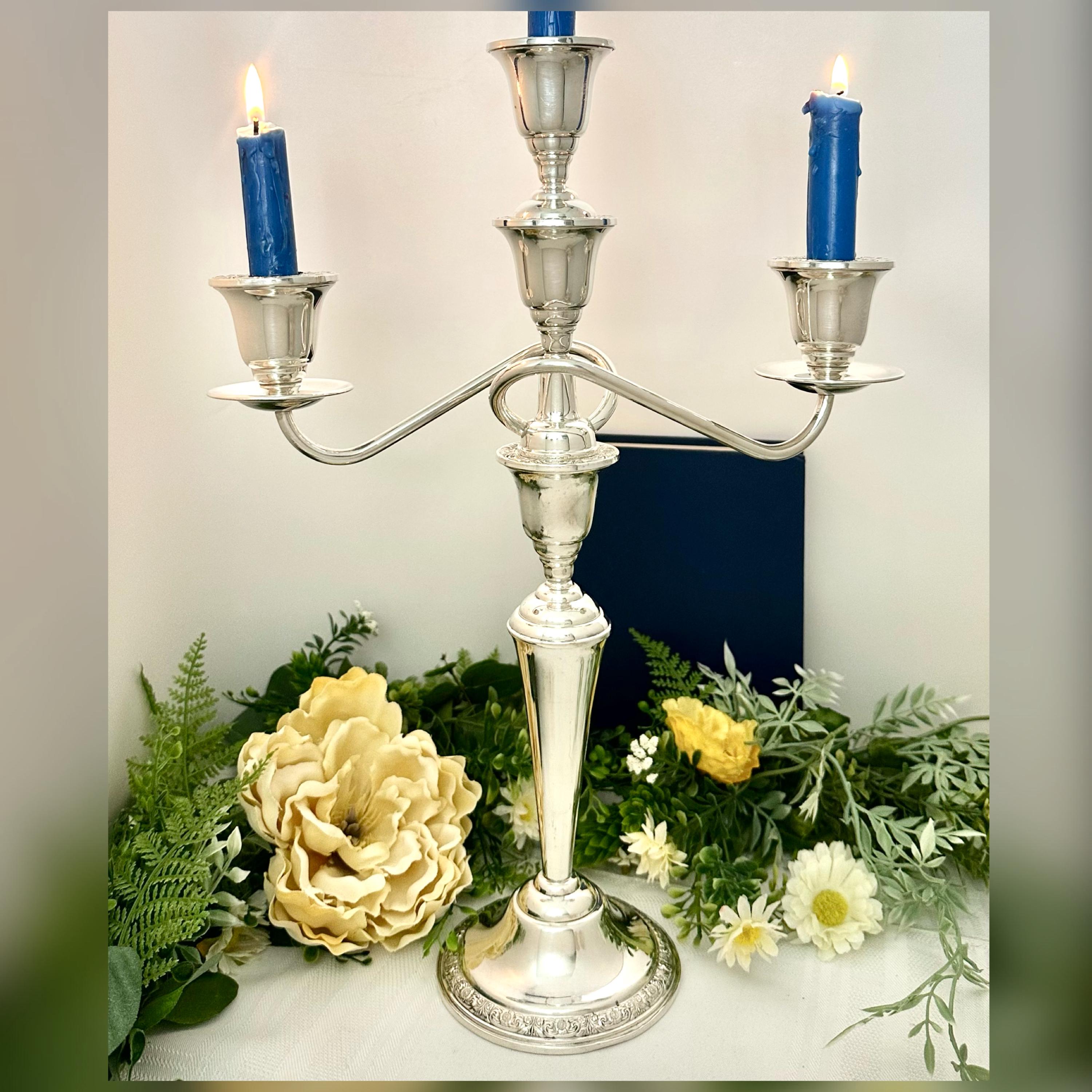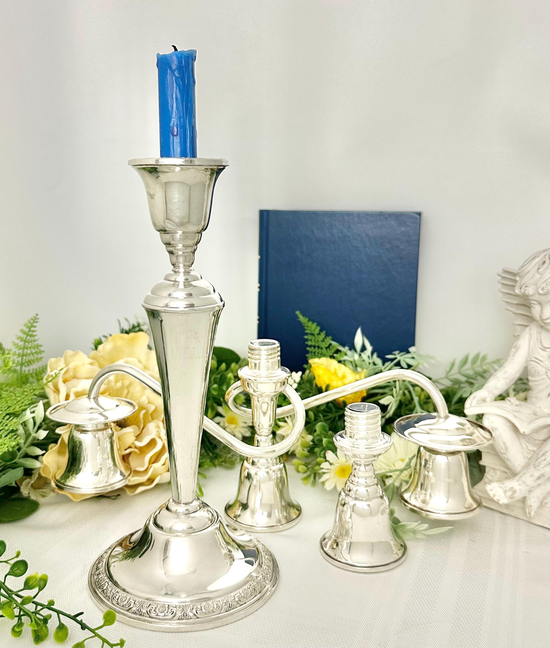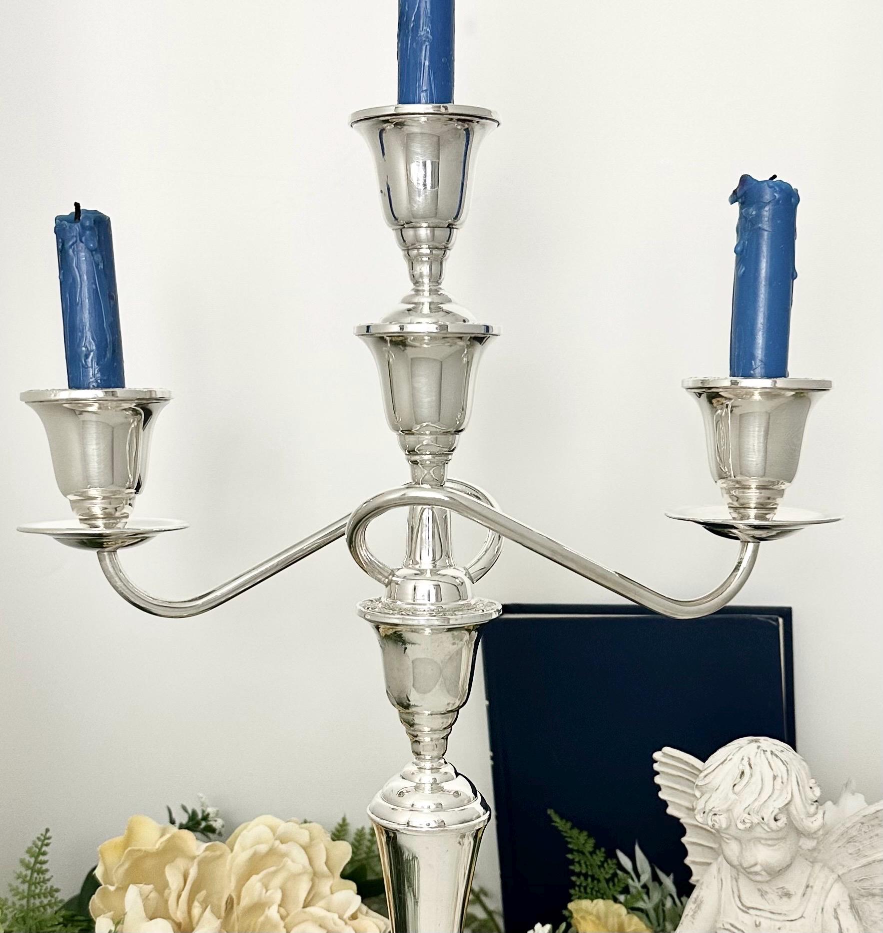 This post-1940 antique was made in the United States, adding a touch of elegance and sophistication to any dining table or special occasion setting. Note pictures that show the two small dents in the candle cups otherwise it is in wonderful condition and polished and ready to use and enjoy for years to come!