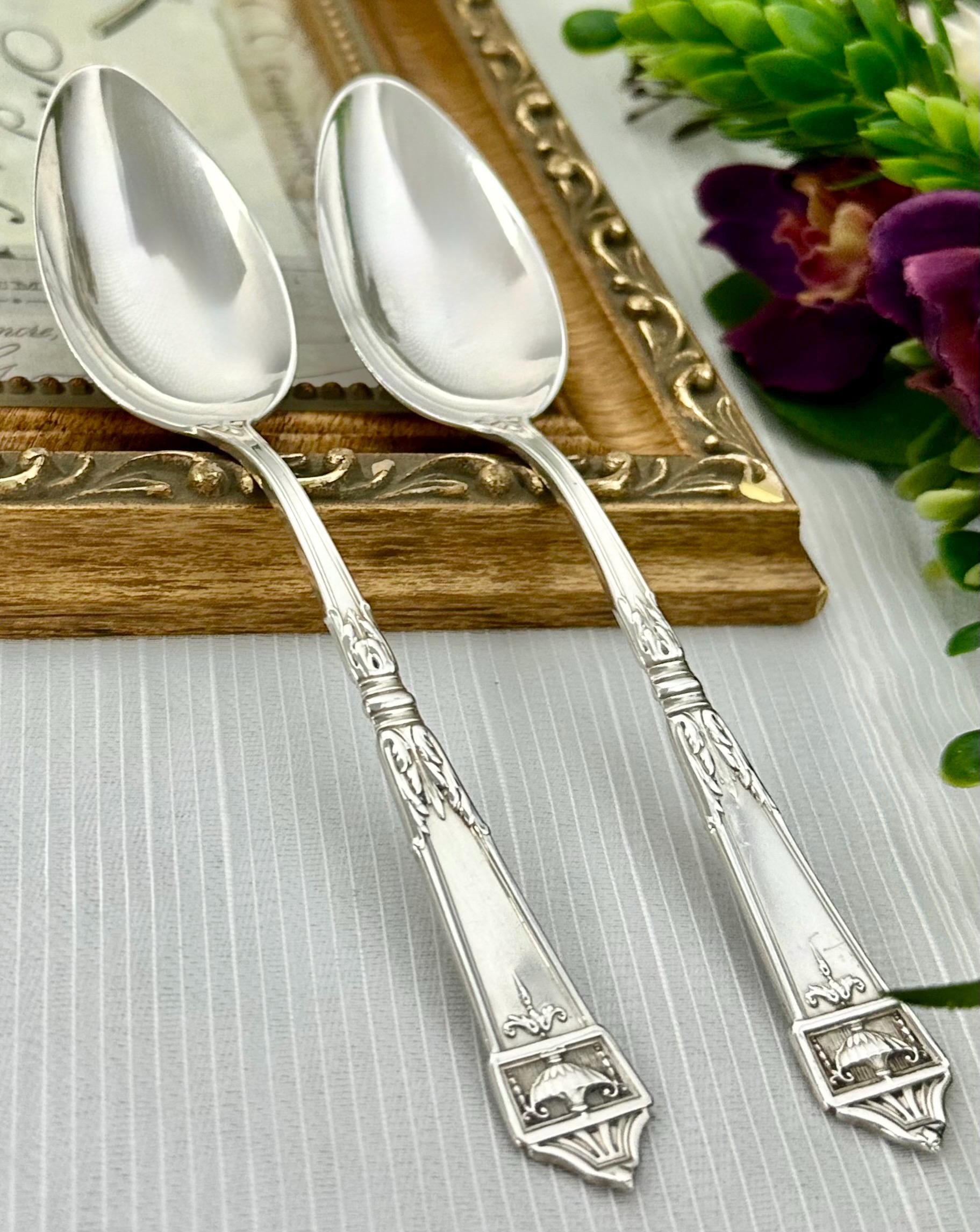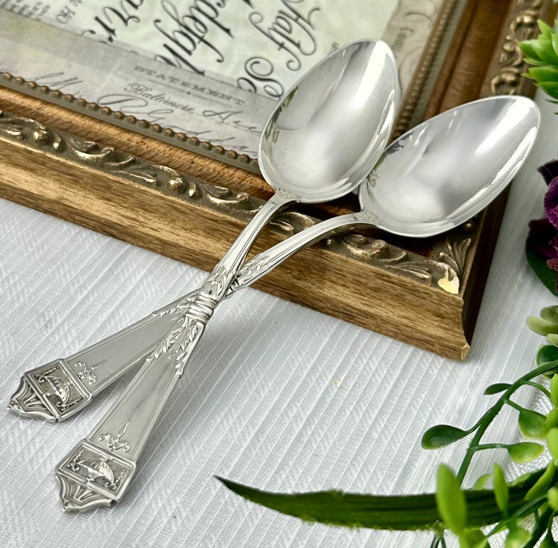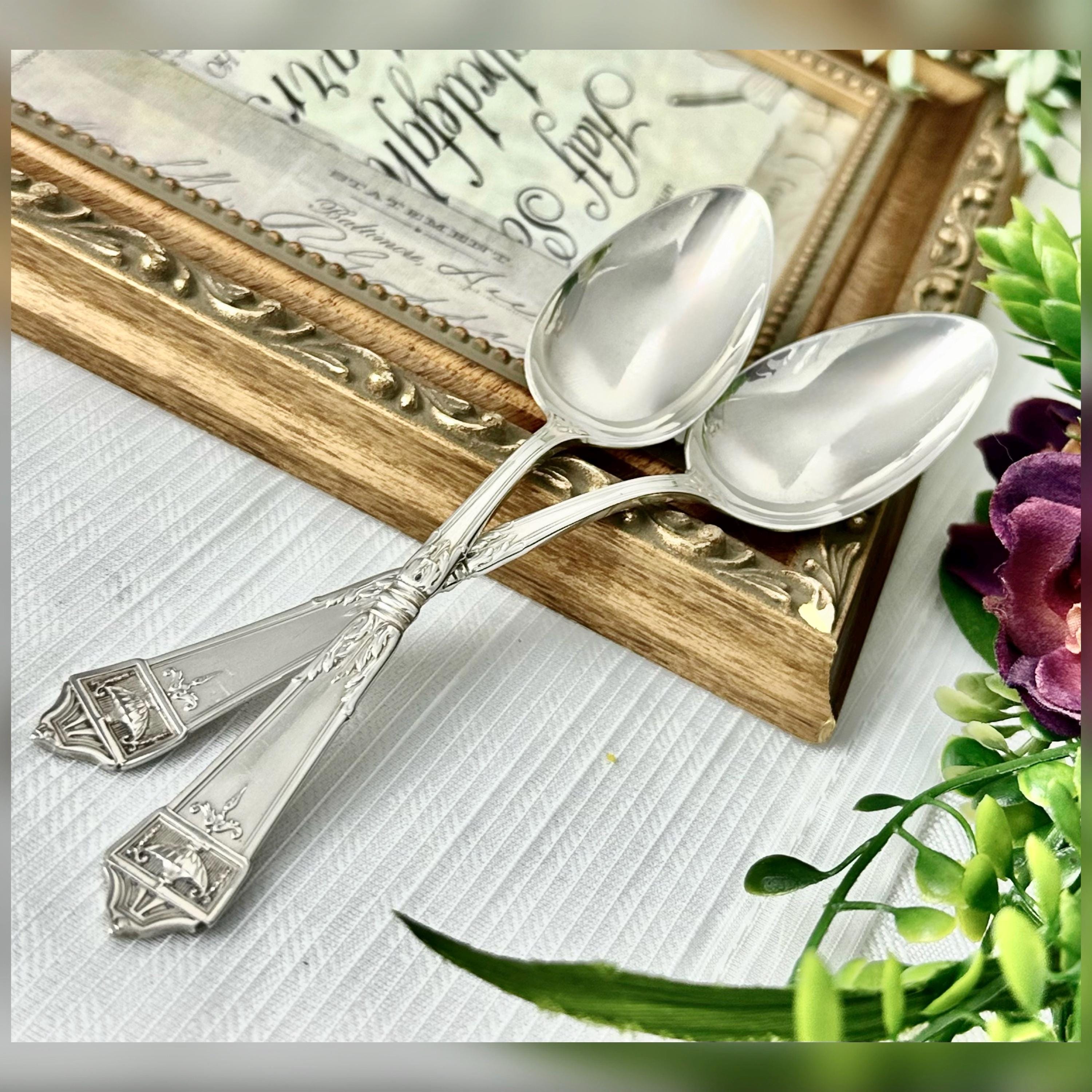 This is for 2 Gorham Lansdowne (1917) Sterling Silver Teaspoons. These are rare and elegant pieces of antique silverware dating back to the early 1900s. These 5 7/8 inch spoons feature an intricate Art Nouveau styling and are monogrammed on the back. Crafted from high-quality sterling silver, these teaspoons exude sophistication and charm, making them a unique and sought-after items for collectors of vintage silverware.