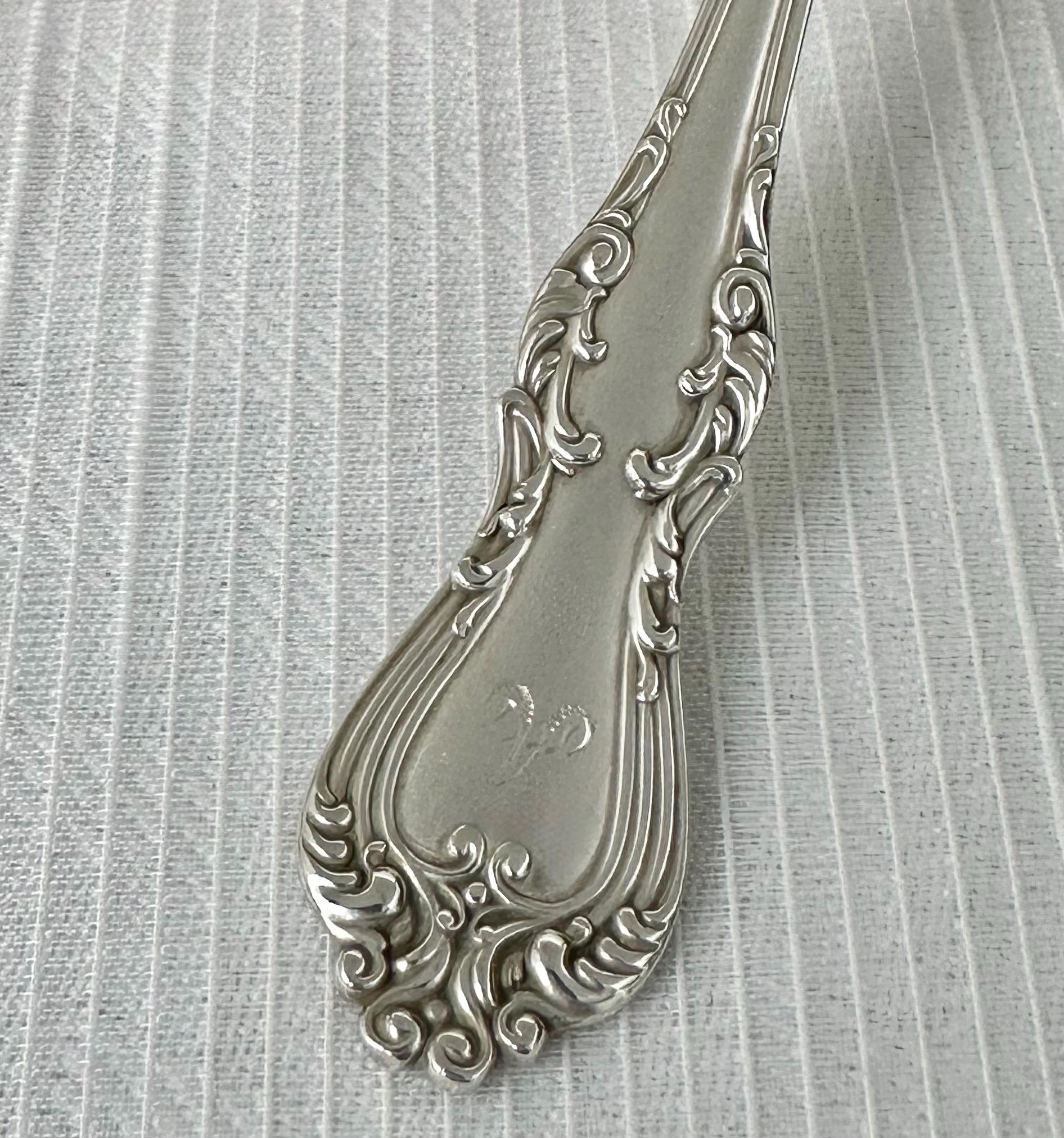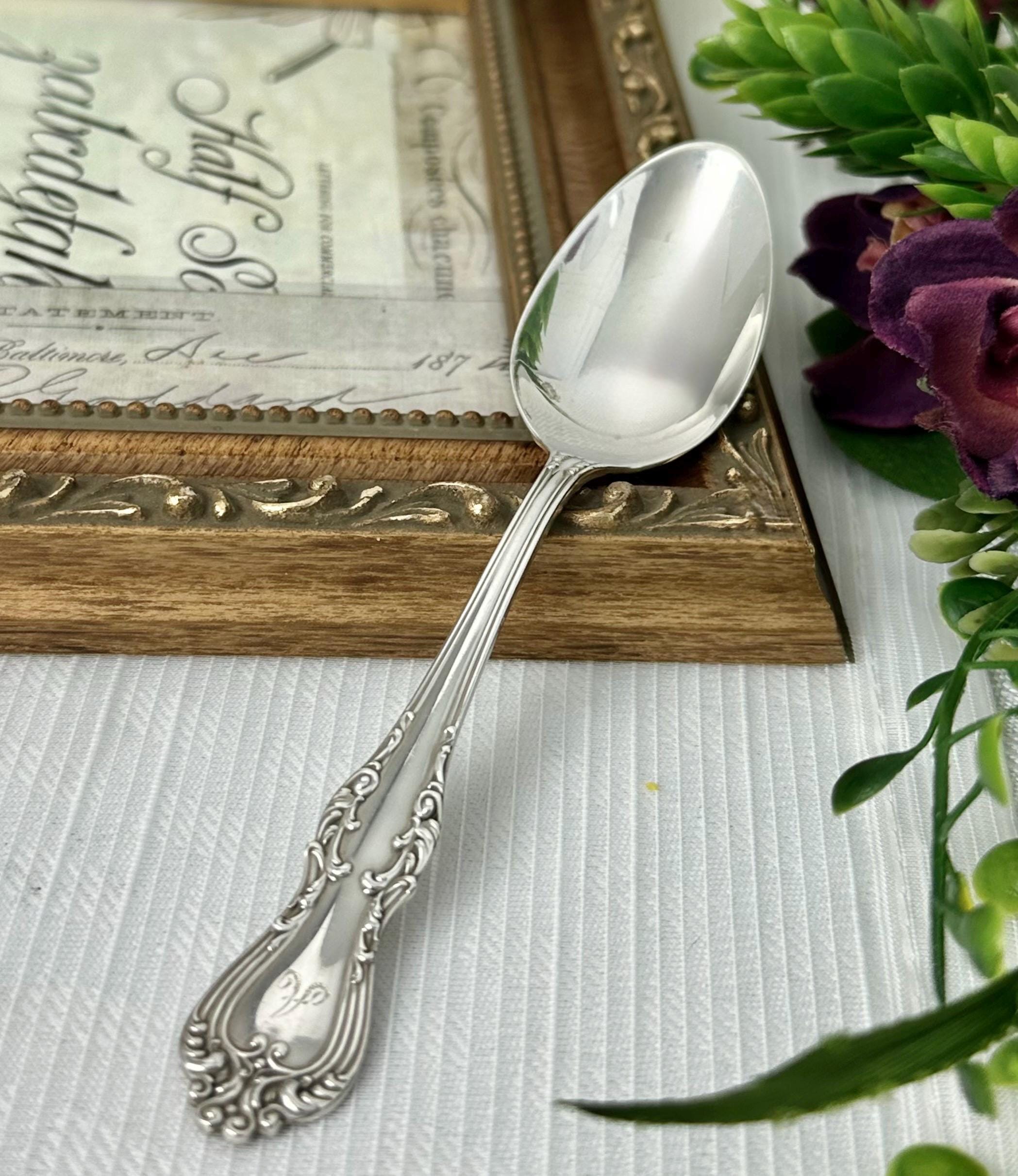 This is for 1 Frank Smith Countess Sterling Silver Teaspoon. This is a rare and elegant piece of antique silverware dating back to the early 1900s. This 5 1/4 inch spoon features intricate Art Nouveau styling and is monogrammed with an "A", adding a personalized touch to any collection.