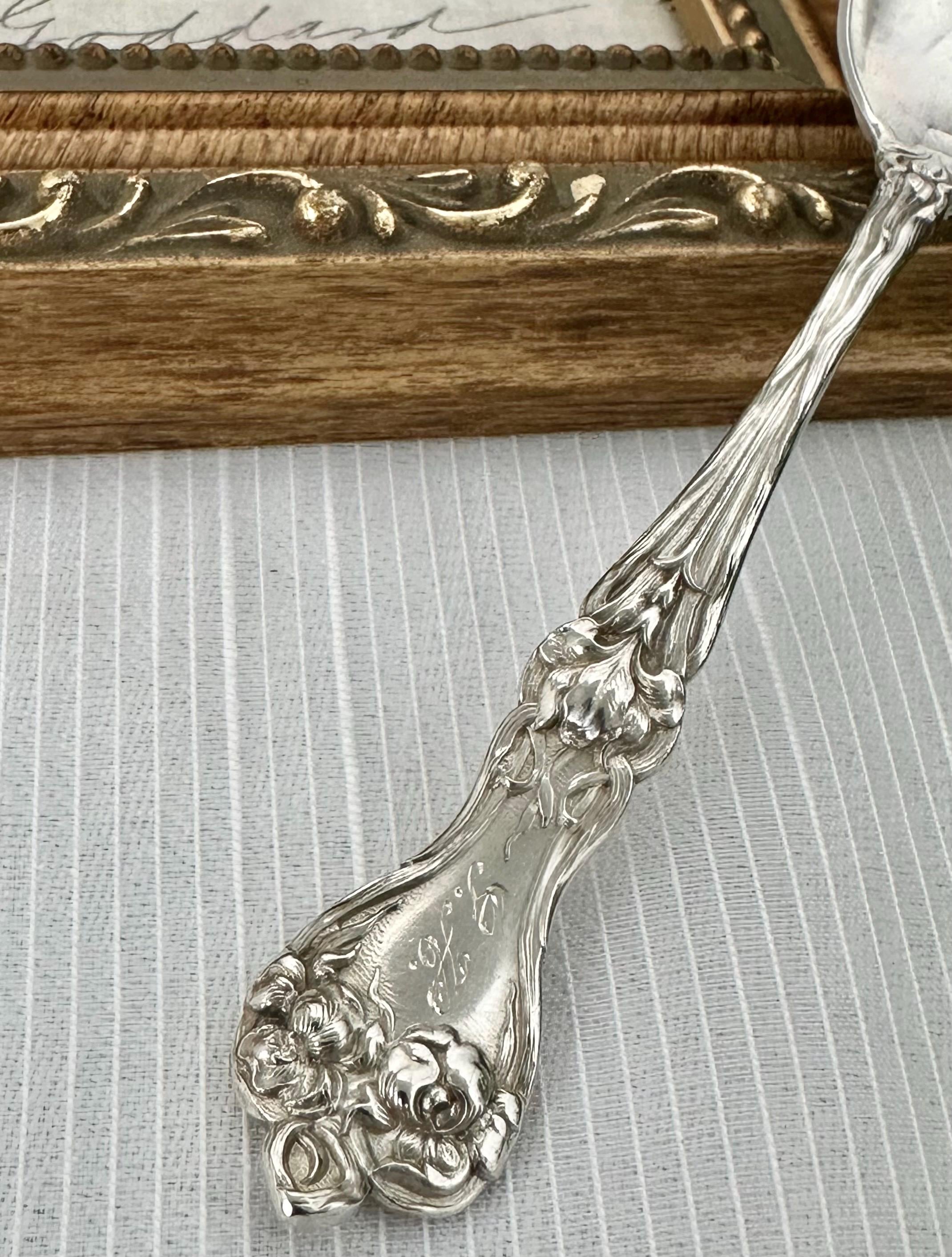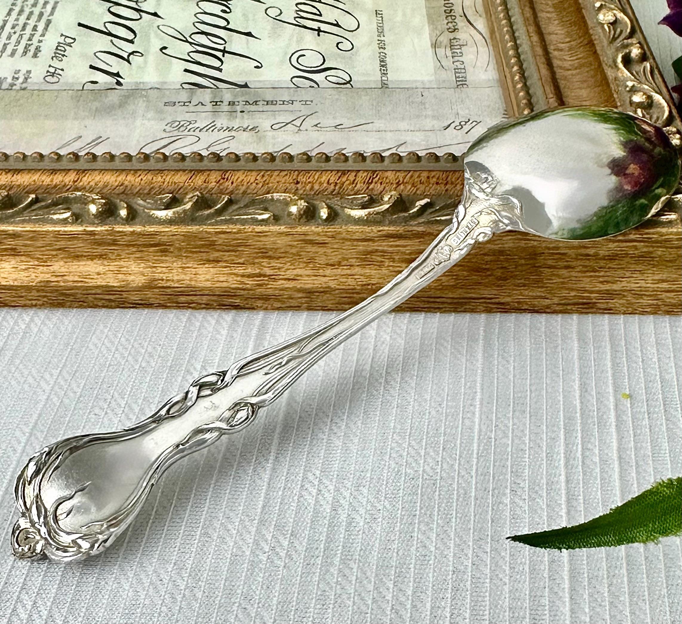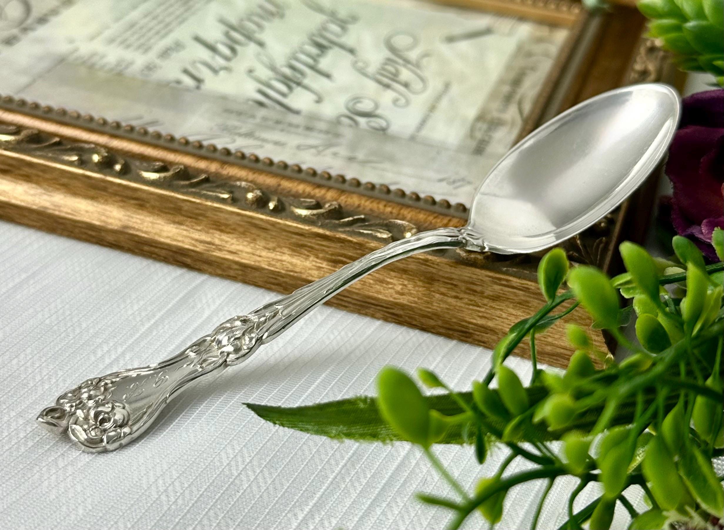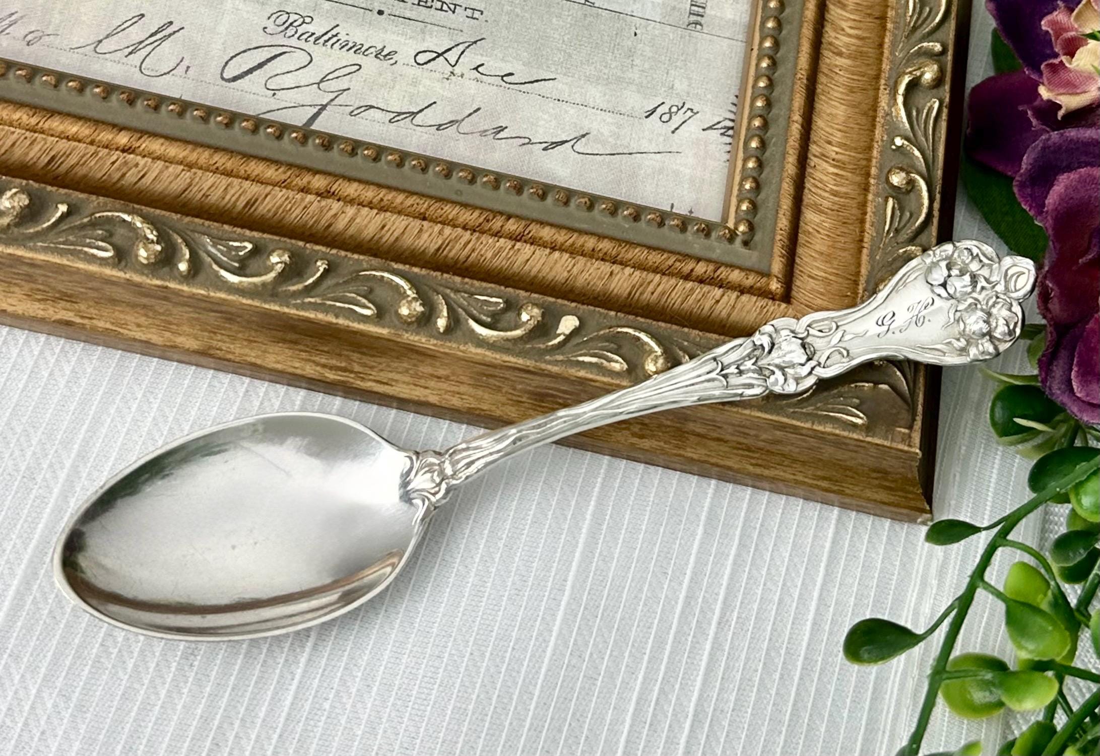 This is for 1 Alvin Majestic Sterling Silver Teaspoon. This is a rare and elegant piece of antique silverware dating back to the early 1900s. This 5 1/8 inch spoon features intricate Art Nouveau styling and is monogrammed with an initial, adding a personalized touch to any collection. Crafted from high-quality sterling silver, this teaspoon exudes sophistication and charm, making it a unique and sought-after item for collectors of vintage silverware.