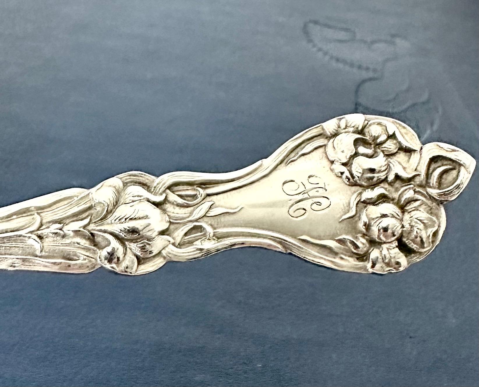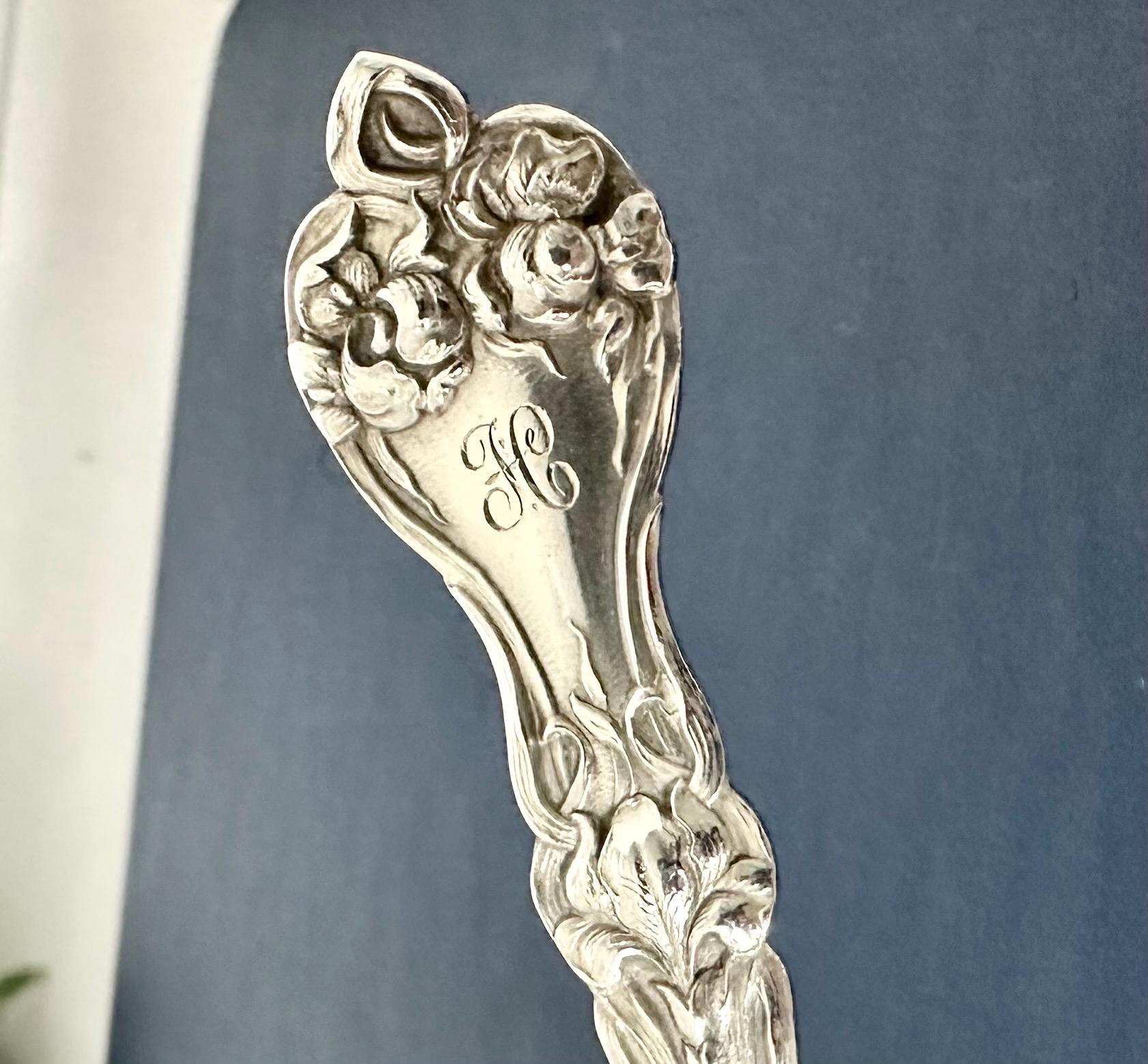 This is for 1 Alvin Majestic Sterling Silver Teaspoon. This is a rare and elegant piece of antique silverware dating back to the early 1900s. This 5 1/8 inch spoon features intricate Art Nouveau styling and is monogrammed with an initial, adding a personalized touch to any collection. I believe the monogram to be an H. This has a weight of 21 grams.