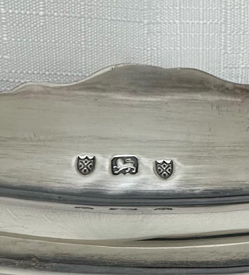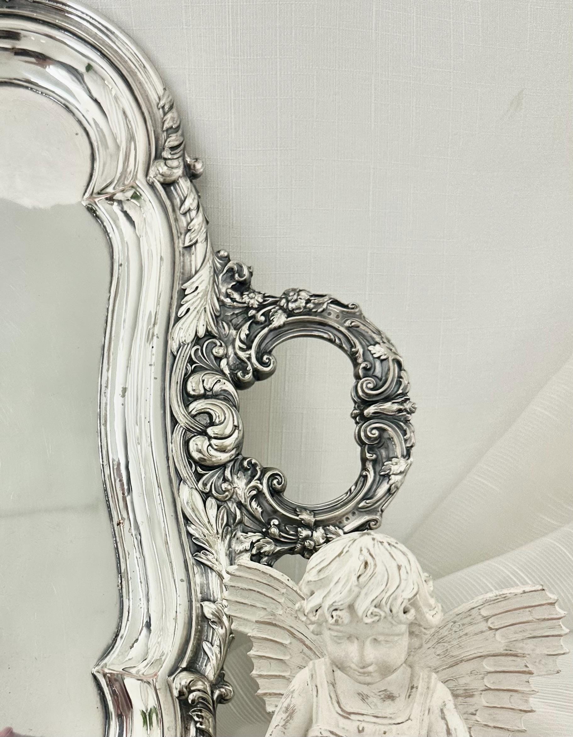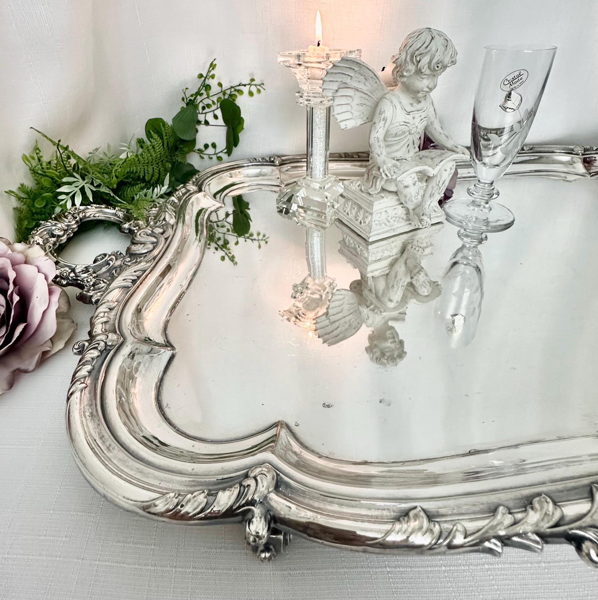 The intricate detailing and high-quality craftsmanship make this tray a luxurious and classic piece for any home, there are no makers marks that are discernible but is marked with various stamps that lend to the history of where produced, England.