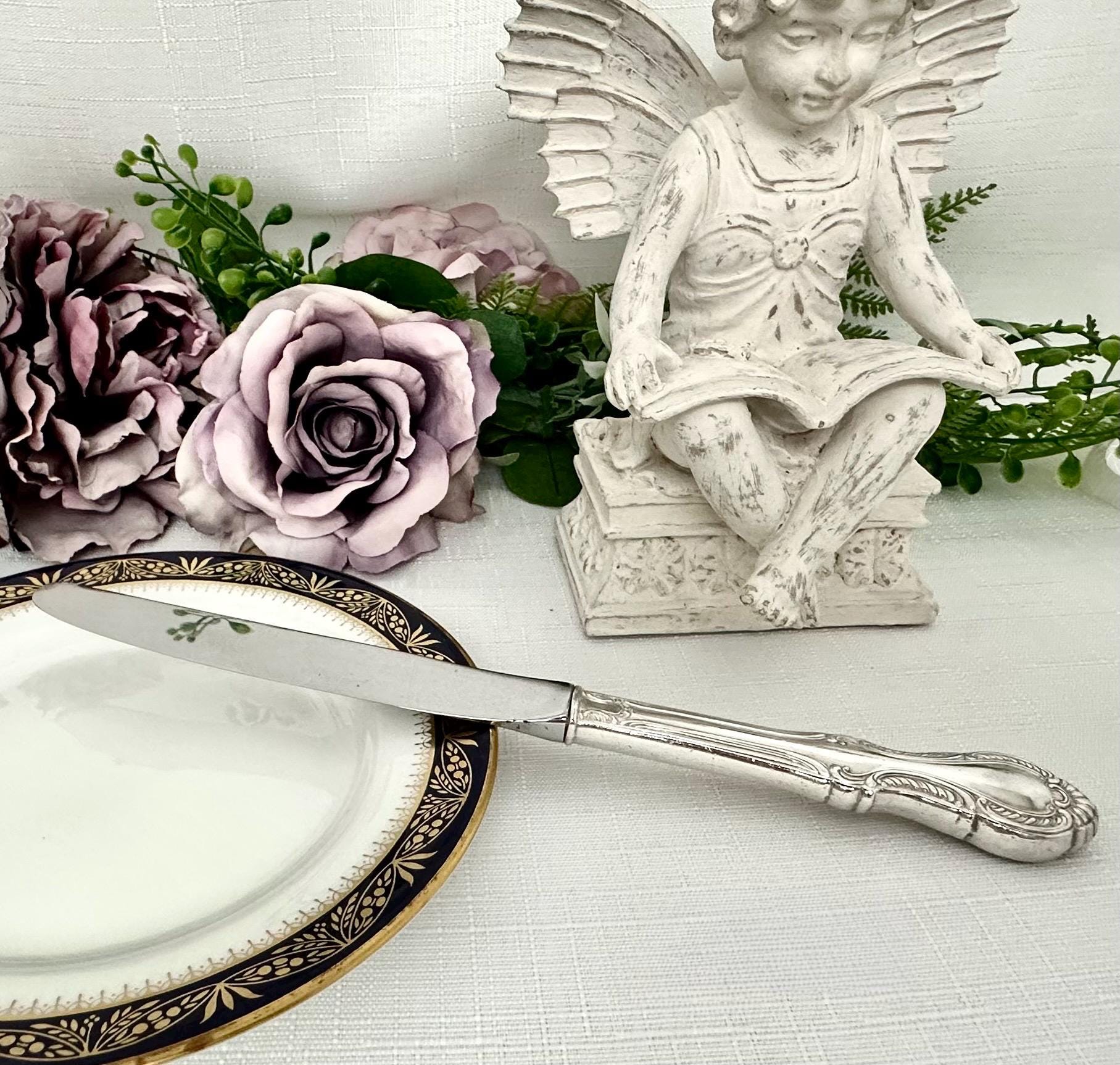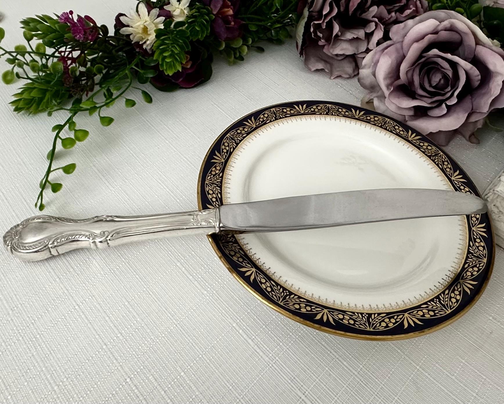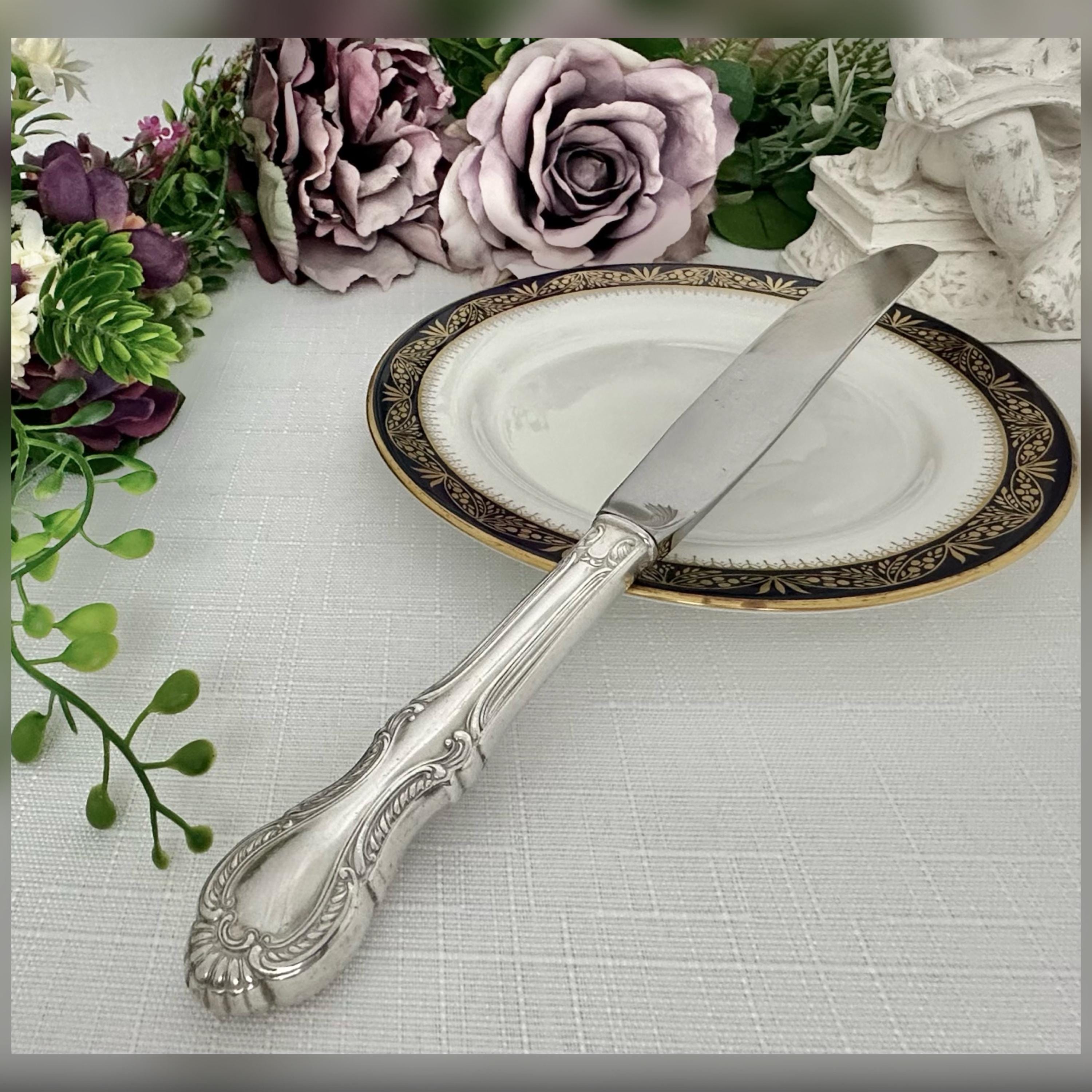 At a weight of 73 grams, this 9.25" knife is both functional and stylish, making it a valuable addition to any collection of antiques or fine silverware. The blade is not silver and the handle is hollow.