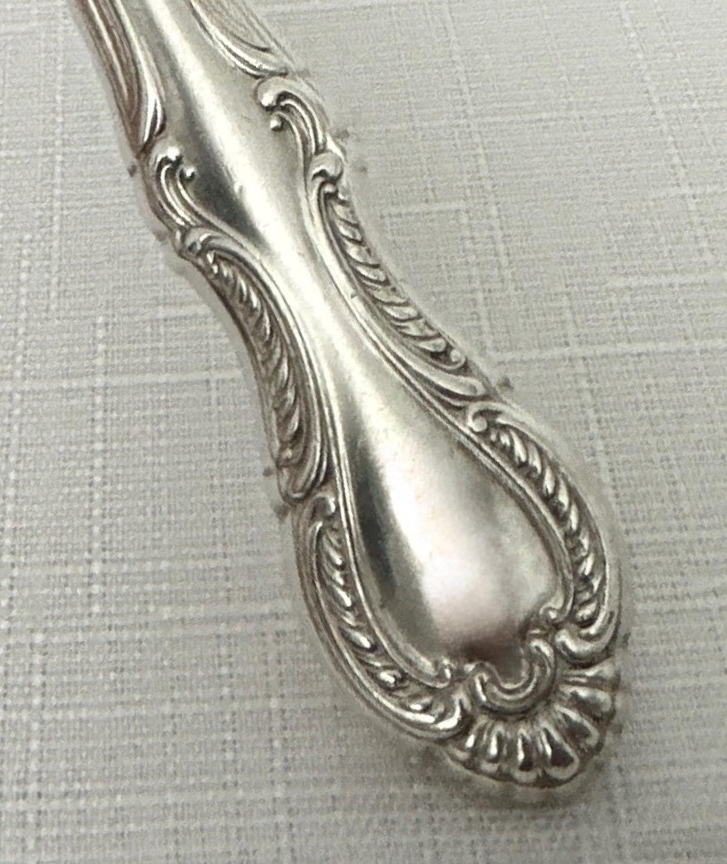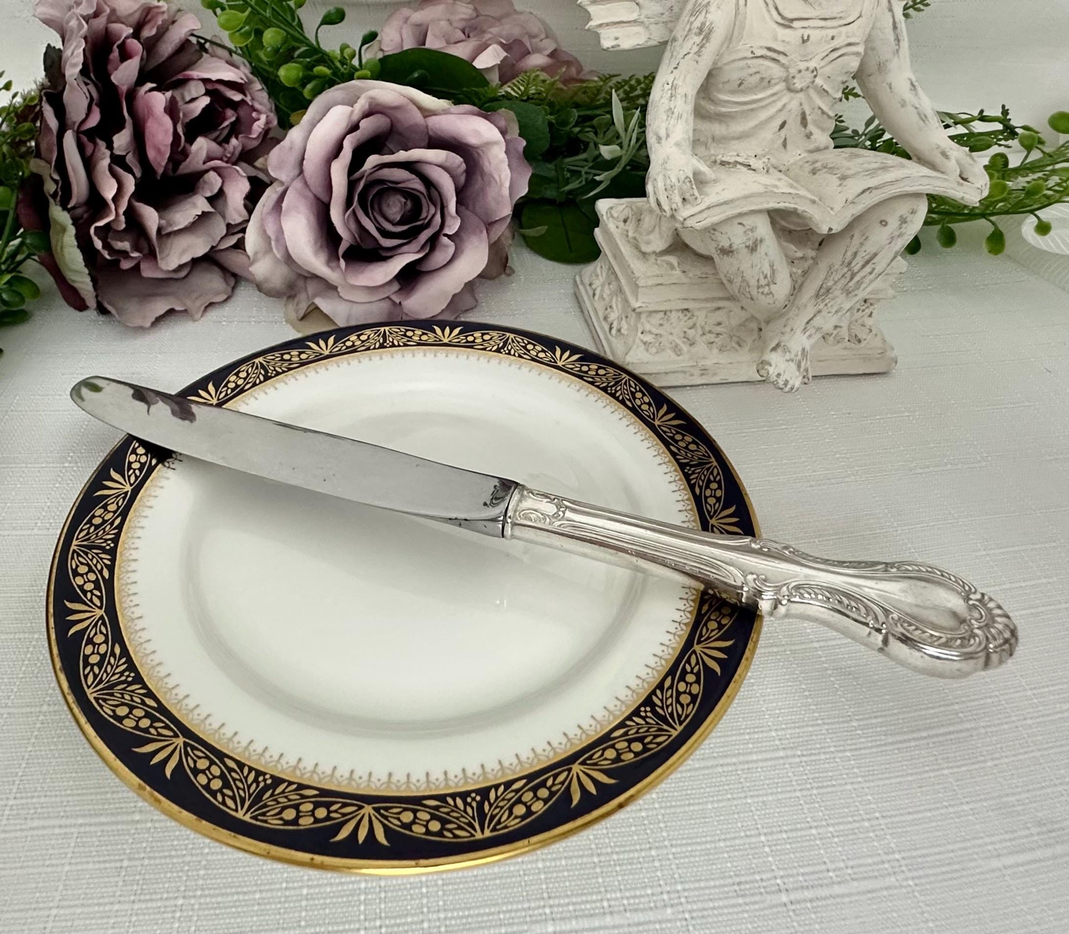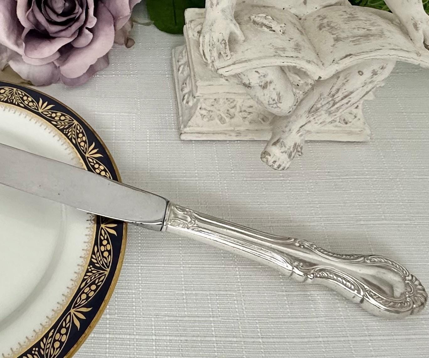 At a weight of 73 grams, this 9.25" knife is both functional and stylish, making it a valuable addition to any collection of antiques or fine silverware. The blade is not silver and the handle is hollow.