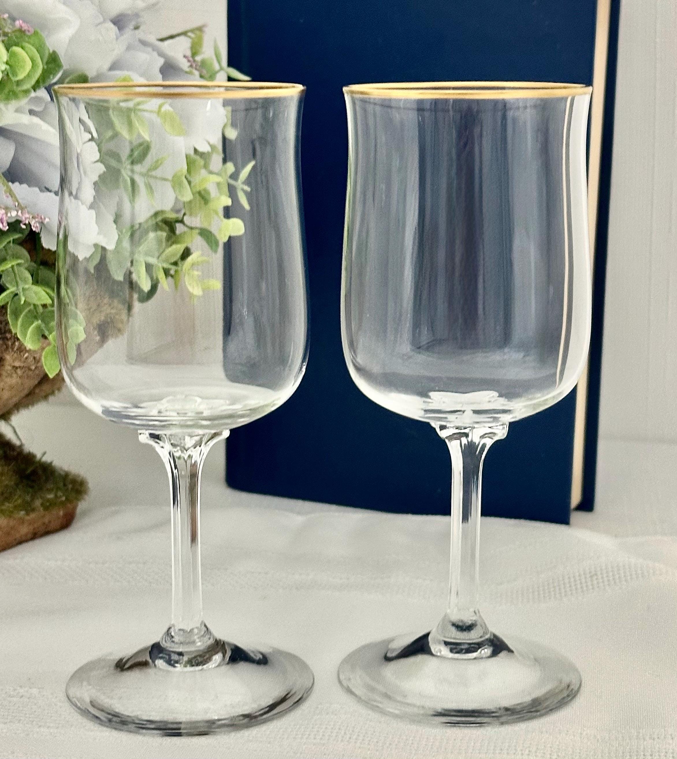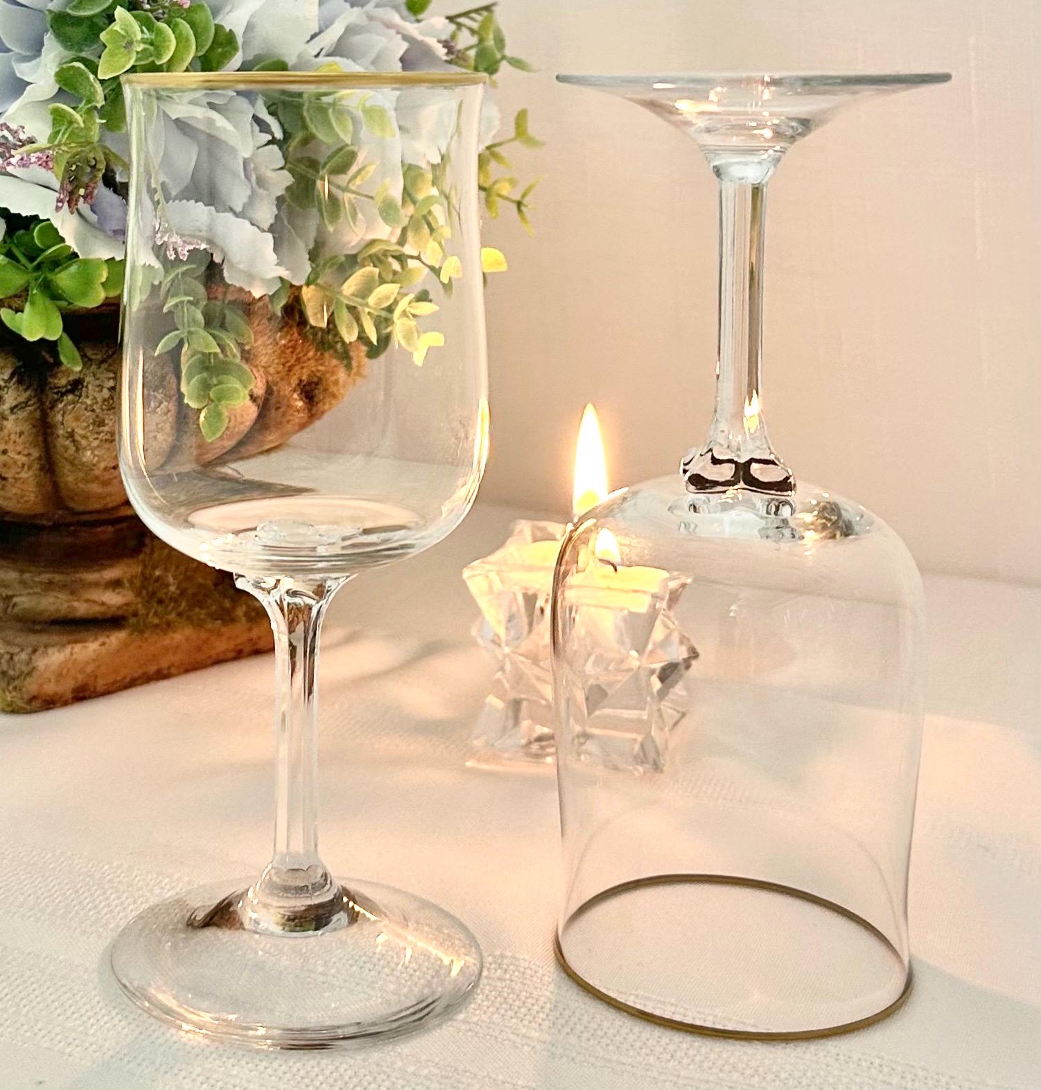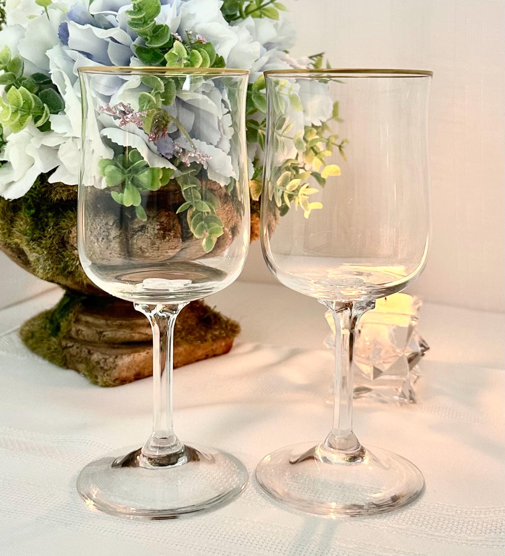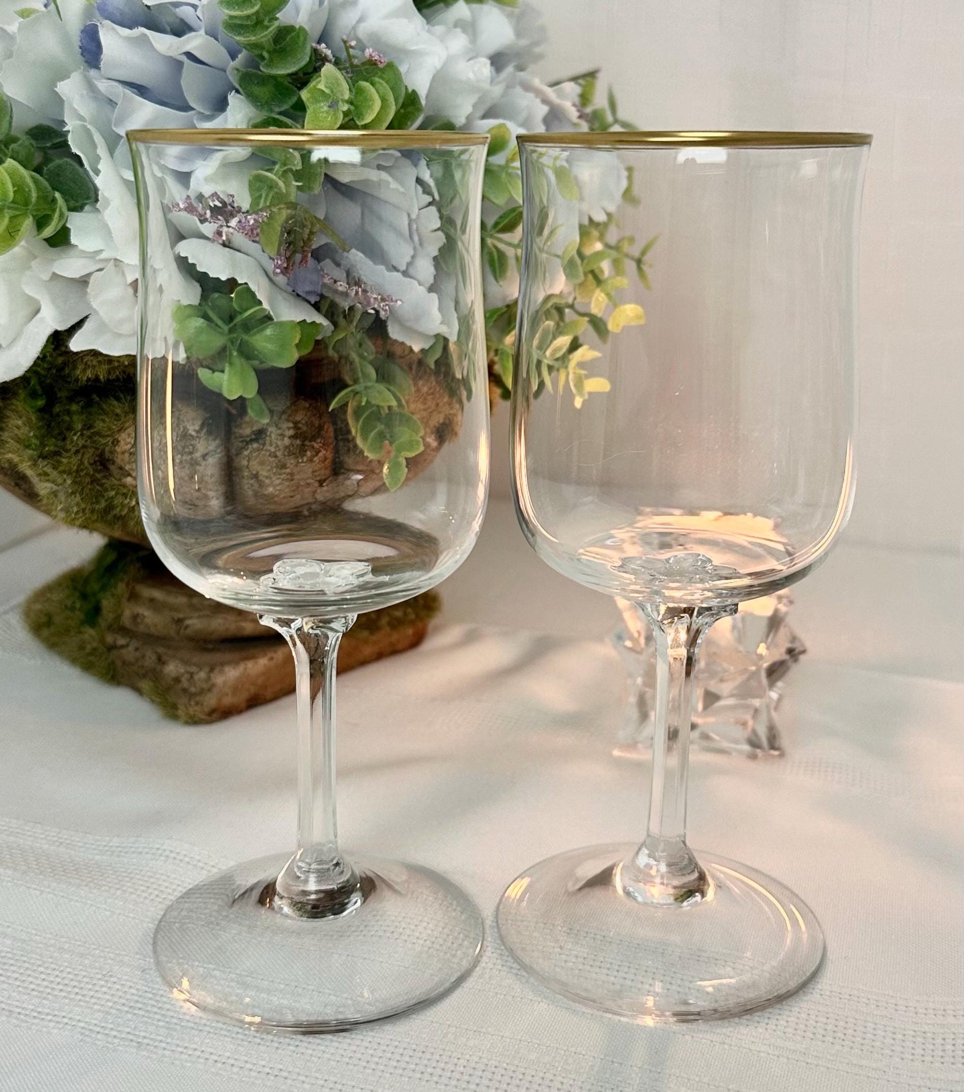 These vintage wine glasses require hand wash care to preserve the gold trim. These are in lovely condition with no chips, cracks or water staining and make for wonderful replacement glasses or to start a new collection.